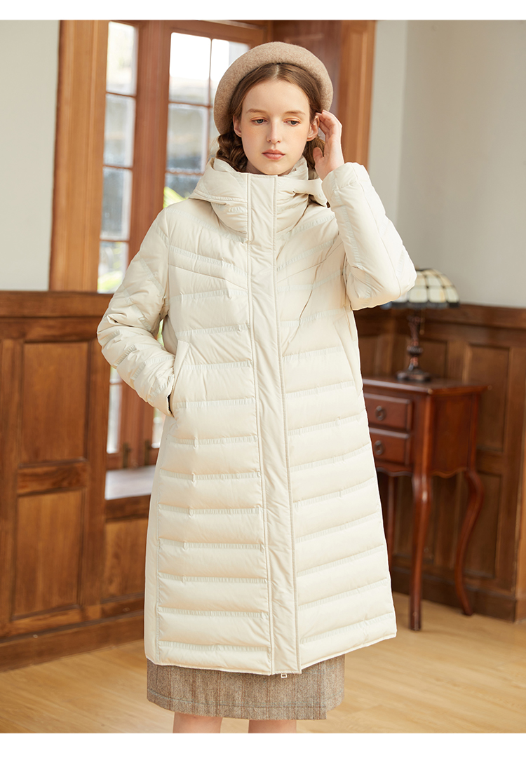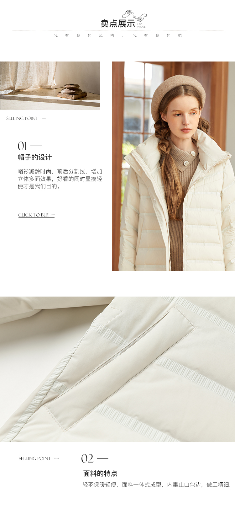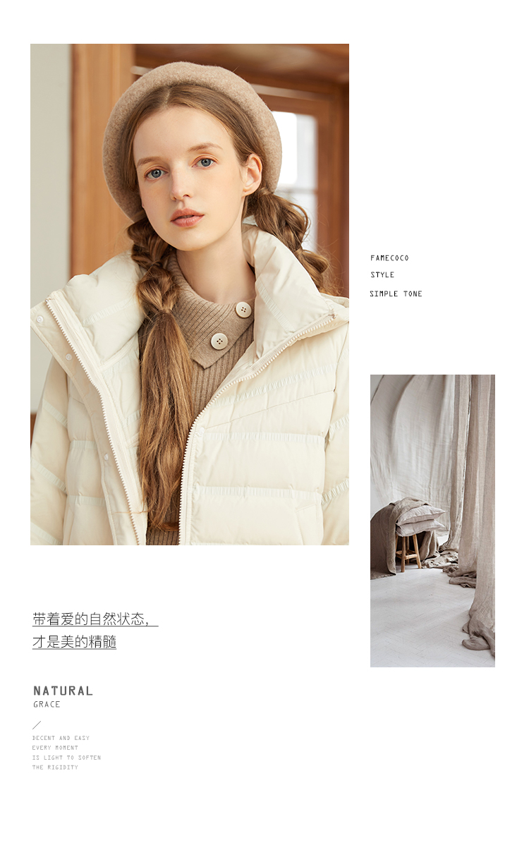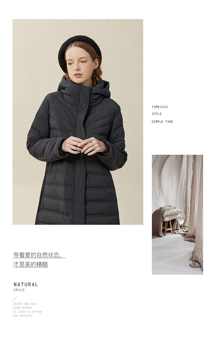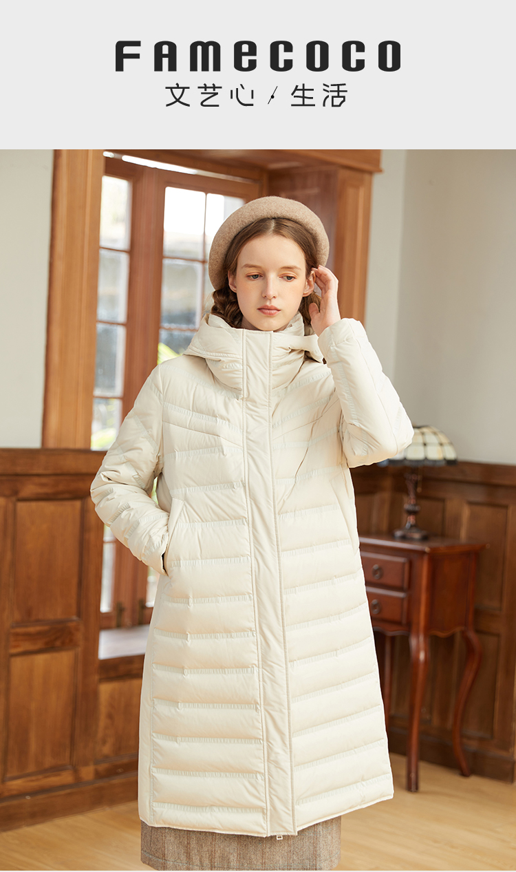 Famecoco范可儿中长款轻薄羽绒服女款帽衫减龄时尚外套F228AH005