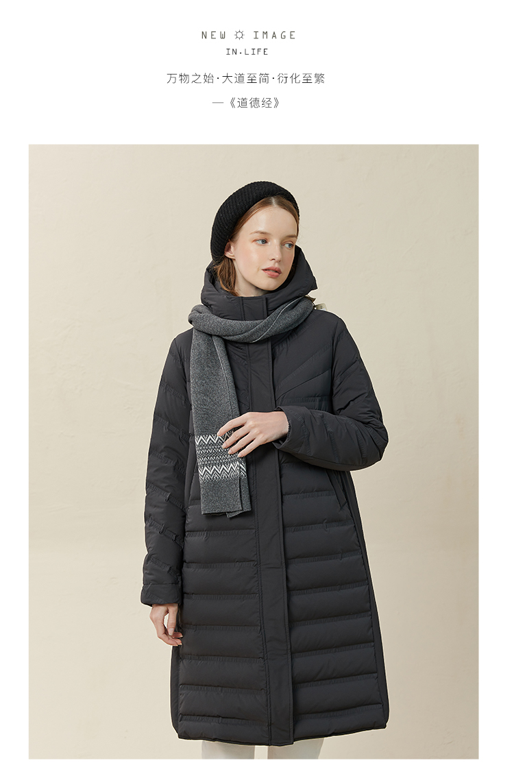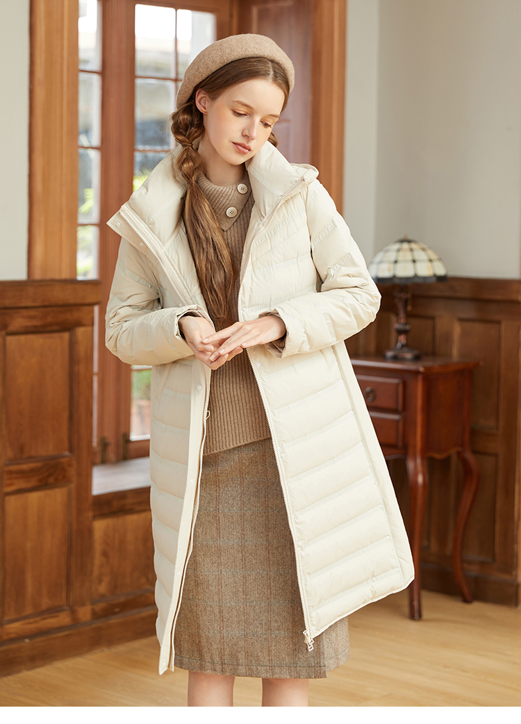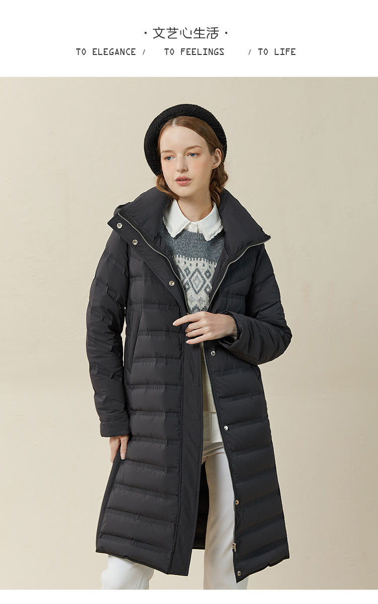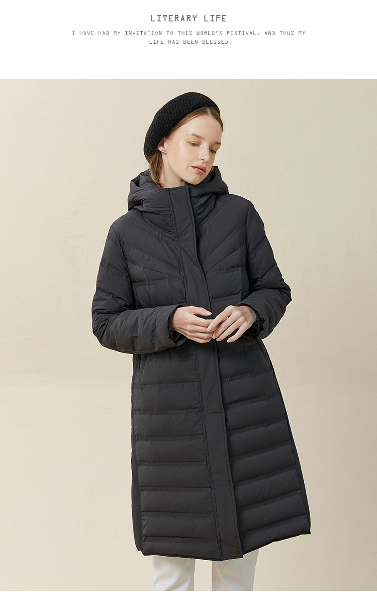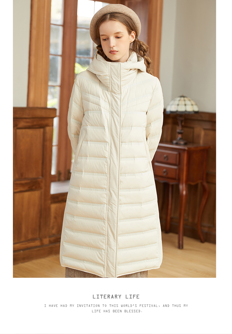 Famecoco范可儿中长款轻薄羽绒服女款帽衫减龄时尚外套F228AH005