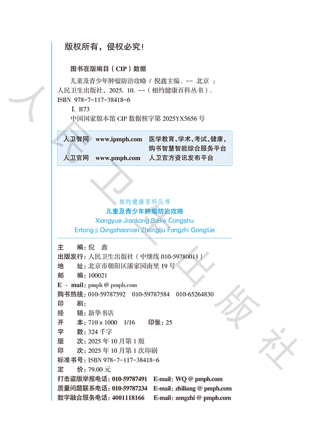 儿童及青少年肿瘤防治攻略 相约健康百科丛书 倪鑫 从防筛诊治康5个方面向高风险儿童及患儿家属讲述肿瘤防治知识 人民卫生出版社