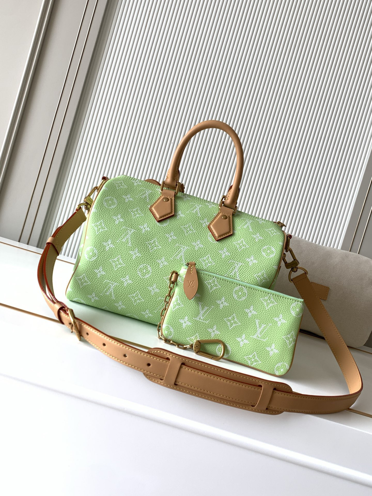 秋冬特惠💰1670 渠道级LV【全钢五金 MB163c01变码芯片】te级LV 全套包装 M14064柠檬绿 本款Speedy P9 Bandoulière30手袋