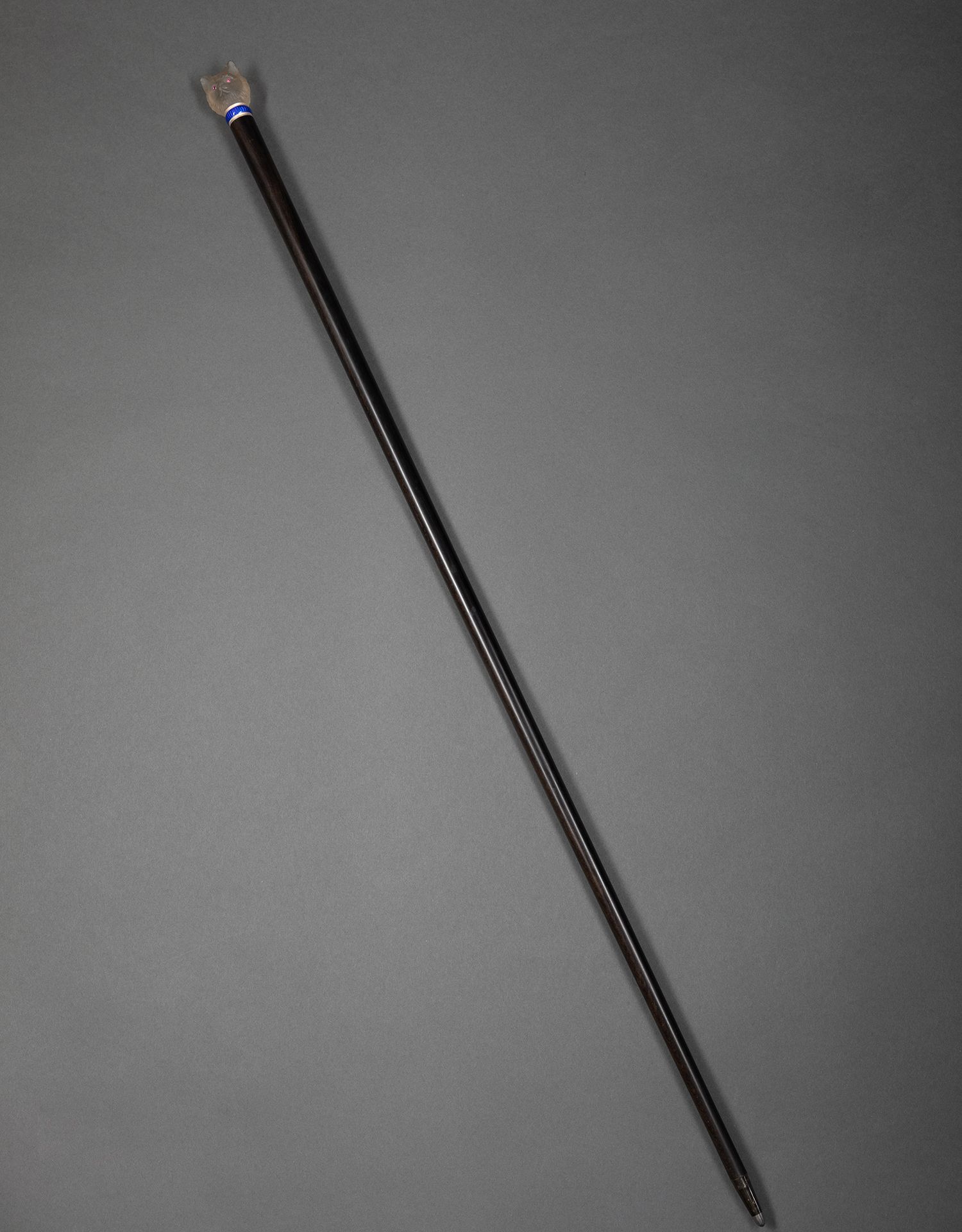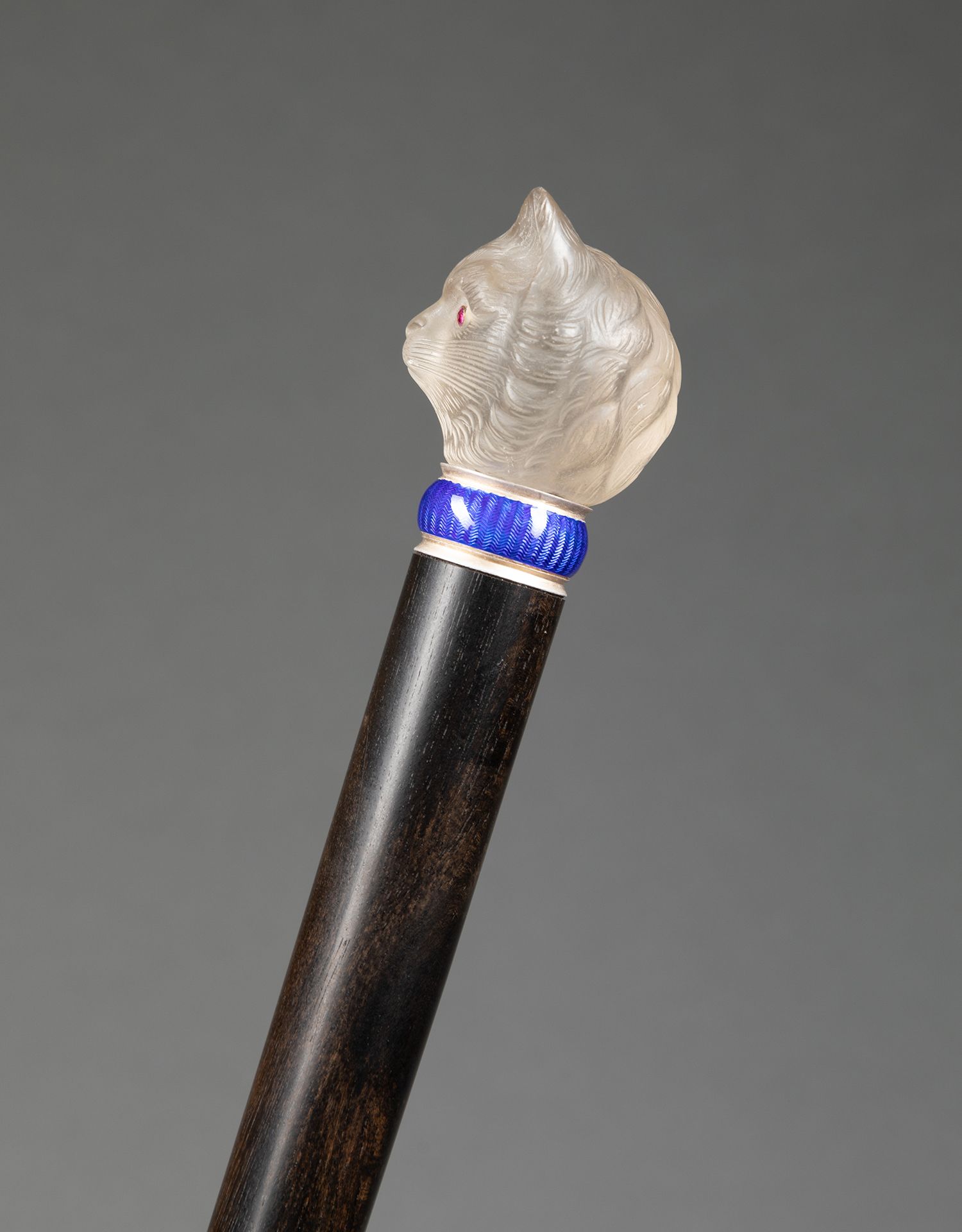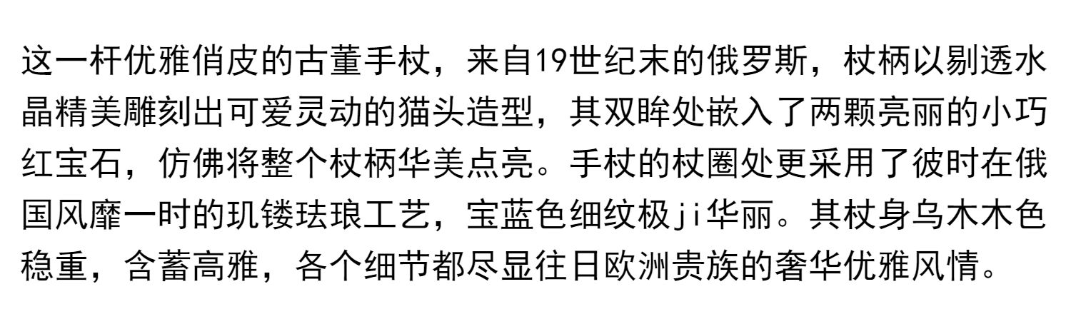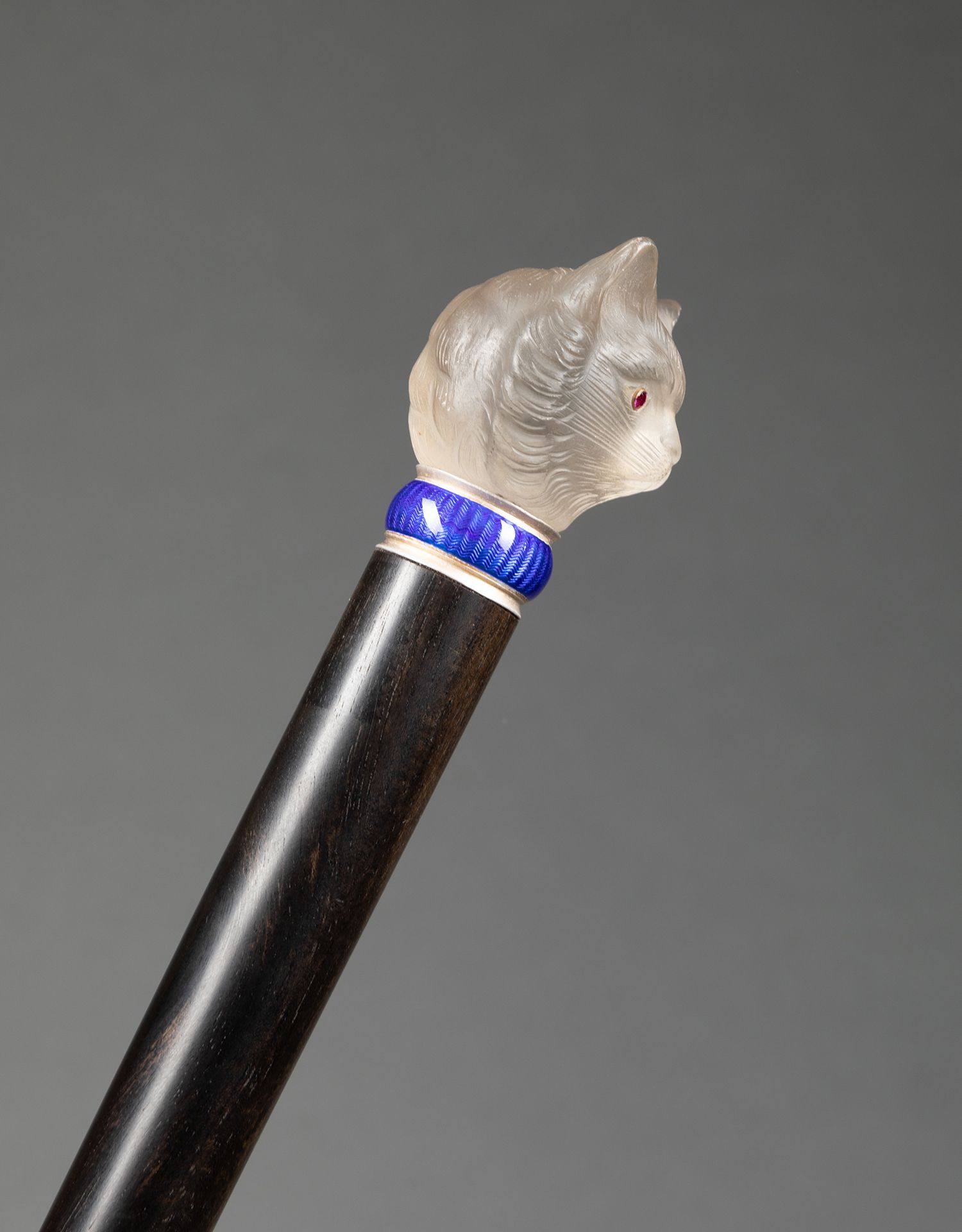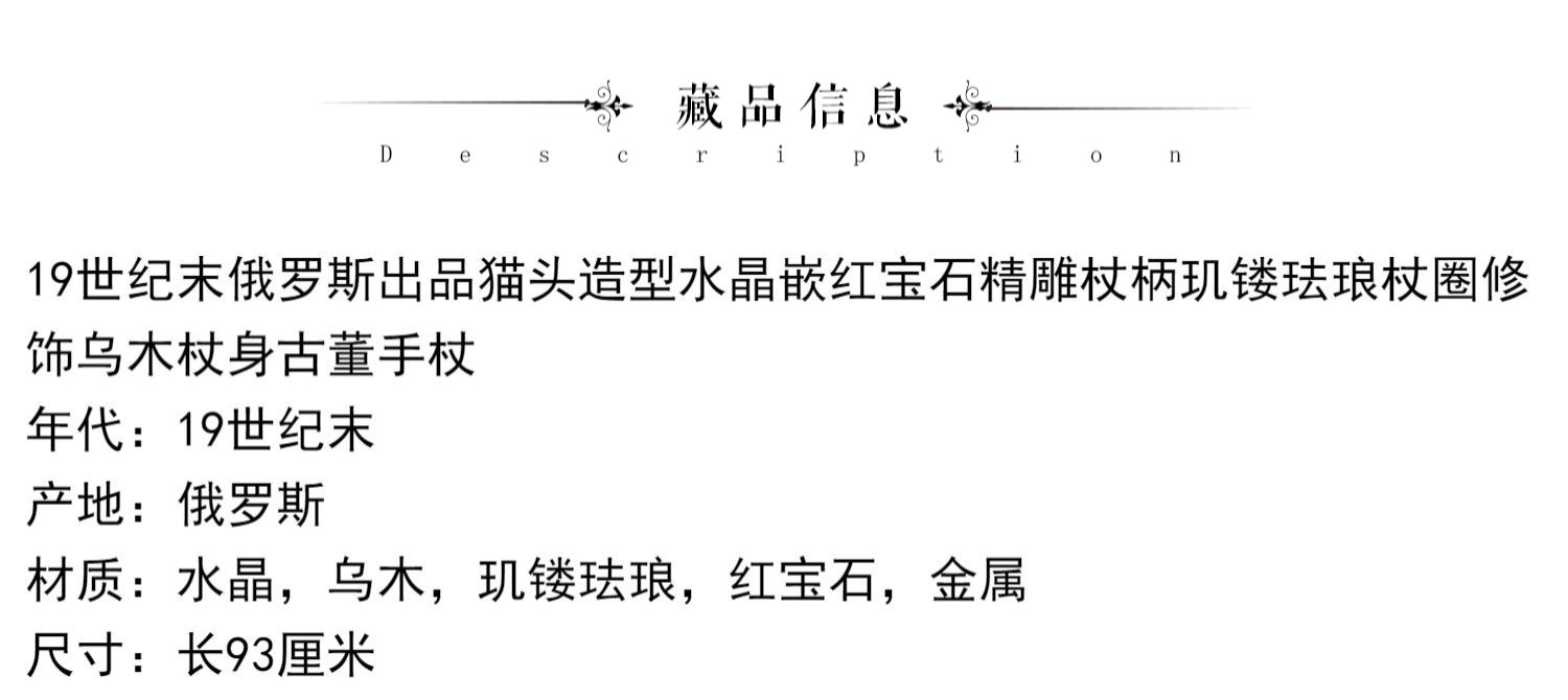 独角鹿西洋古董俄罗斯红宝石镶嵌水晶猫蓝色玑镂珐琅项圈硬木手杖