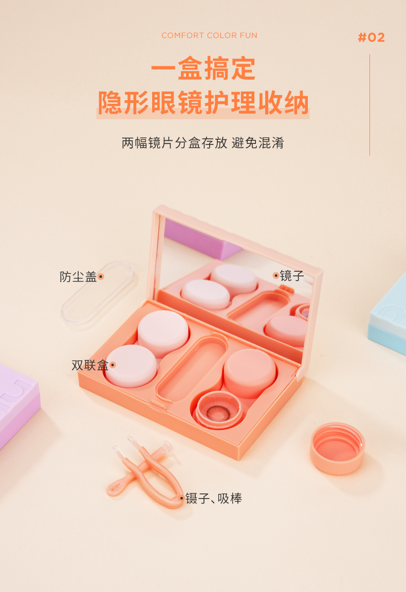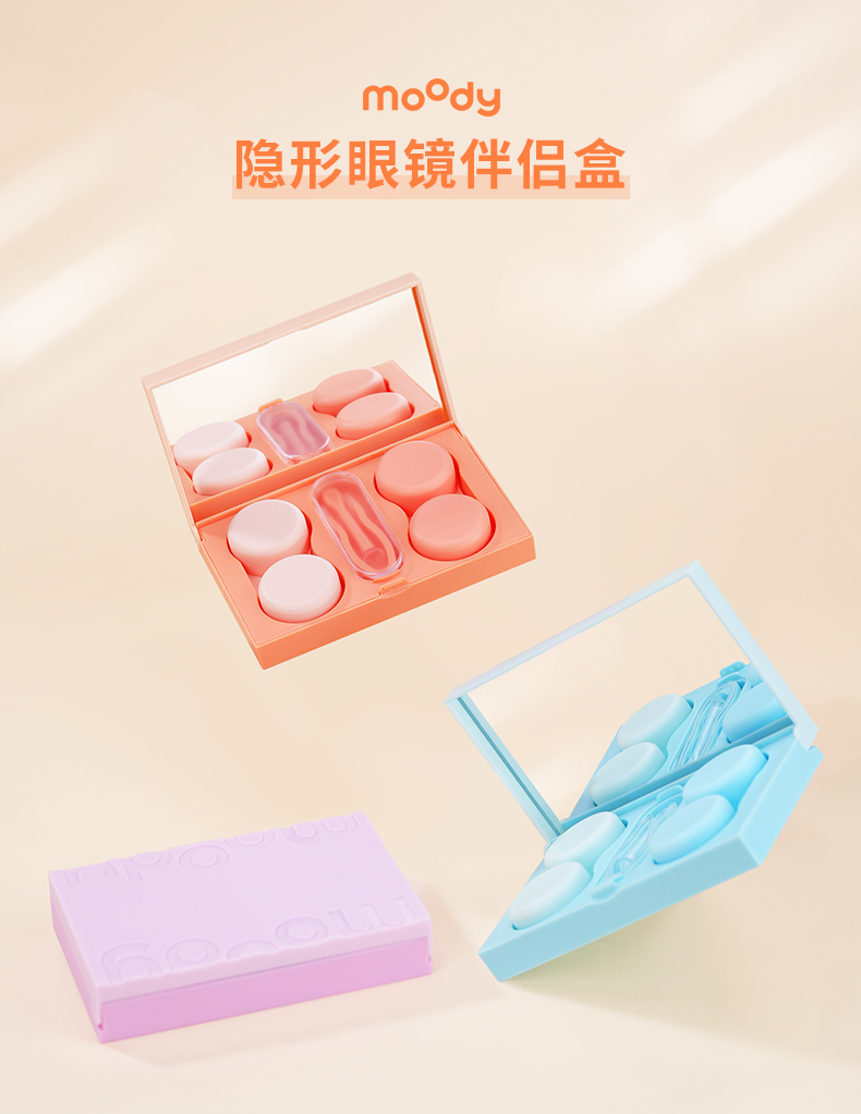 【美瞳收纳神器】moody双屿伴侣盒2副装高清镜面双联盒+镊子吸棒+镜子