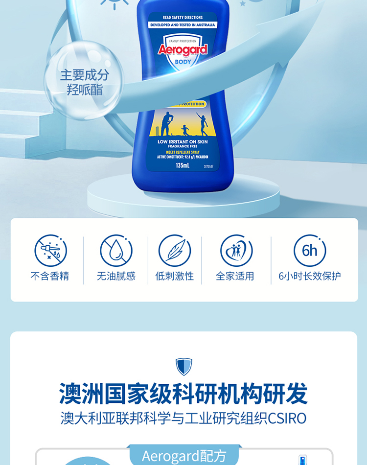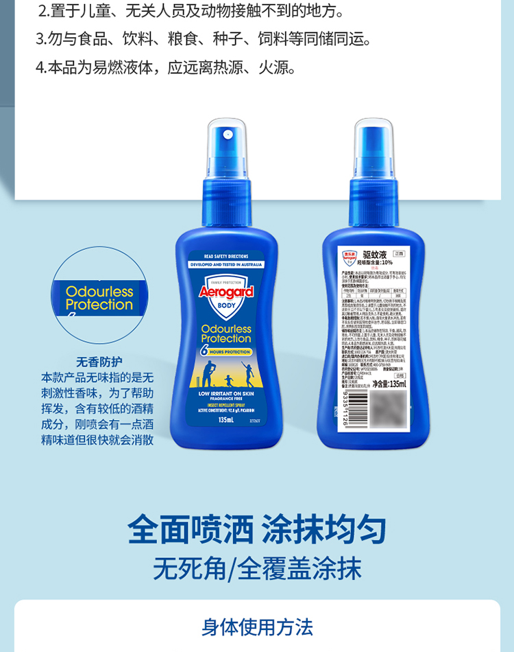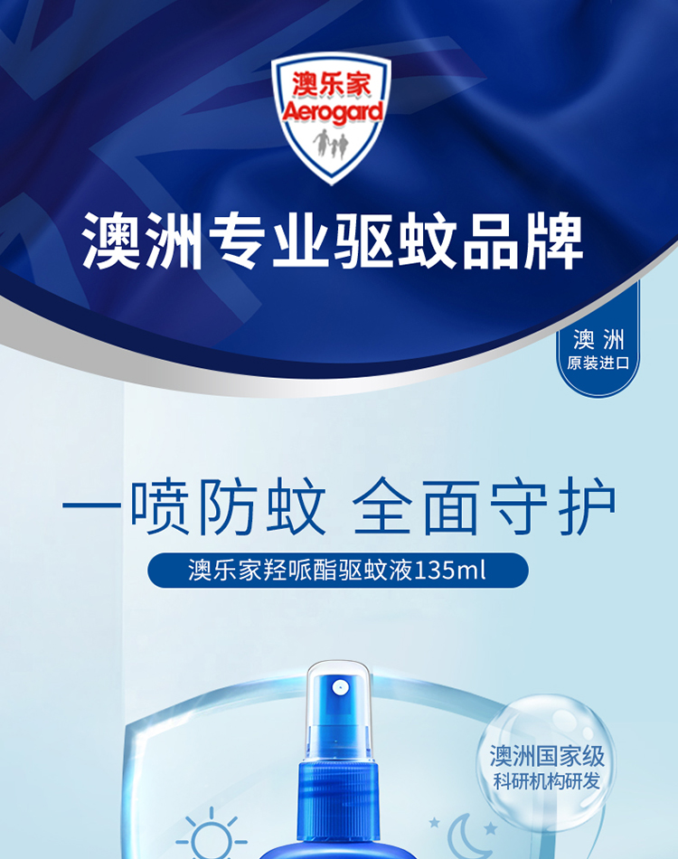 【滴露】Aerogard澳乐家驱蚊液防蚊喷雾135ml/175ml 澳洲进口母婴适用