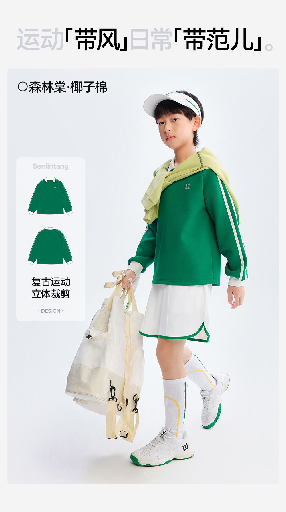 【复古学院风卫衣】森林棠26春椰子棉儿童插肩袖撞色polo领卫衣20361205【HZ】