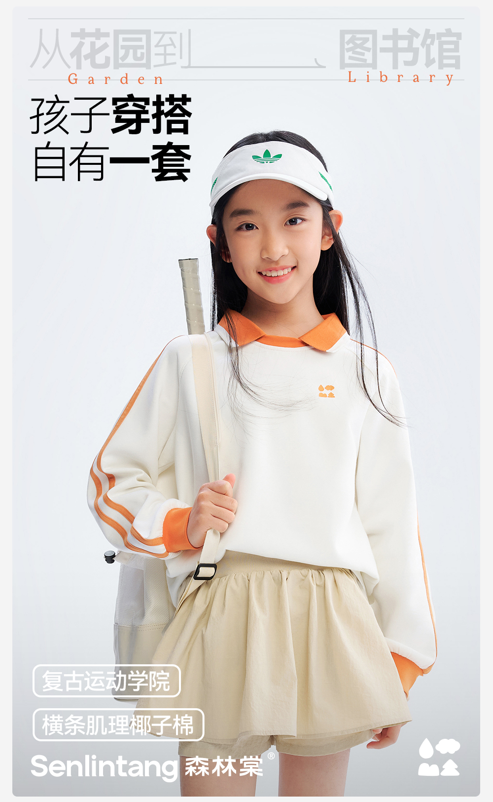 【复古学院风卫衣】森林棠26春椰子棉儿童插肩袖撞色polo领卫衣20361205【HZ】 商品图1