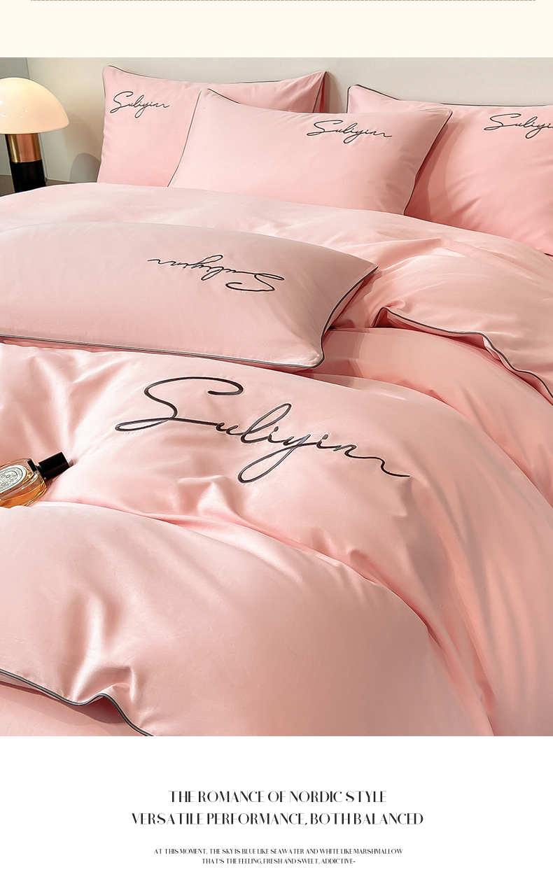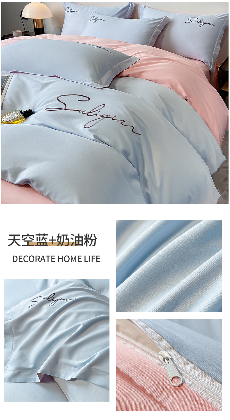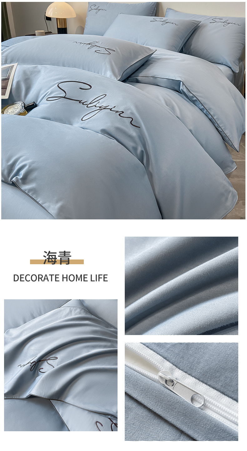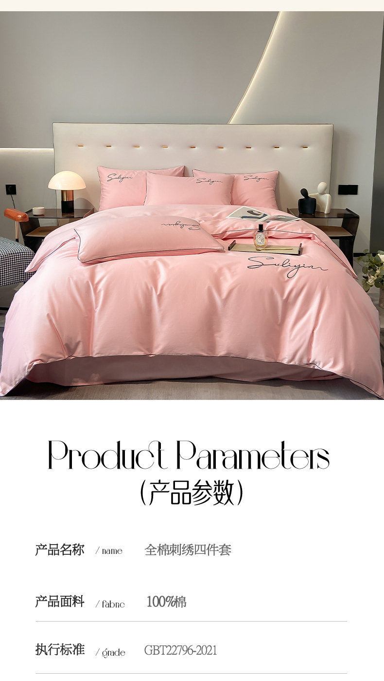 【品牌直发】加倍生活 长绒棉绣花全棉纯色四件套/杰西 高密全棉 软糯贴肤 精致刺绣 活性印染 7色可选