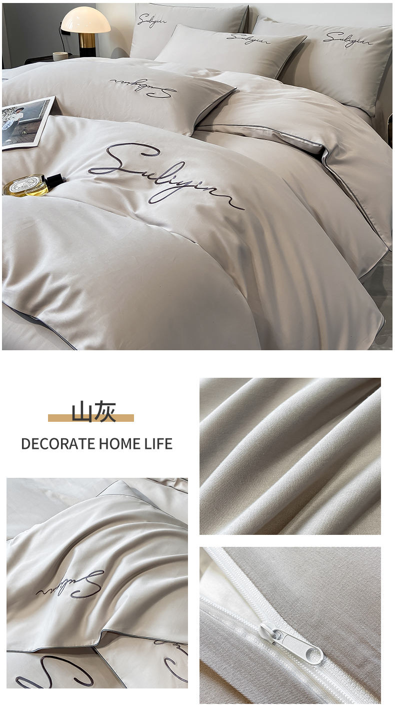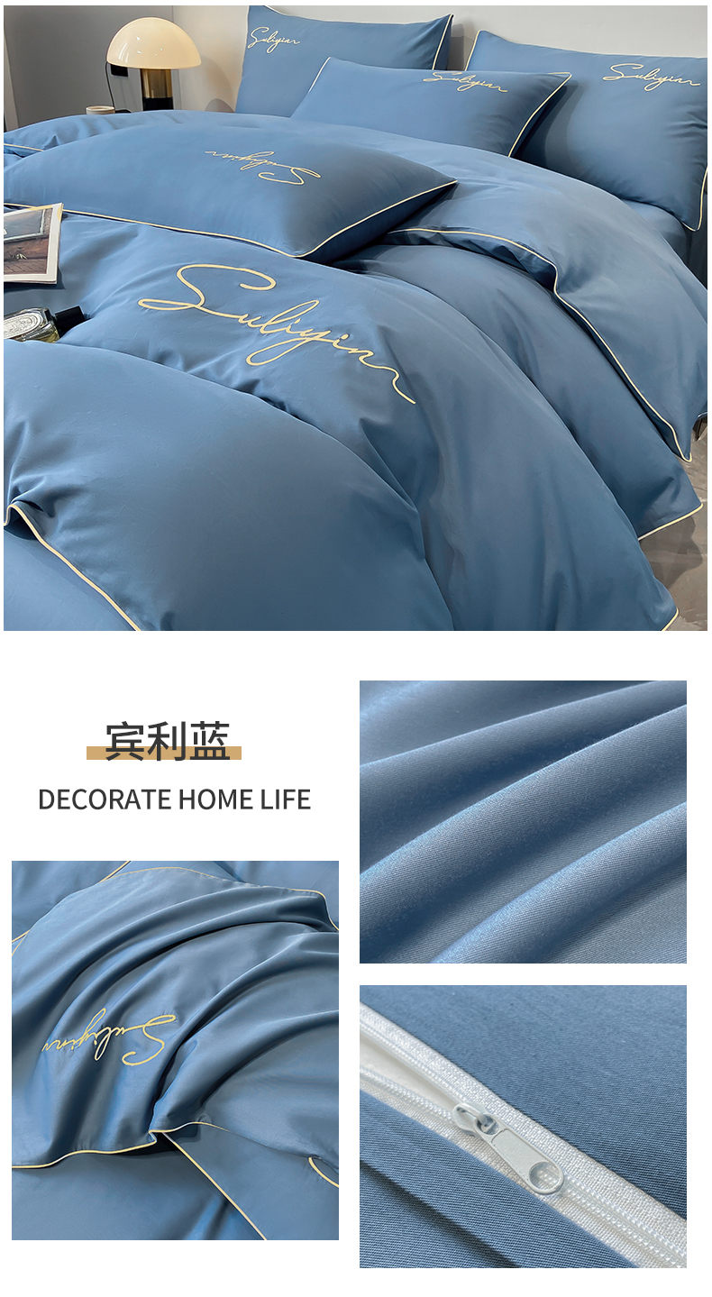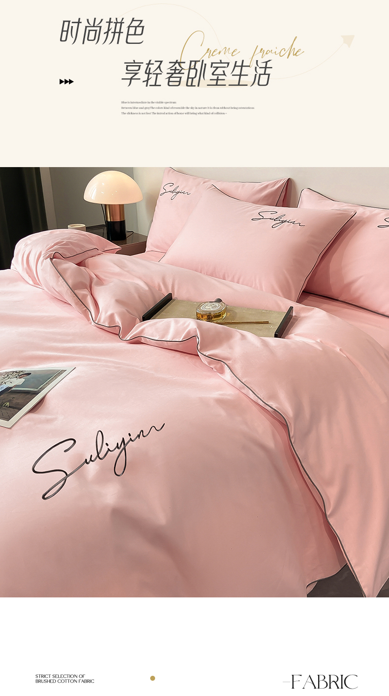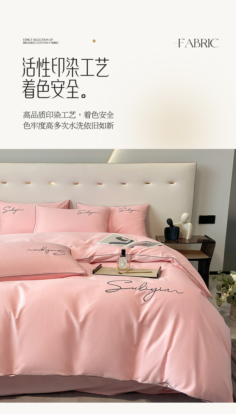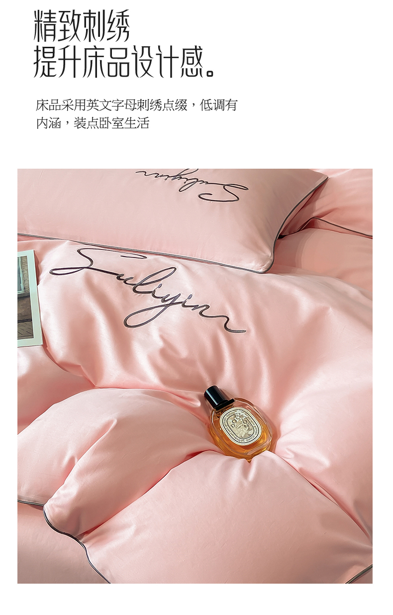 【品牌直发】加倍生活 长绒棉绣花全棉纯色四件套/杰西 高密全棉 软糯贴肤 精致刺绣 活性印染 7色可选