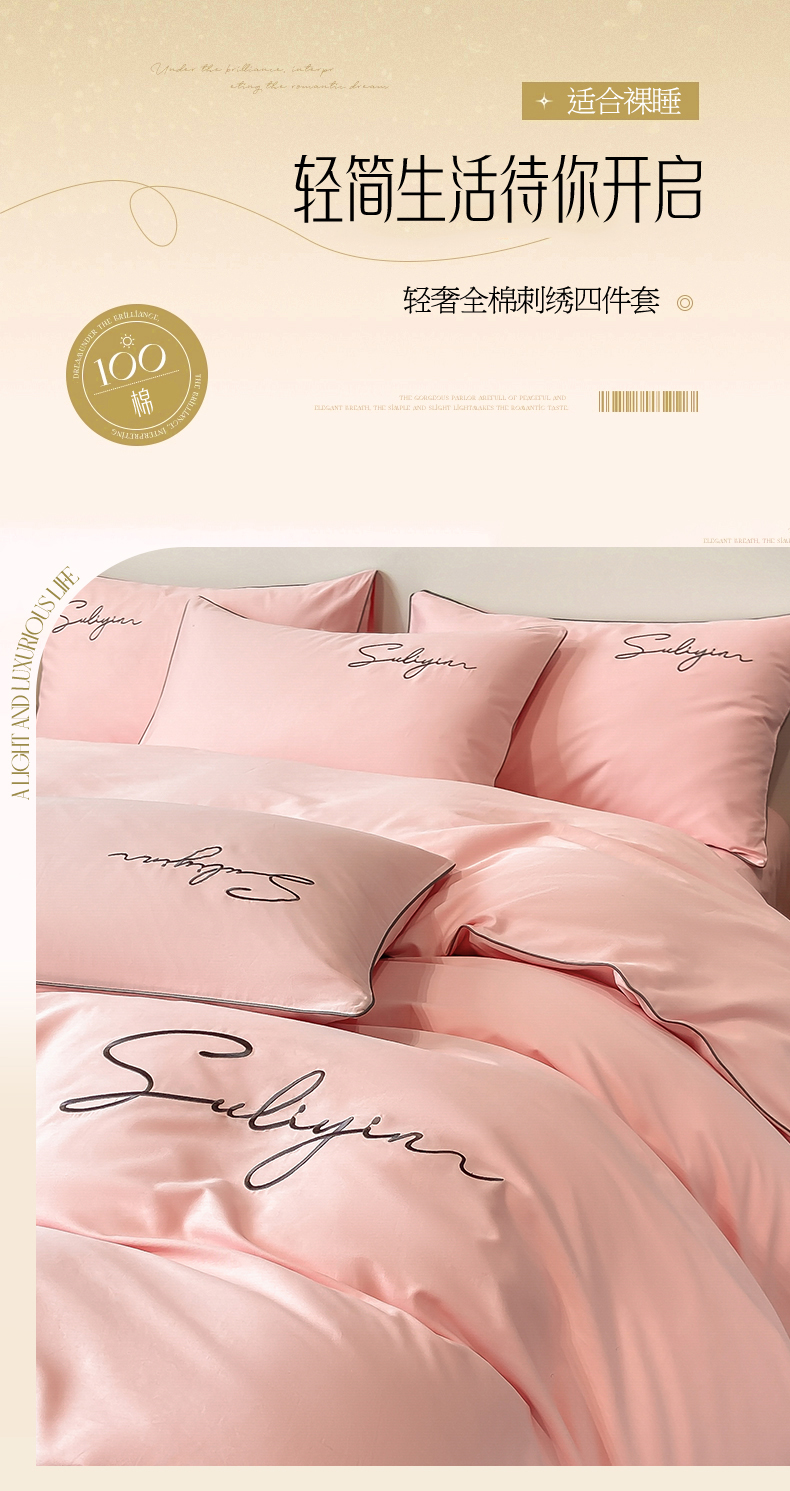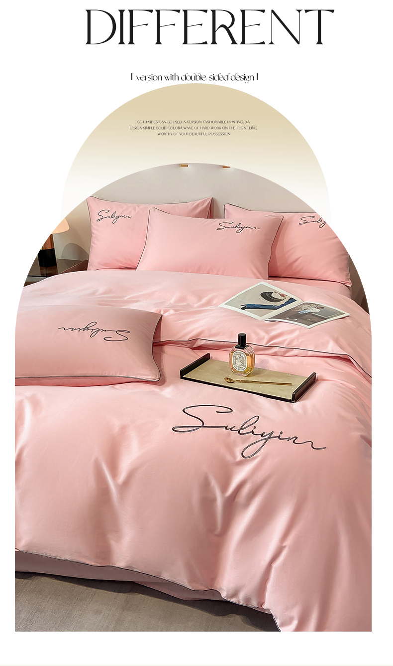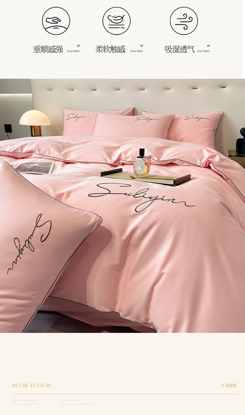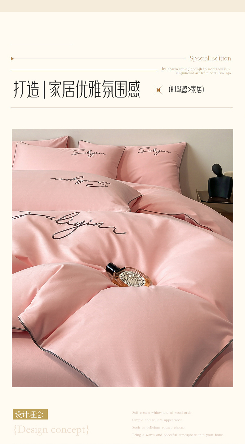 【品牌直发】加倍生活 长绒棉绣花全棉纯色四件套/杰西 高密全棉 软糯贴肤 精致刺绣 活性印染 7色可选