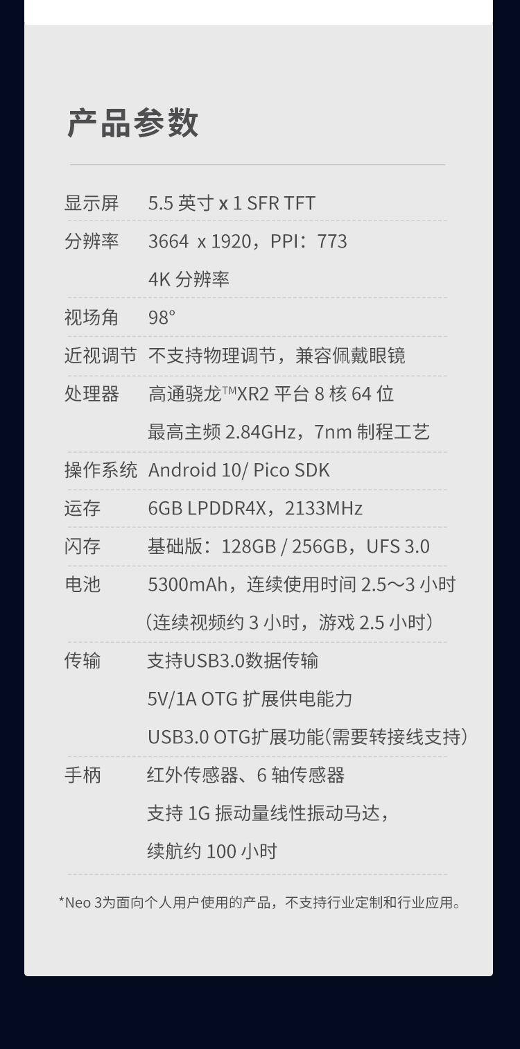 Pico Neo 3 VR一体机 光学追踪瞳距调节4K超清