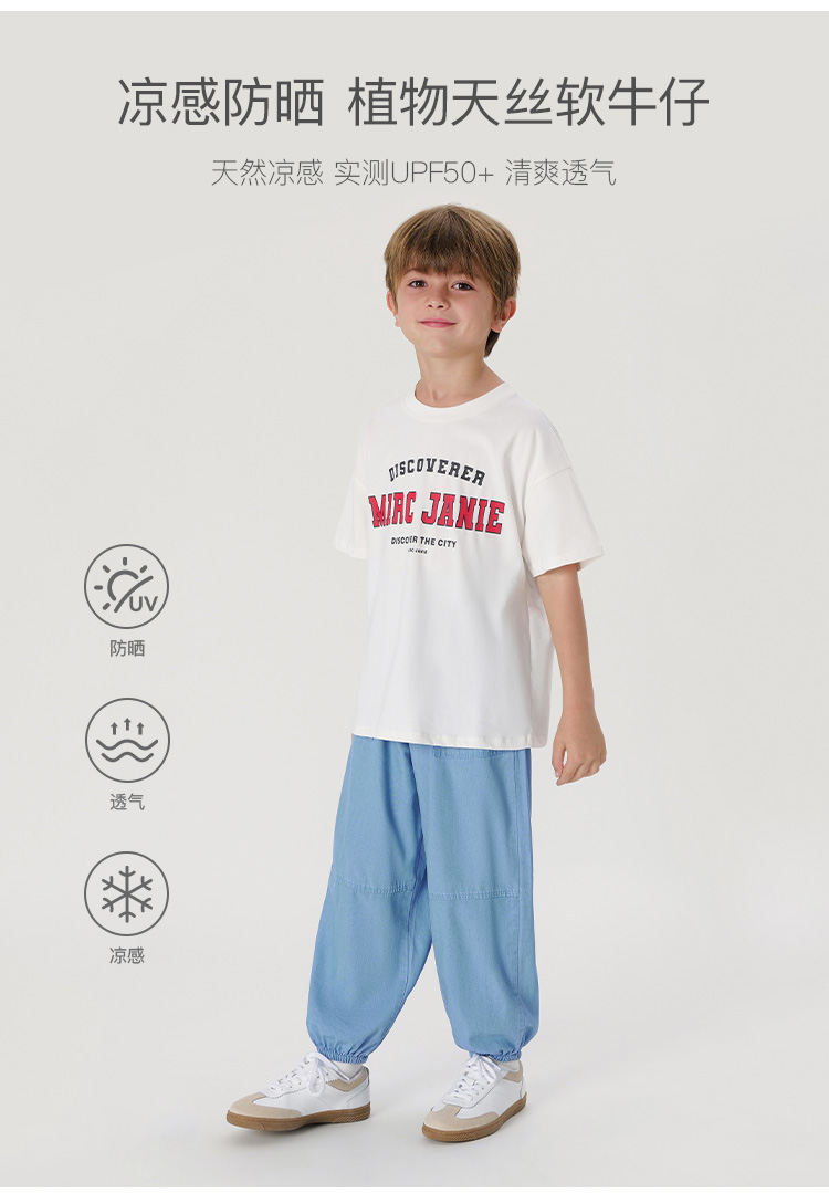 马克珍妮男童凉感防晒天丝牛仔裤儿童裤子防蚊裤春夏新款240815