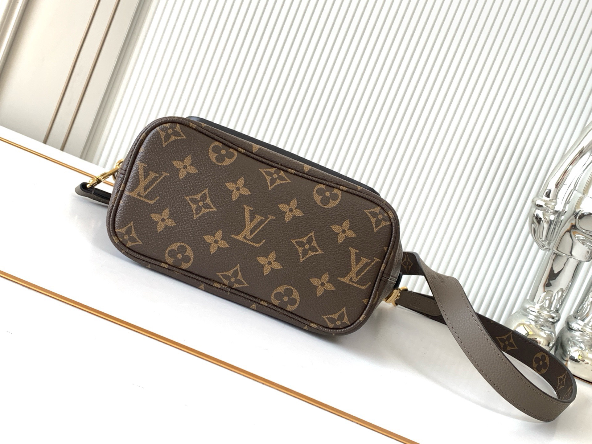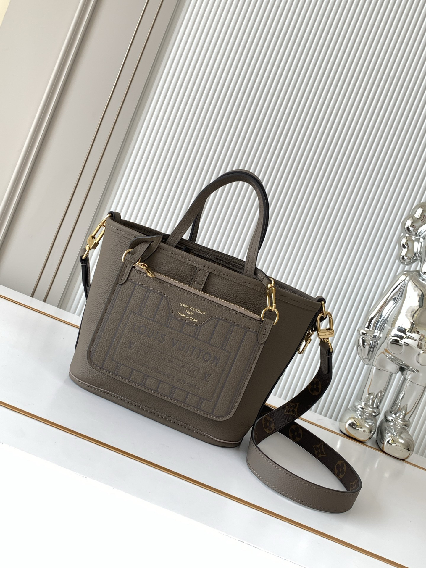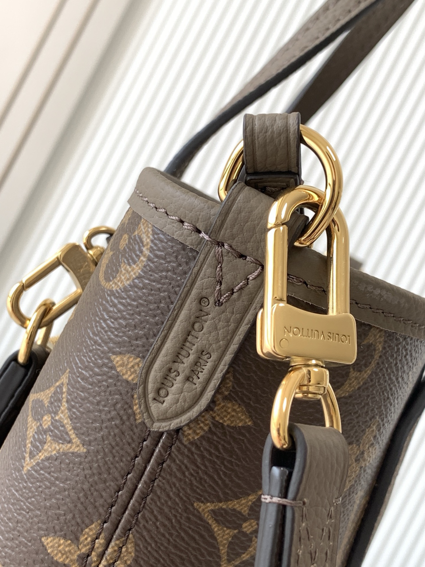 牛皮革/Monogram 涂层帆布粒面牛皮革和涂层帆布牛皮革饰边金属件