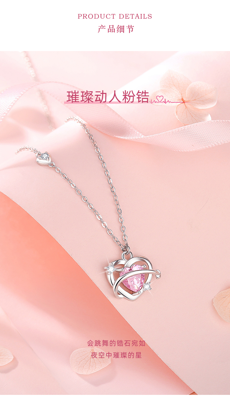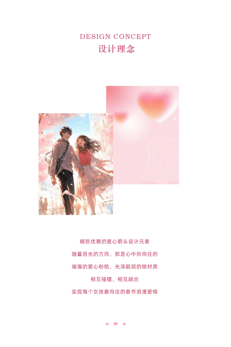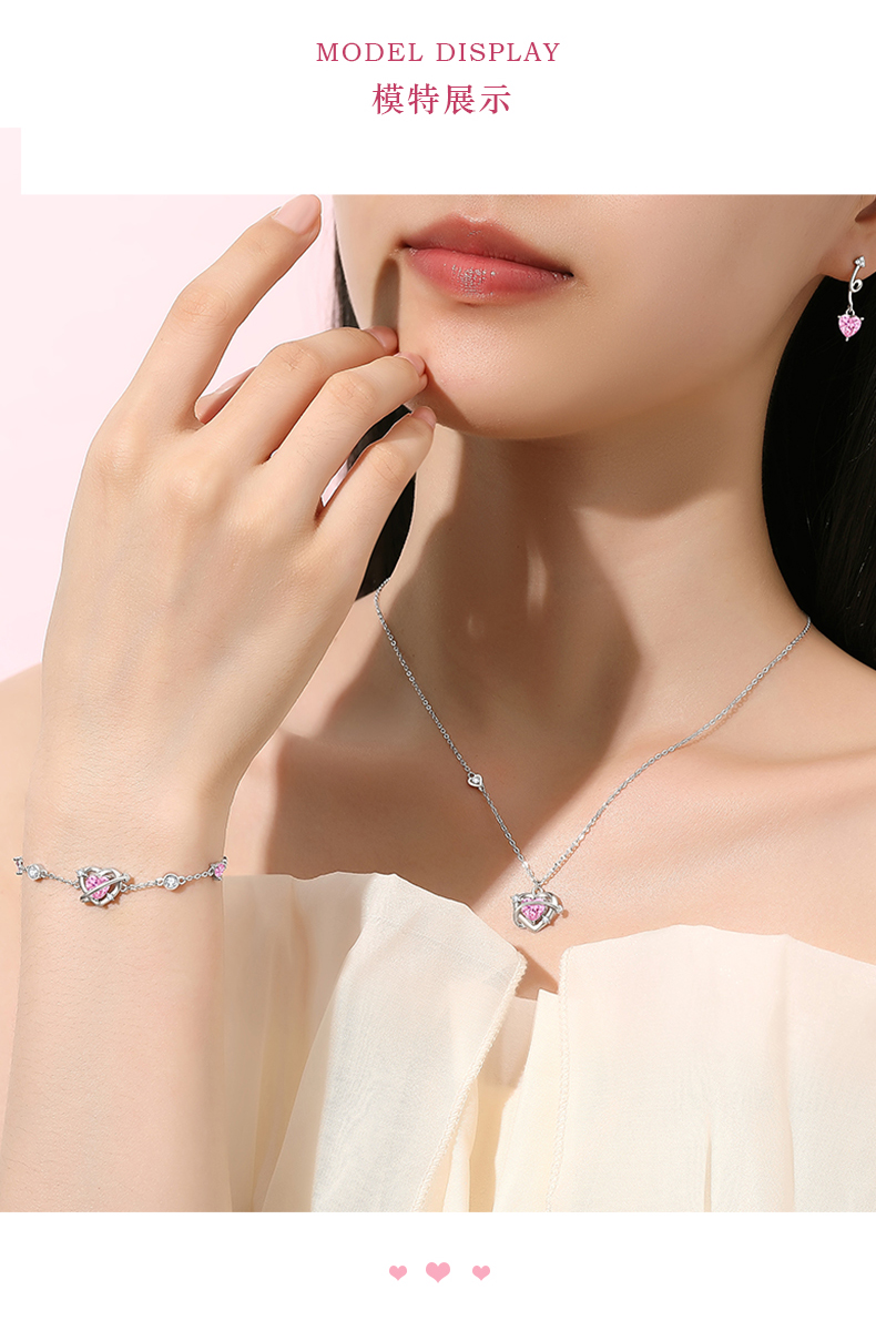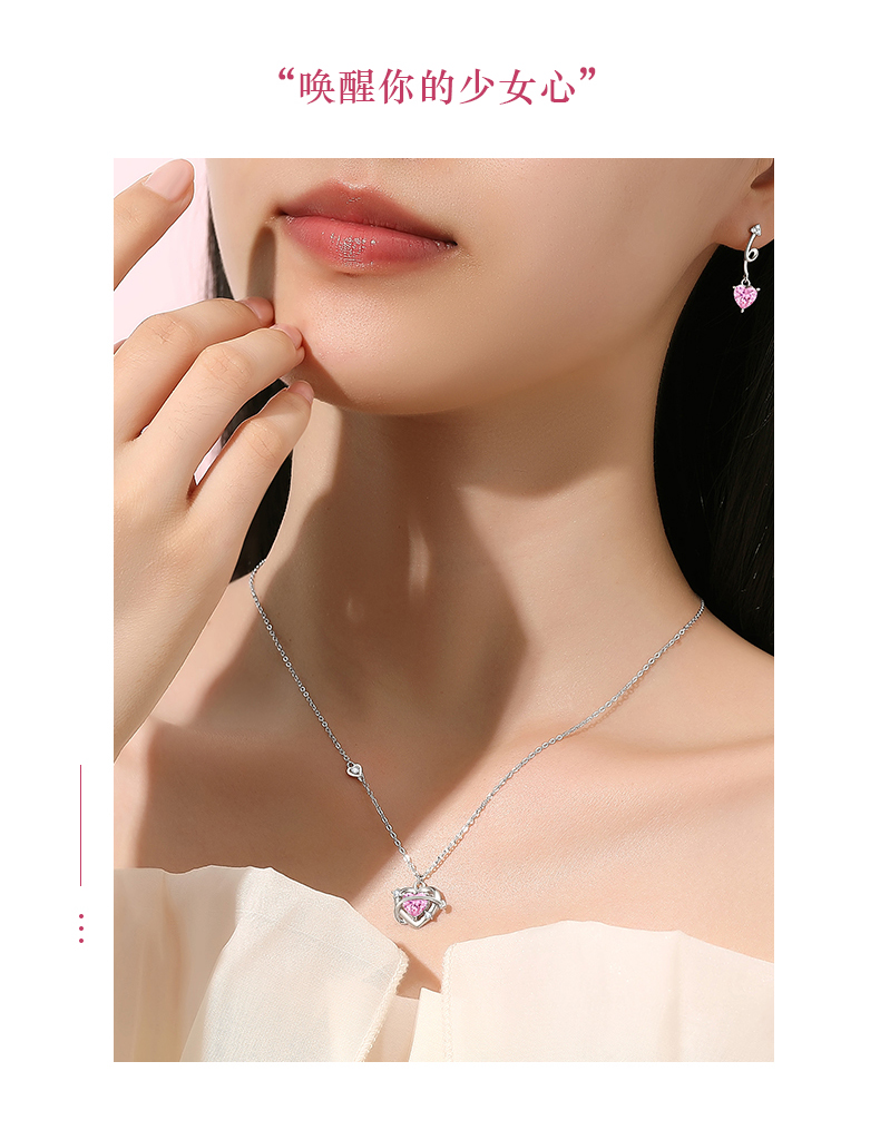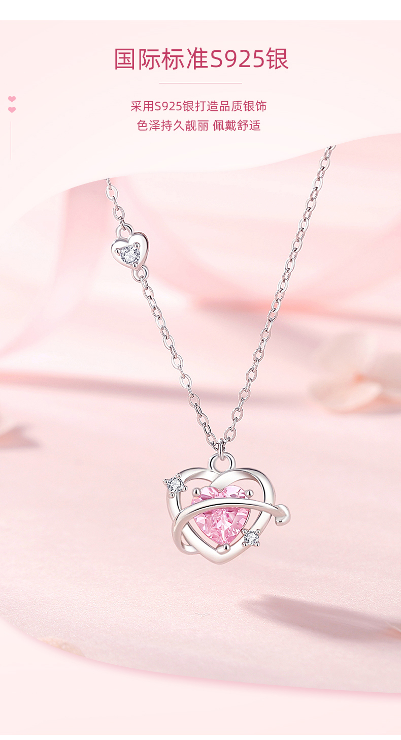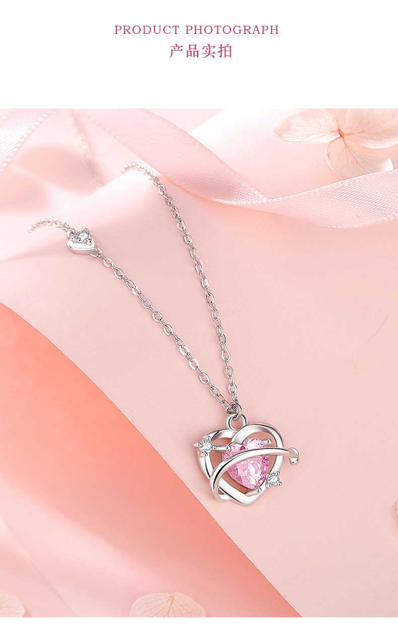 卡蒂罗/KADER 心之所向项链 经典爱心丘比特箭头设计大颗粉色宝石吊坠 一见钟情怦然心动浪漫甜美锁骨链