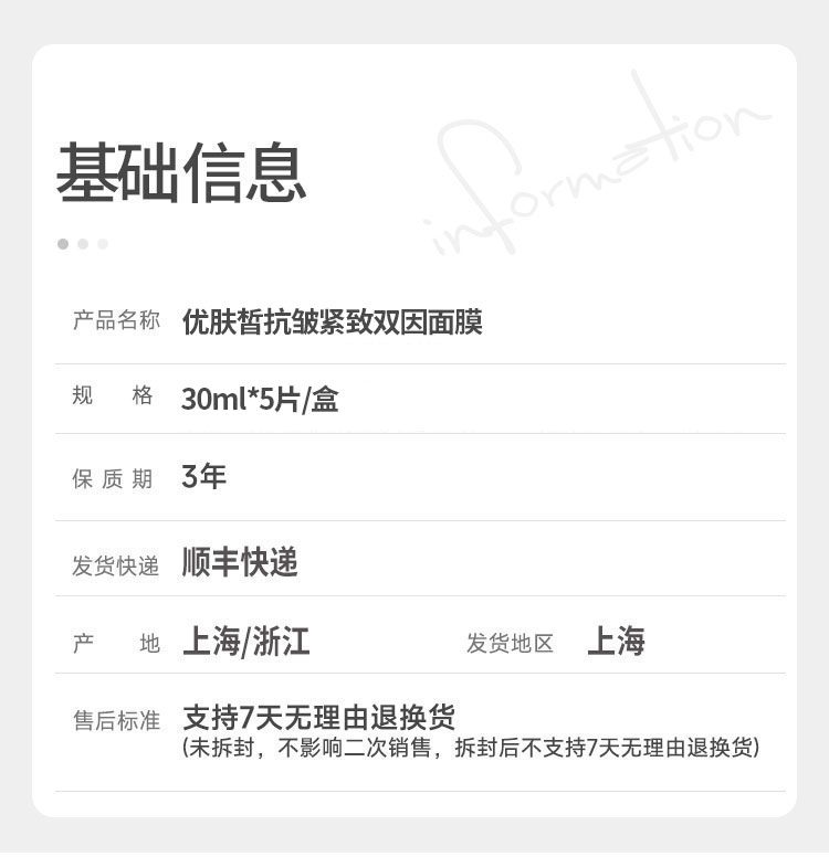 【优肤皙UFUSAY】抗皱紧致双因面膜30ml*5片/盒玻色因+麦角硫因+黑松露无水配方多维充盈