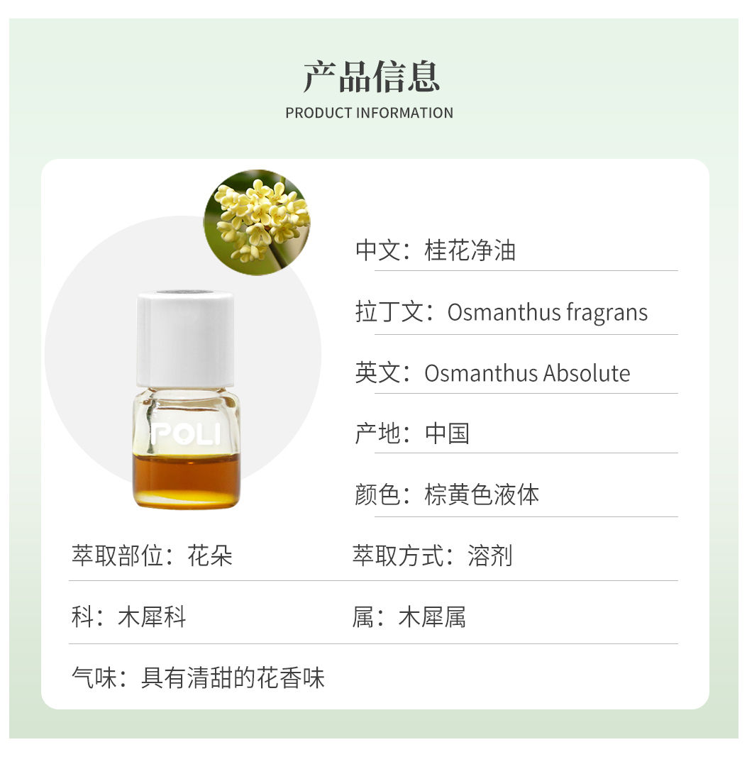 颇黎POLI桂花净油原液单方净油原料厂家颇黎批发净油原料
