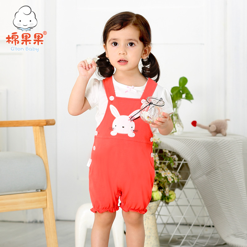棉果果夏季短袖男童女童小兔子背带裤套装M222309218312