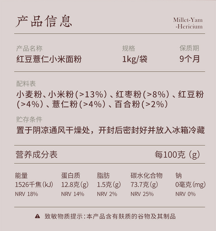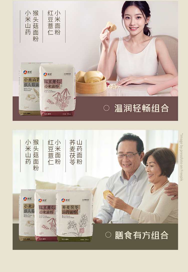 新良多谷物面粉红豆薏仁小米山药猴头菇荞麦茯苓山药面粉.1kg