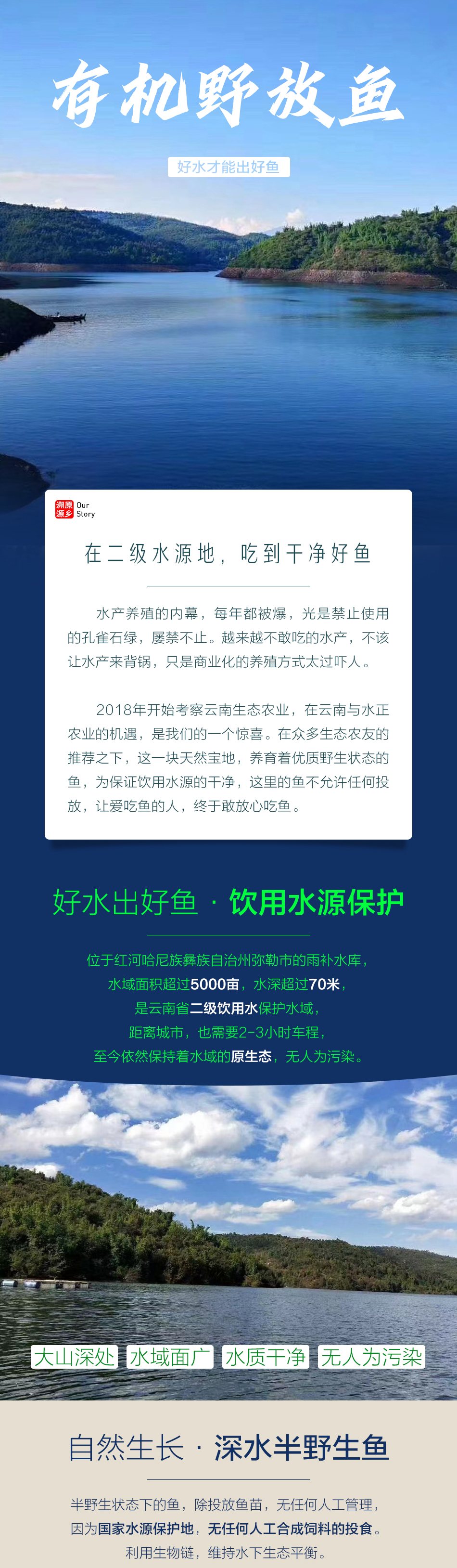 净重—— 草鱼:2.2-2.5斤(1条) 鲫鱼:1斤( 3-4条) 鲈鱼:1-1.1斤(1-2条) 花鲢鱼头:2斤(2个) 罗非鱼:800克(2-3条) 保质期:30天(越快食用鲜度越好) 保存方法:冷冻 食用方法:烧、蒸、炖、烤 养殖方式:野放生长,自然捕捞,无投喂 产地:云南省红河哈尼彝族自治州弥勒市雨补水库 注意事项: 1.鱼捕捞后杀好洗净冷冻袋装,偶尔会有漏气、胀气情况,但不影响品质跟口感,介意请慎重下单。 2.顺丰空运已经是目前时效最快的快递,收到如果已经解冻,属于正常现象。 3.生鲜物品收到如有售后请于签收后6小时以内反馈,超时不予售后。 |