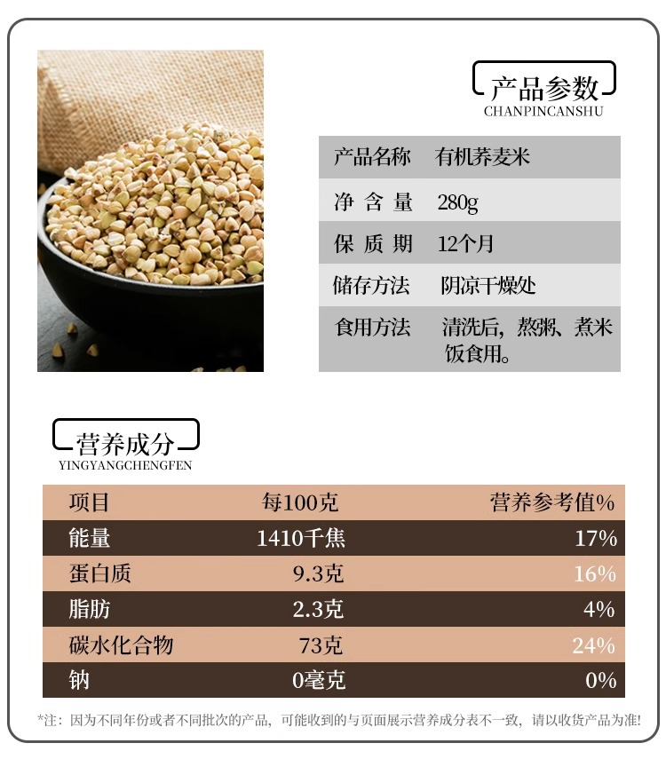 人民食品 有机荞麦米280g