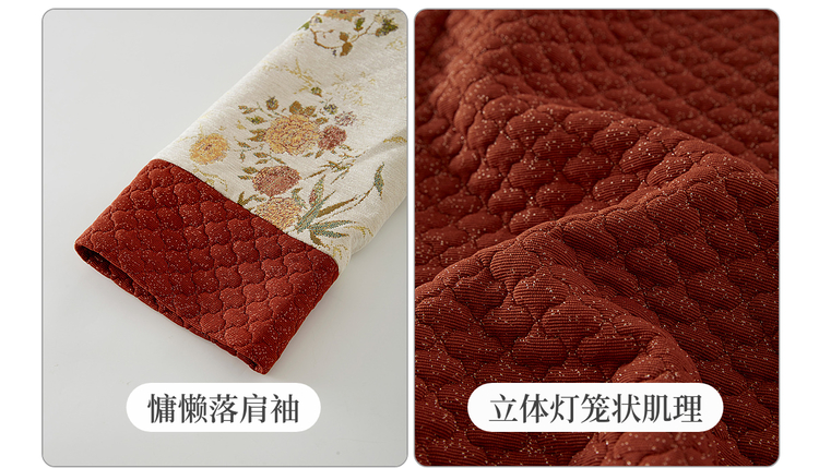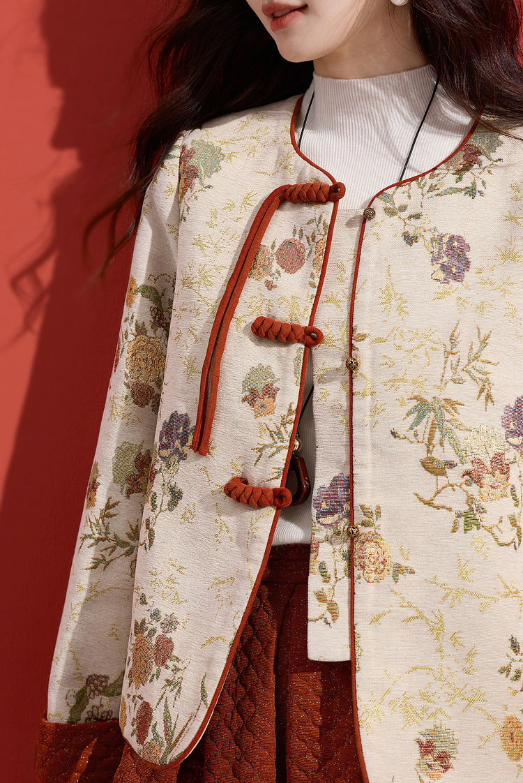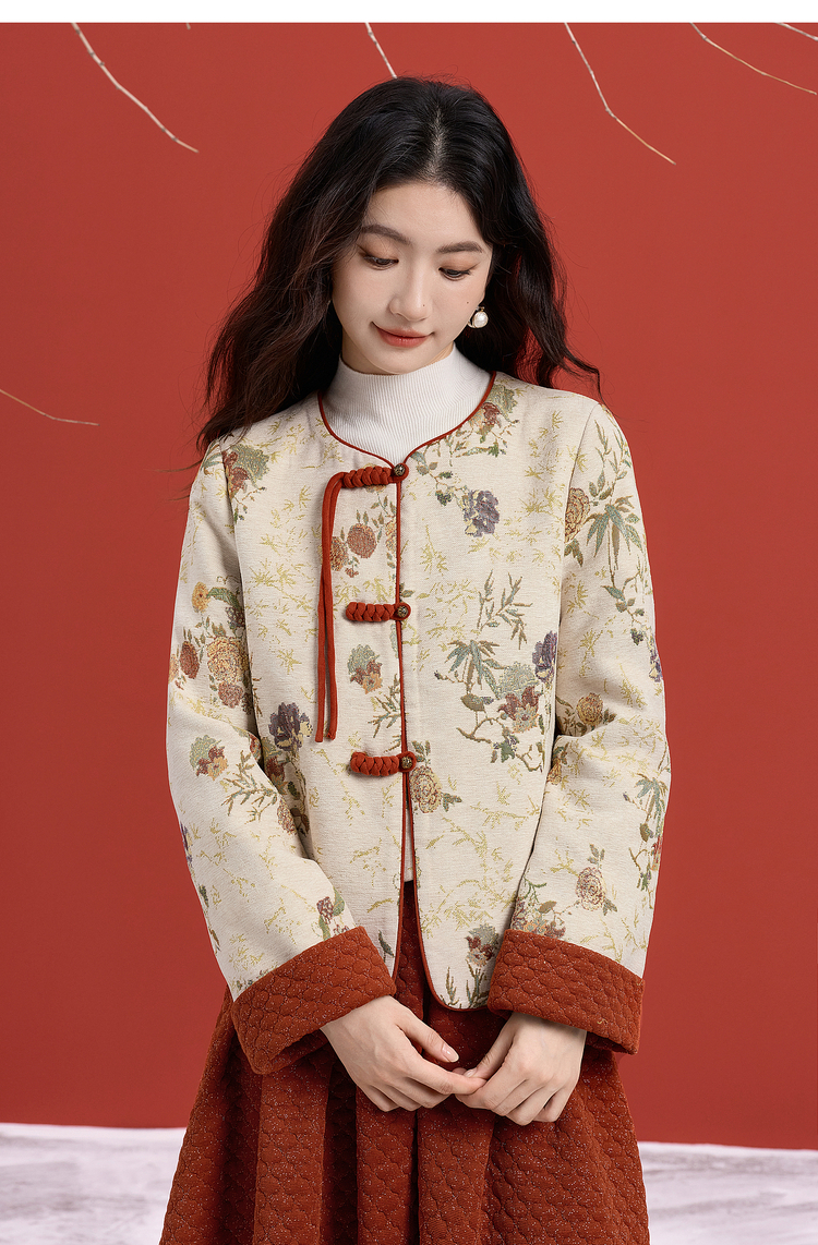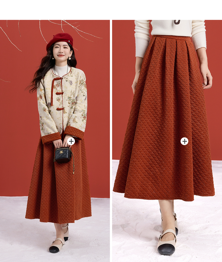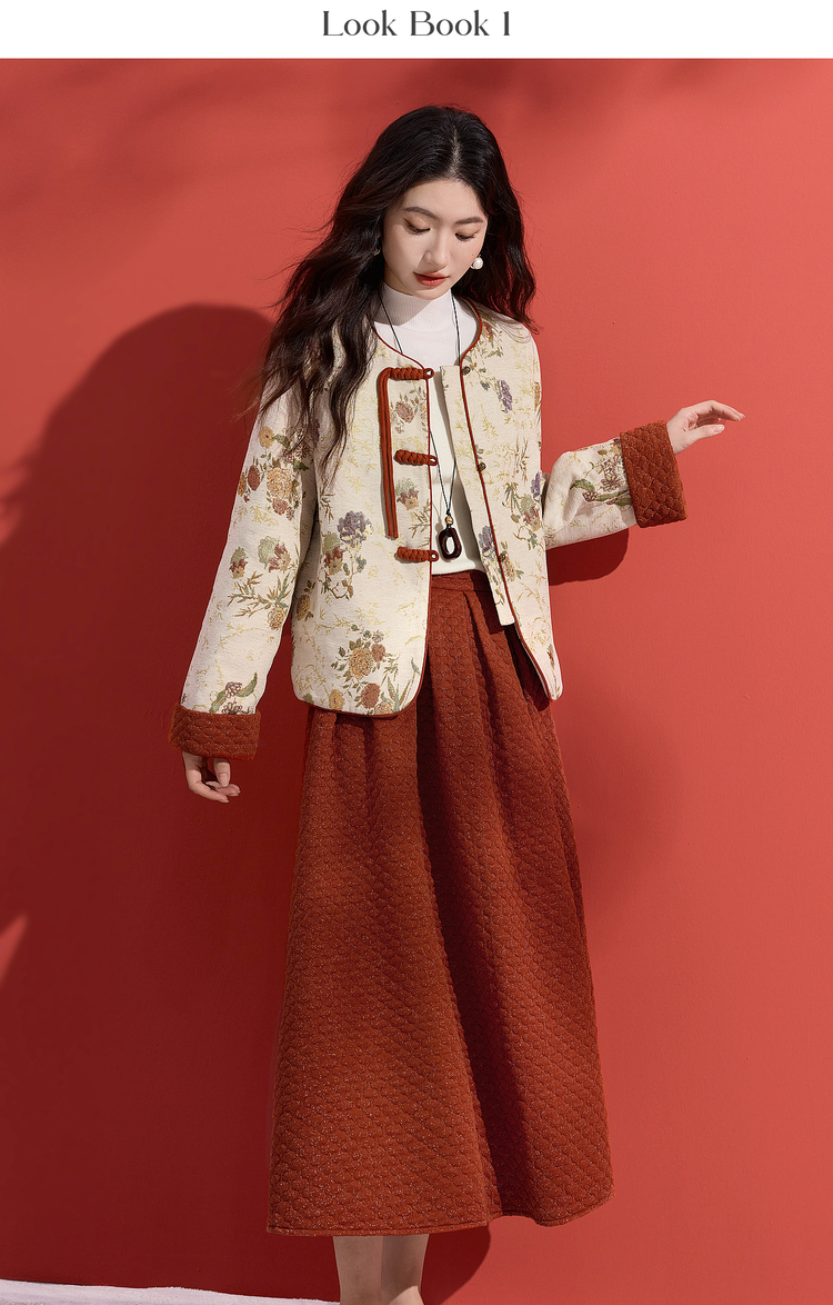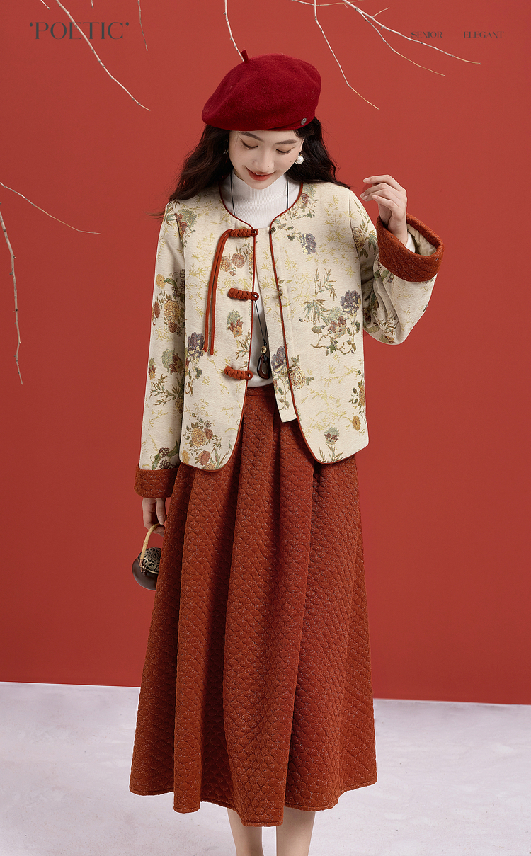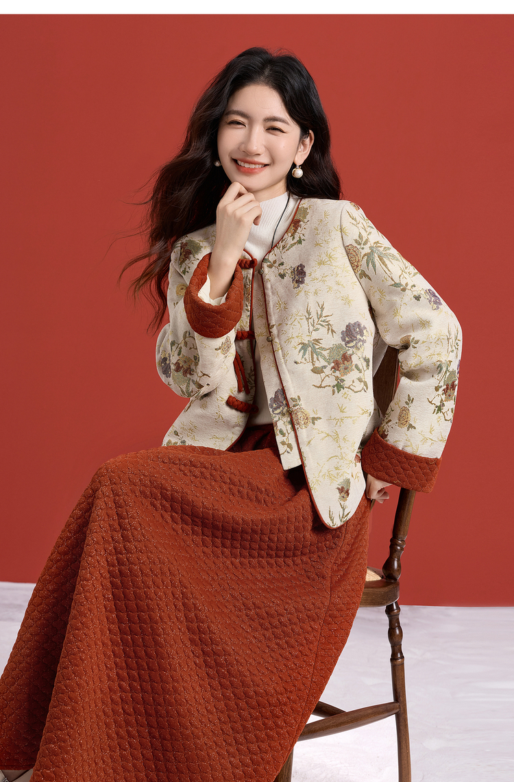 【11/19新品】熙世界新中式国风红色套装女2025秋冬复古提花外套肌理半裙两件套