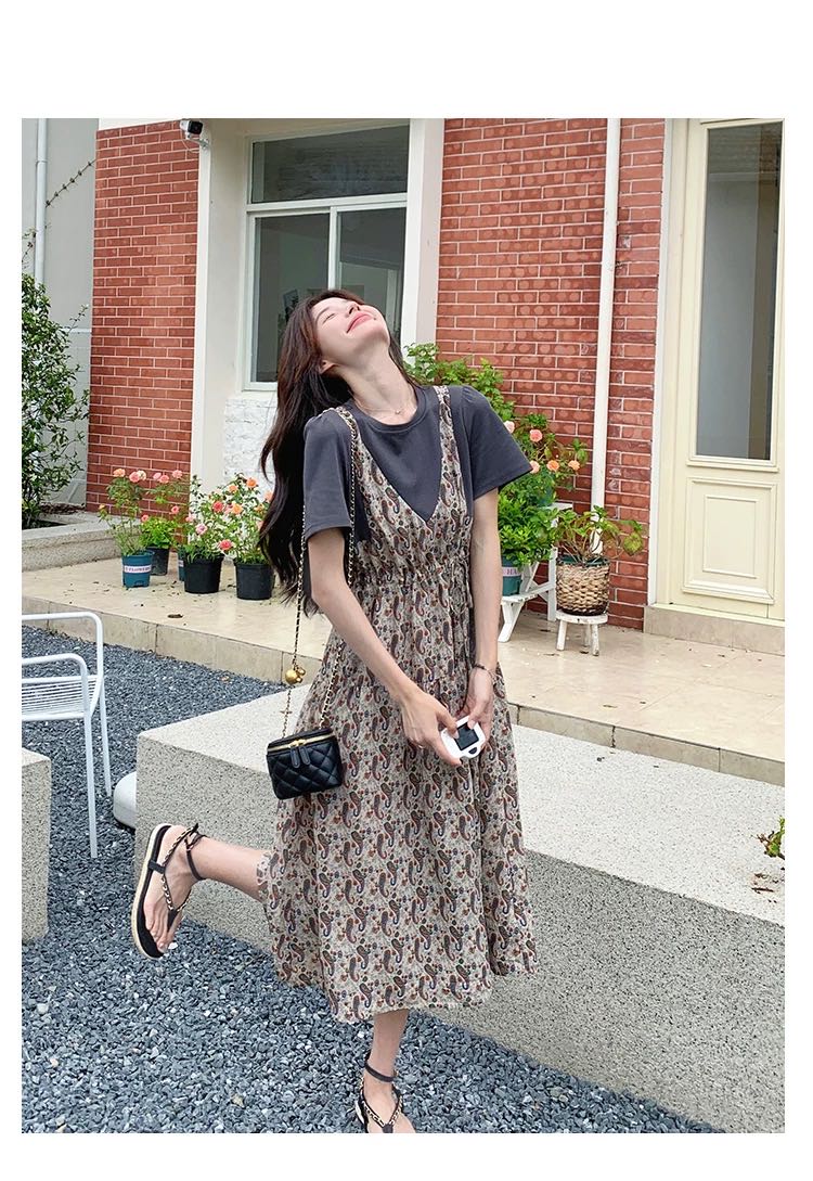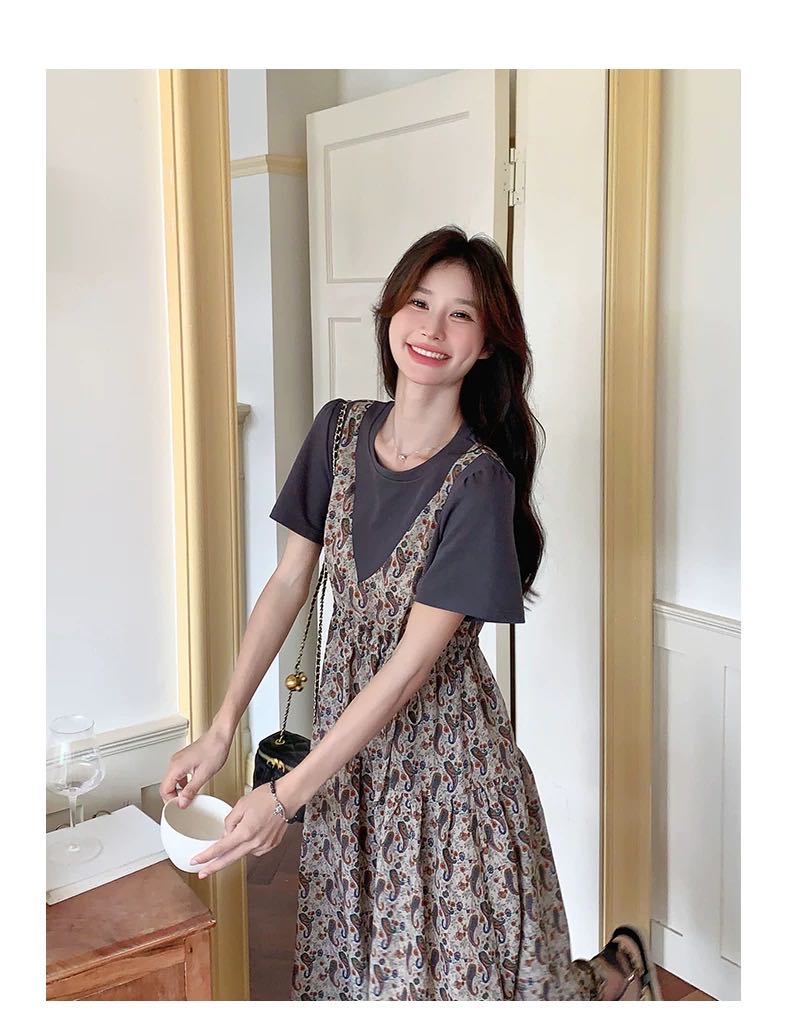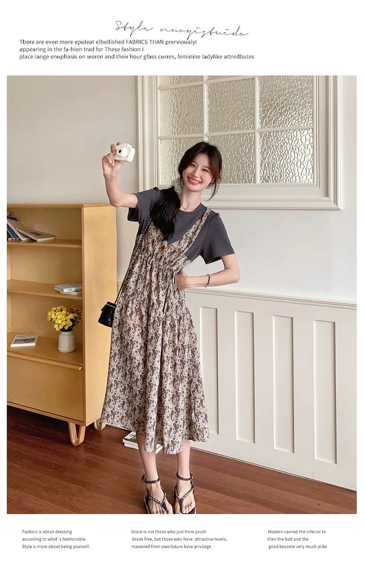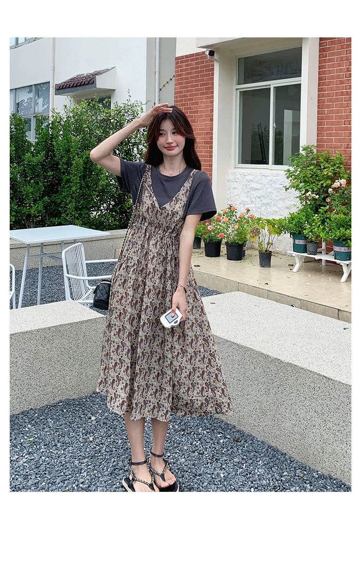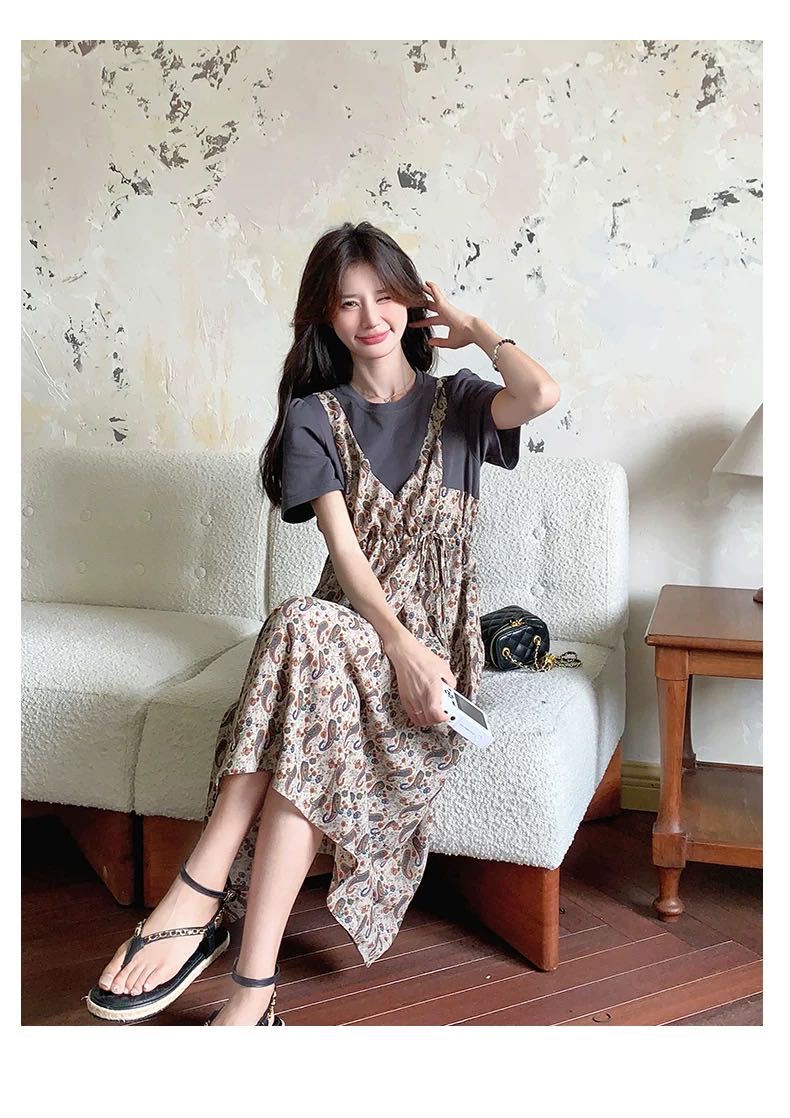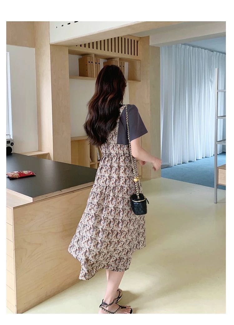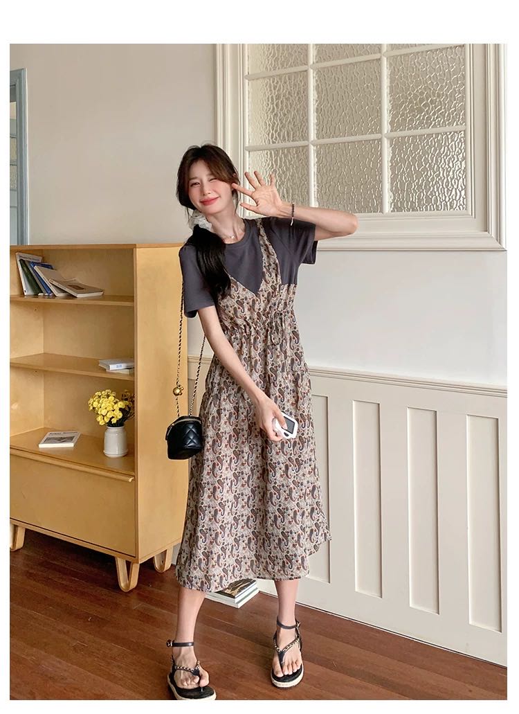 ✨法式温柔风初恋长裙【碎花拼接假2件连衣裙】腰部抽绳设计,上半身有弹力,包容性强,不勒
