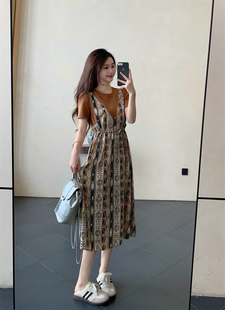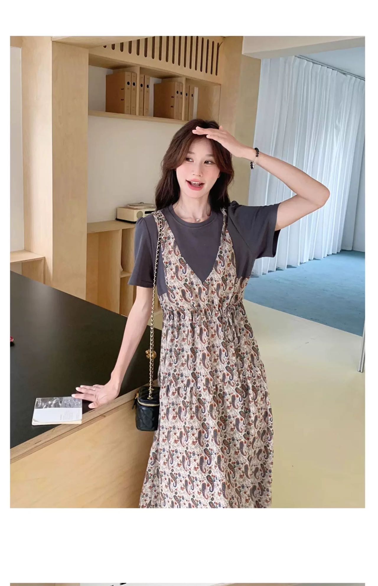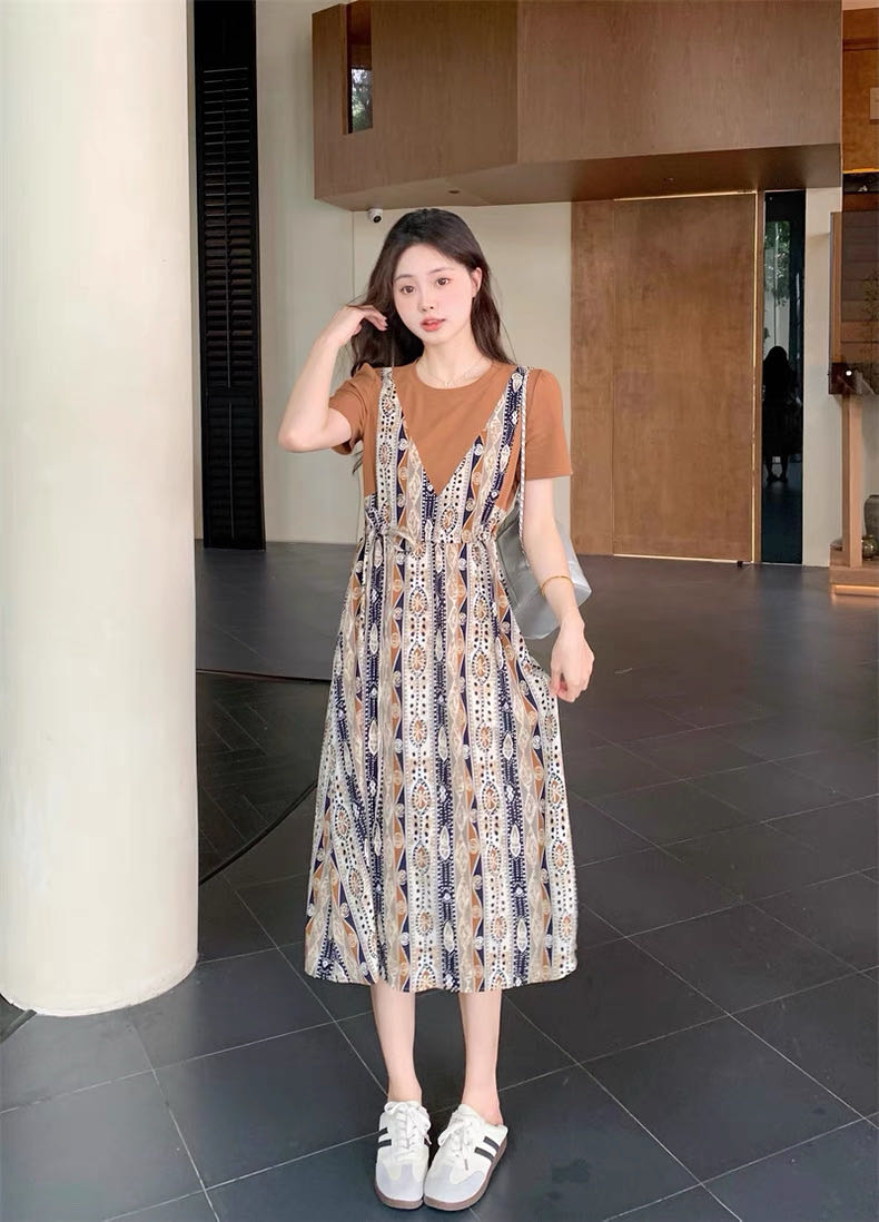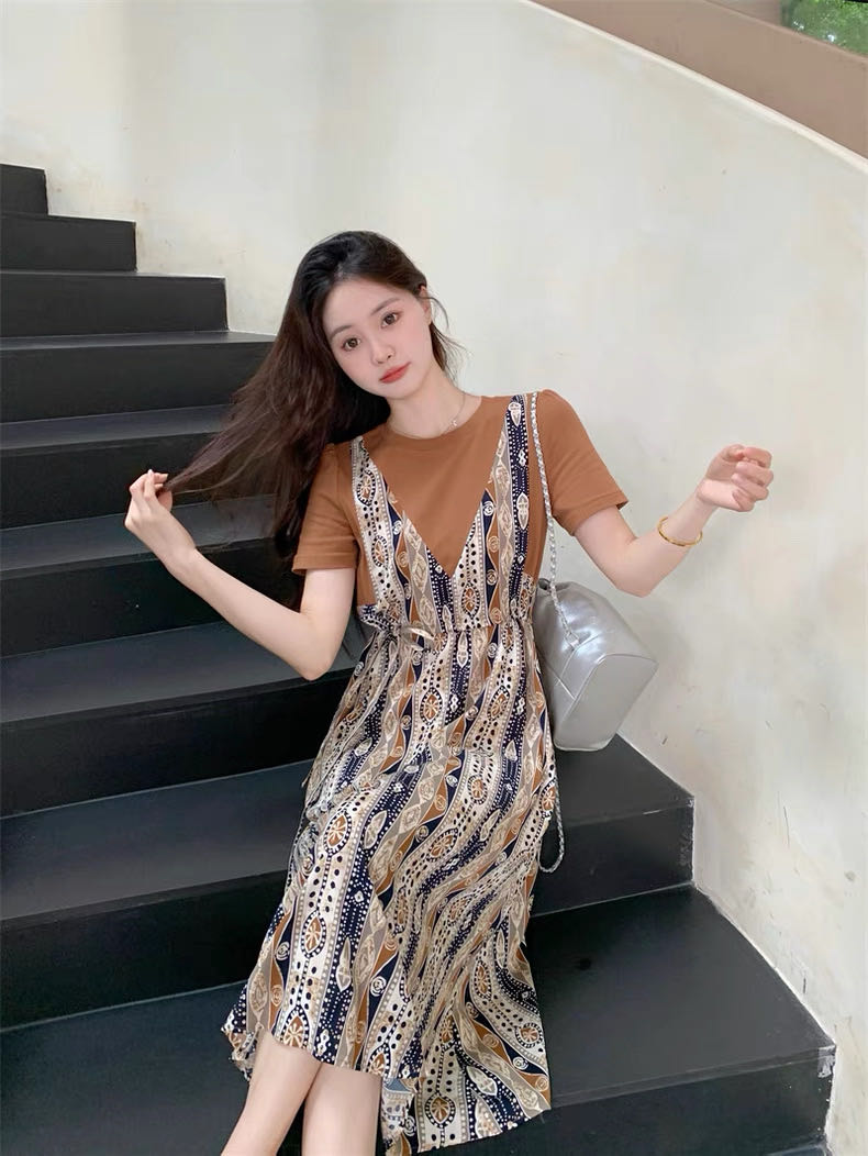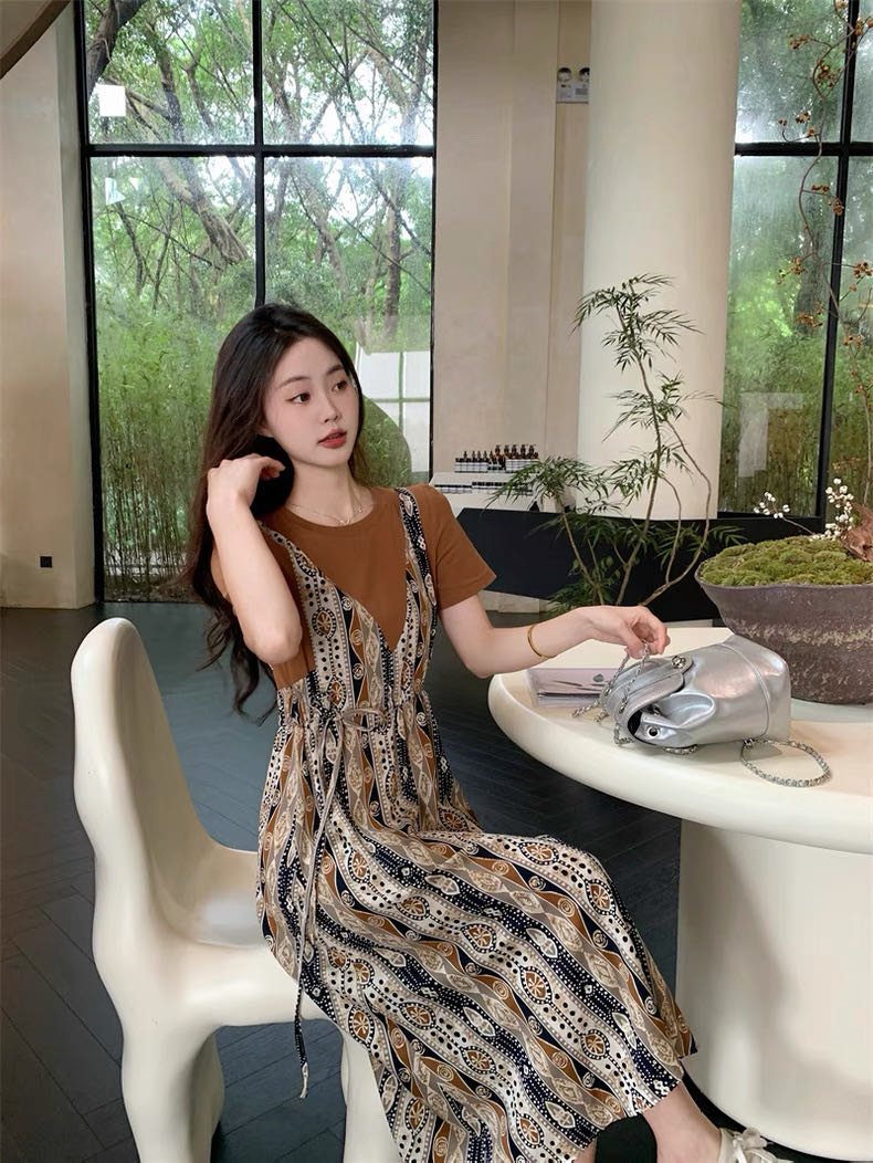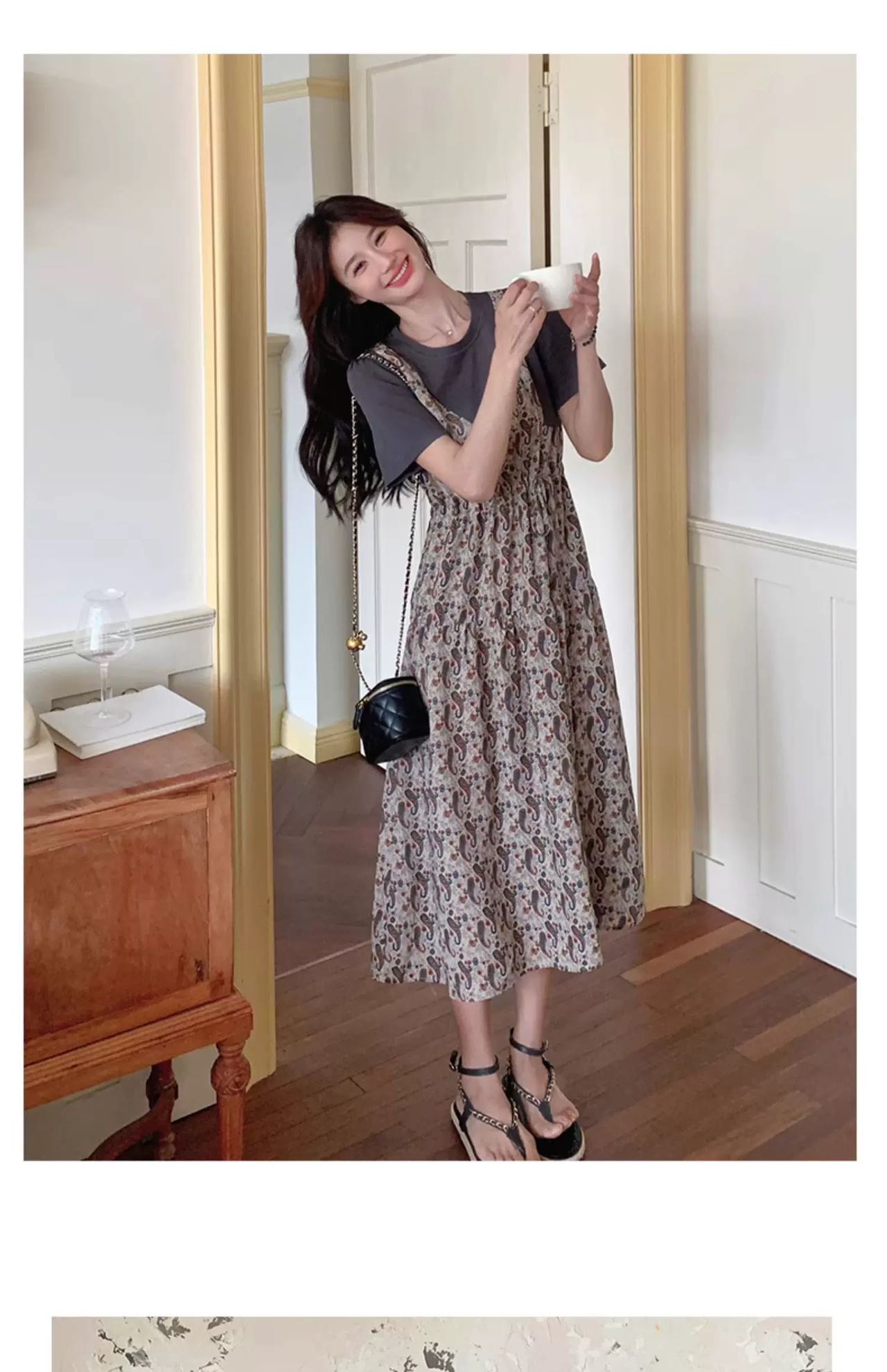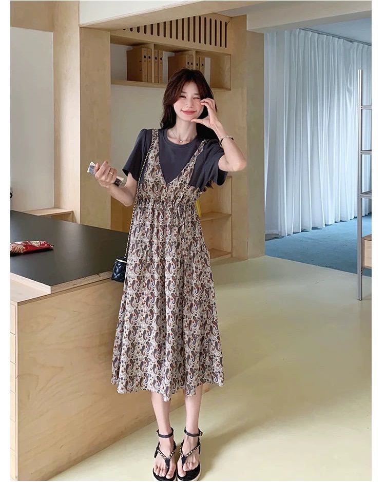 ✨法式温柔风初恋长裙【碎花拼接假2件连衣裙】腰部抽绳设计,上半身有弹力,包容性强,不勒