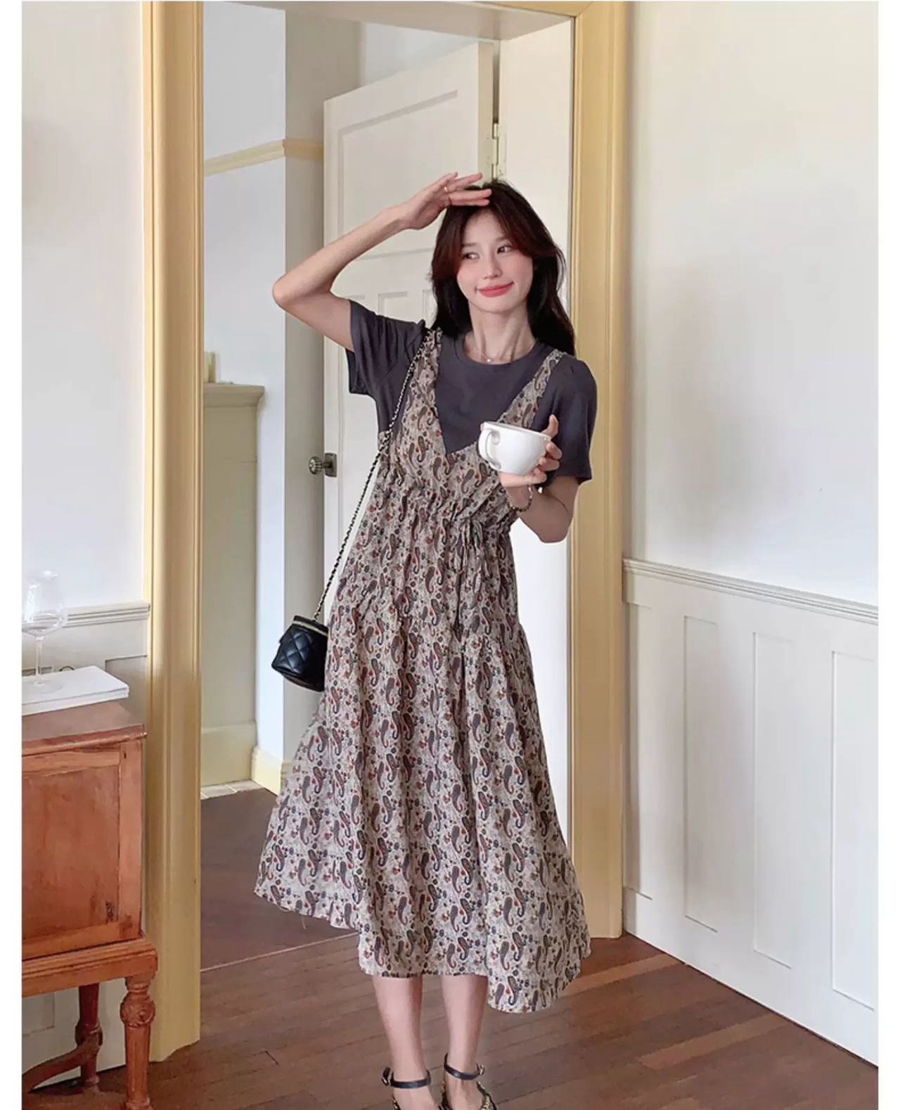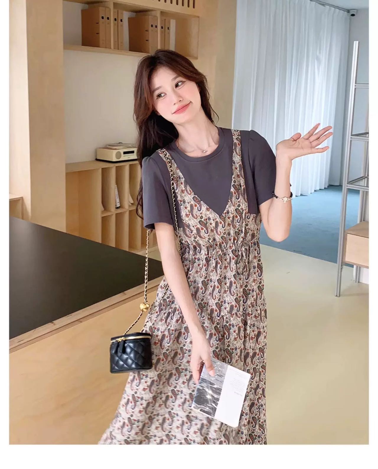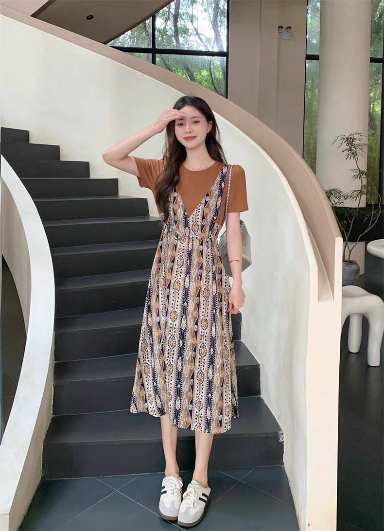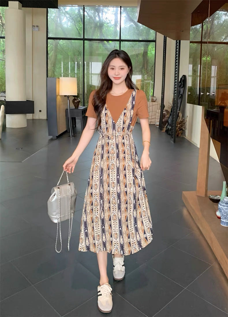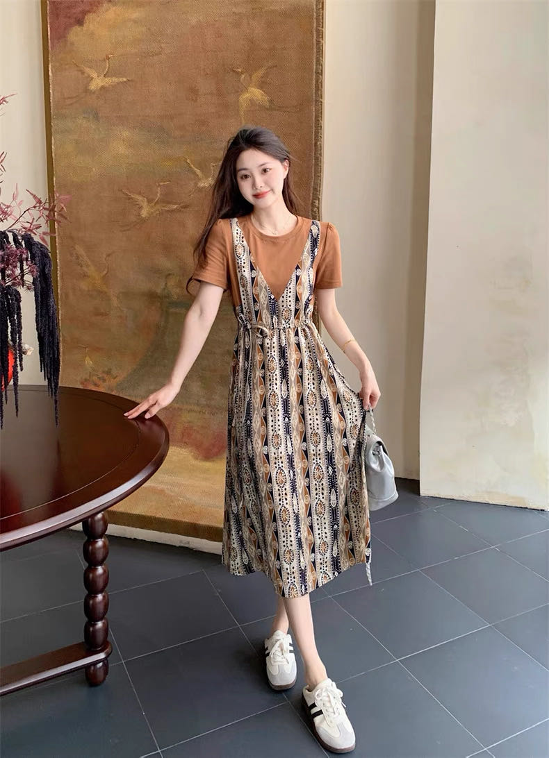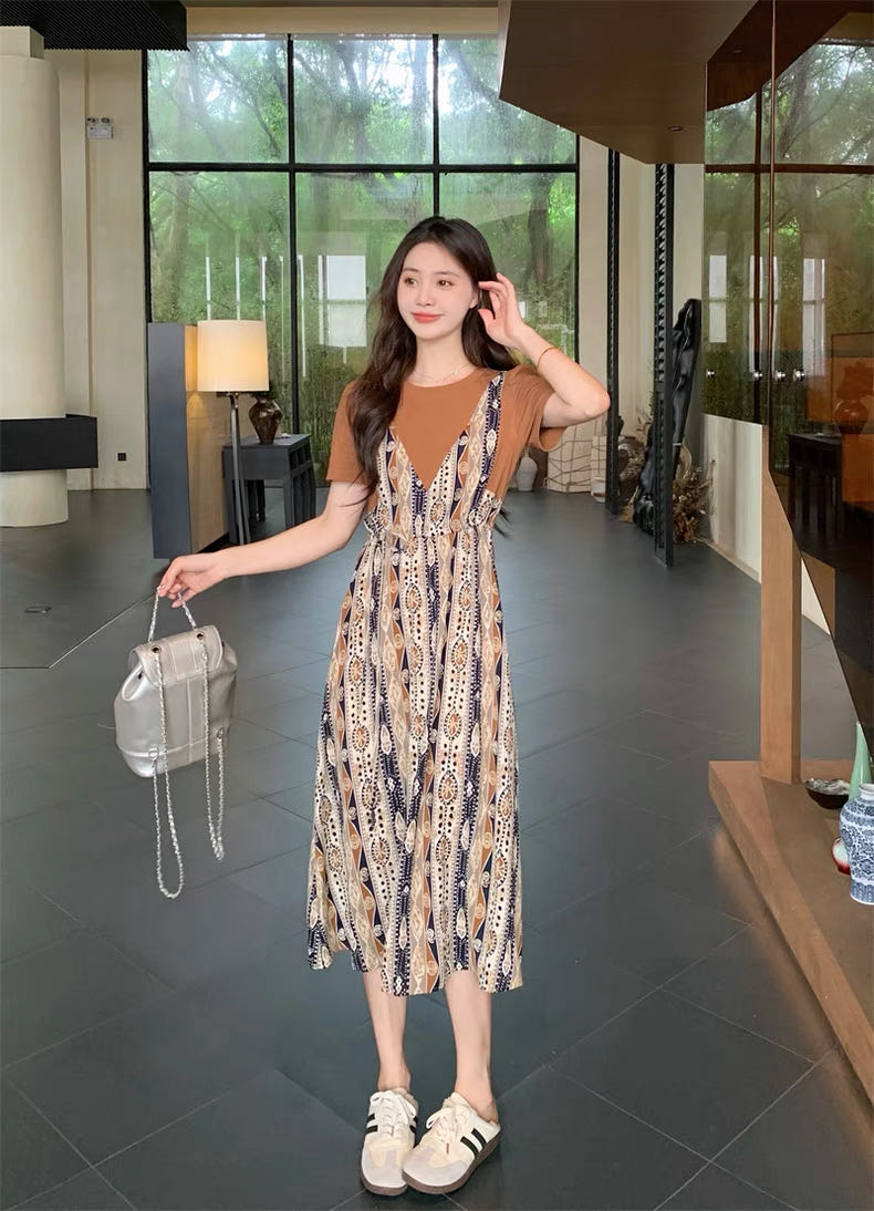 ✨法式温柔风初恋长裙【碎花拼接假2件连衣裙】腰部抽绳设计,上半身有弹力,包容性强,不勒