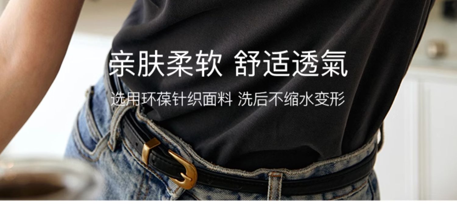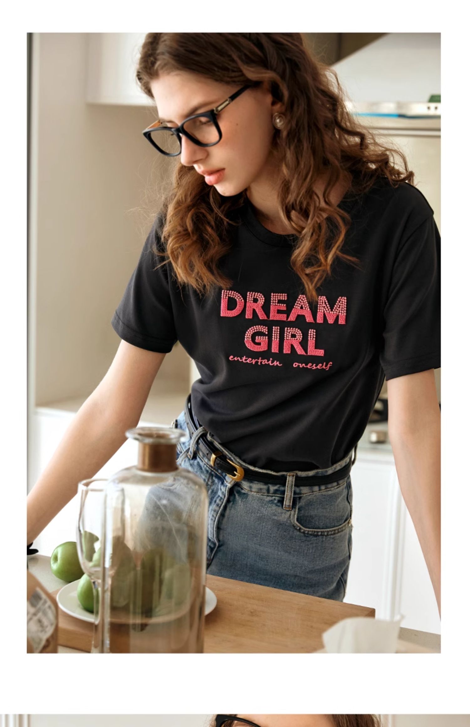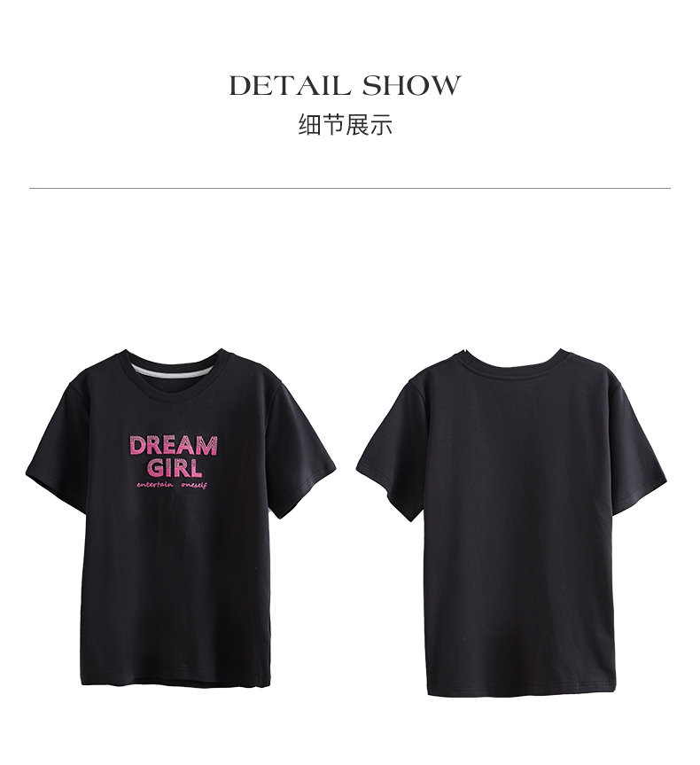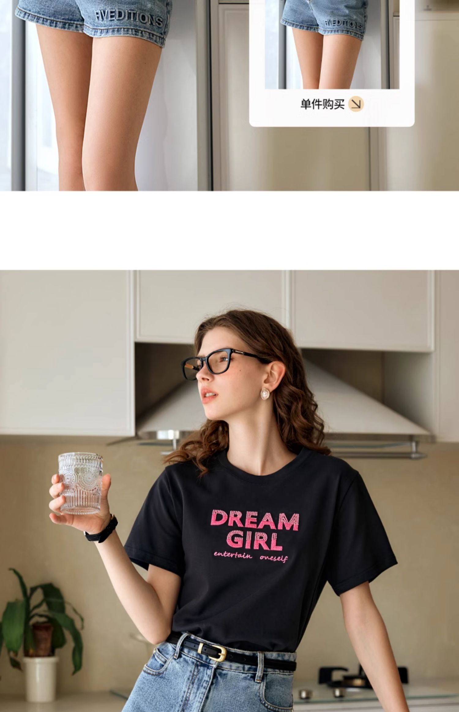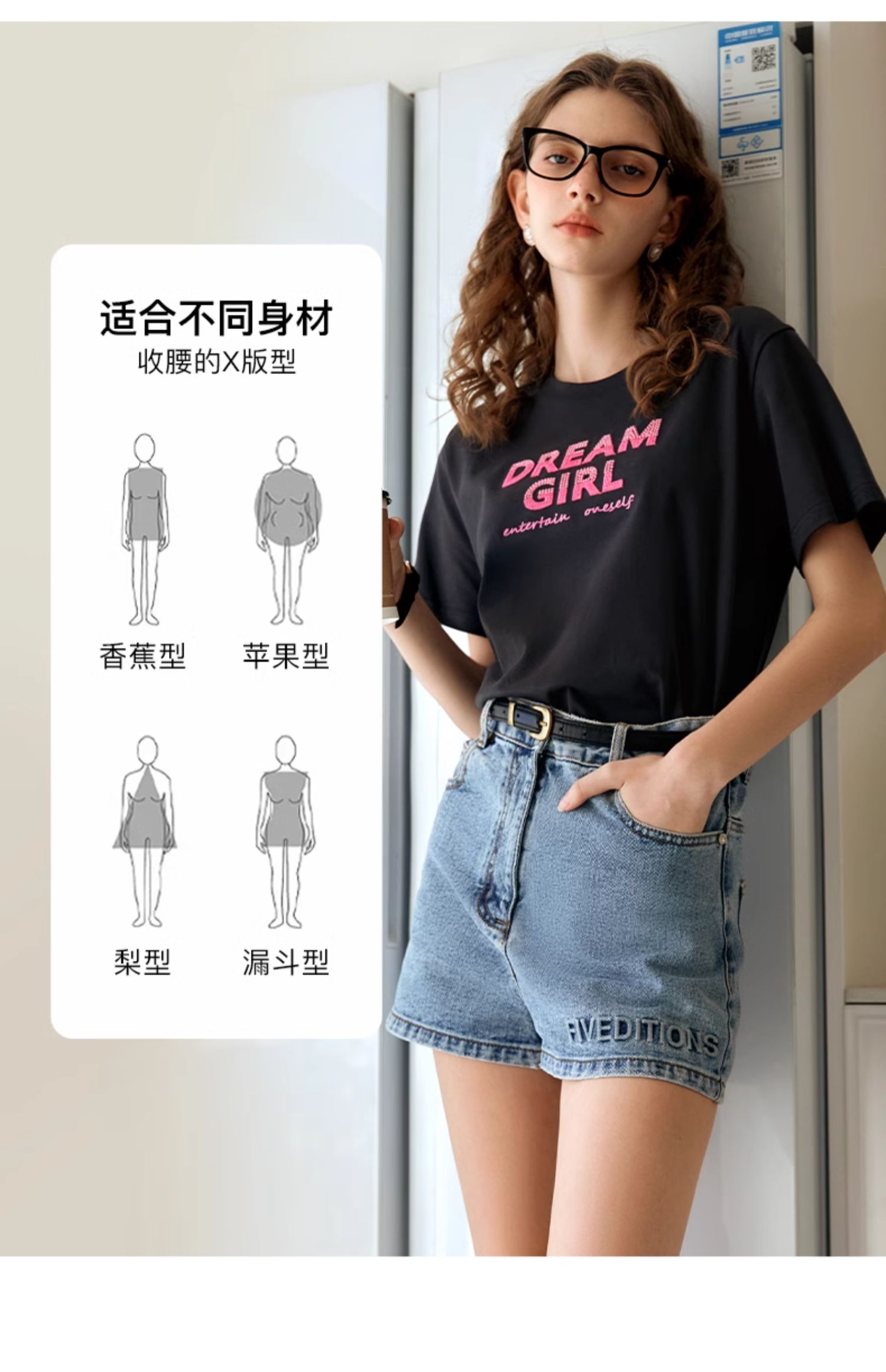 OLrain欧芮儿黑灰色T恤女夏季2024年新款美式复古百搭印花短袖
