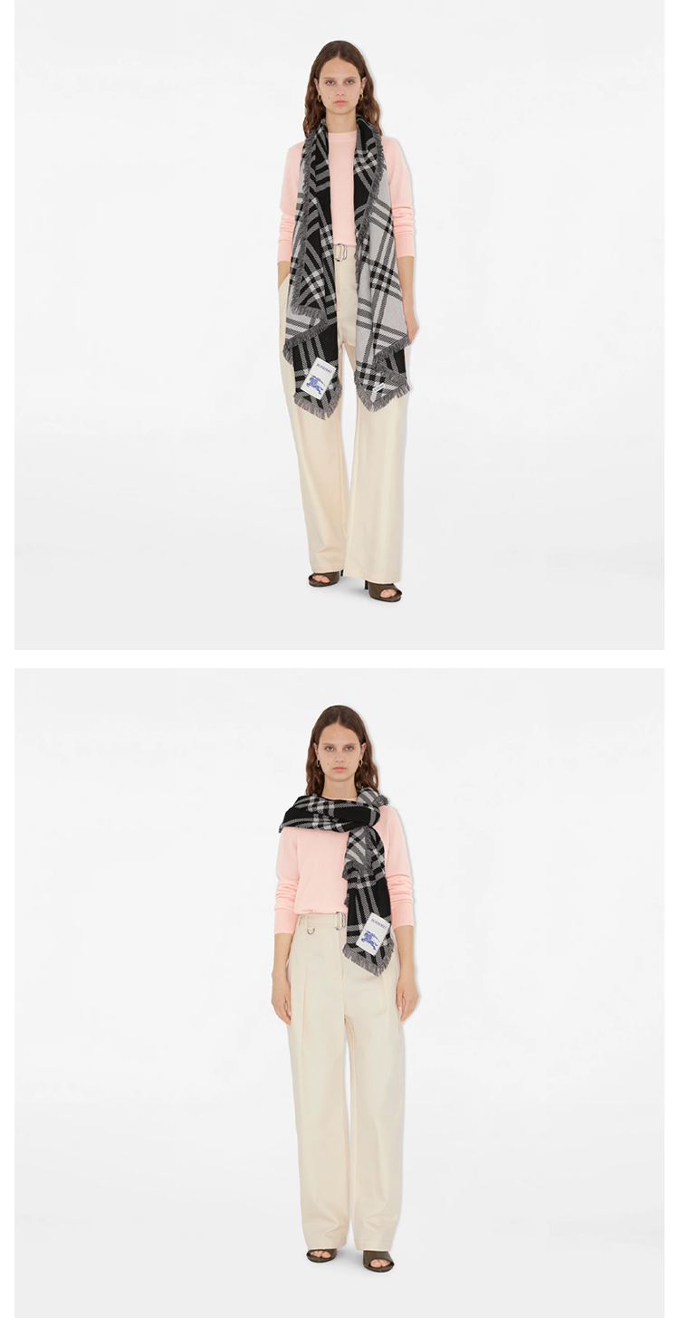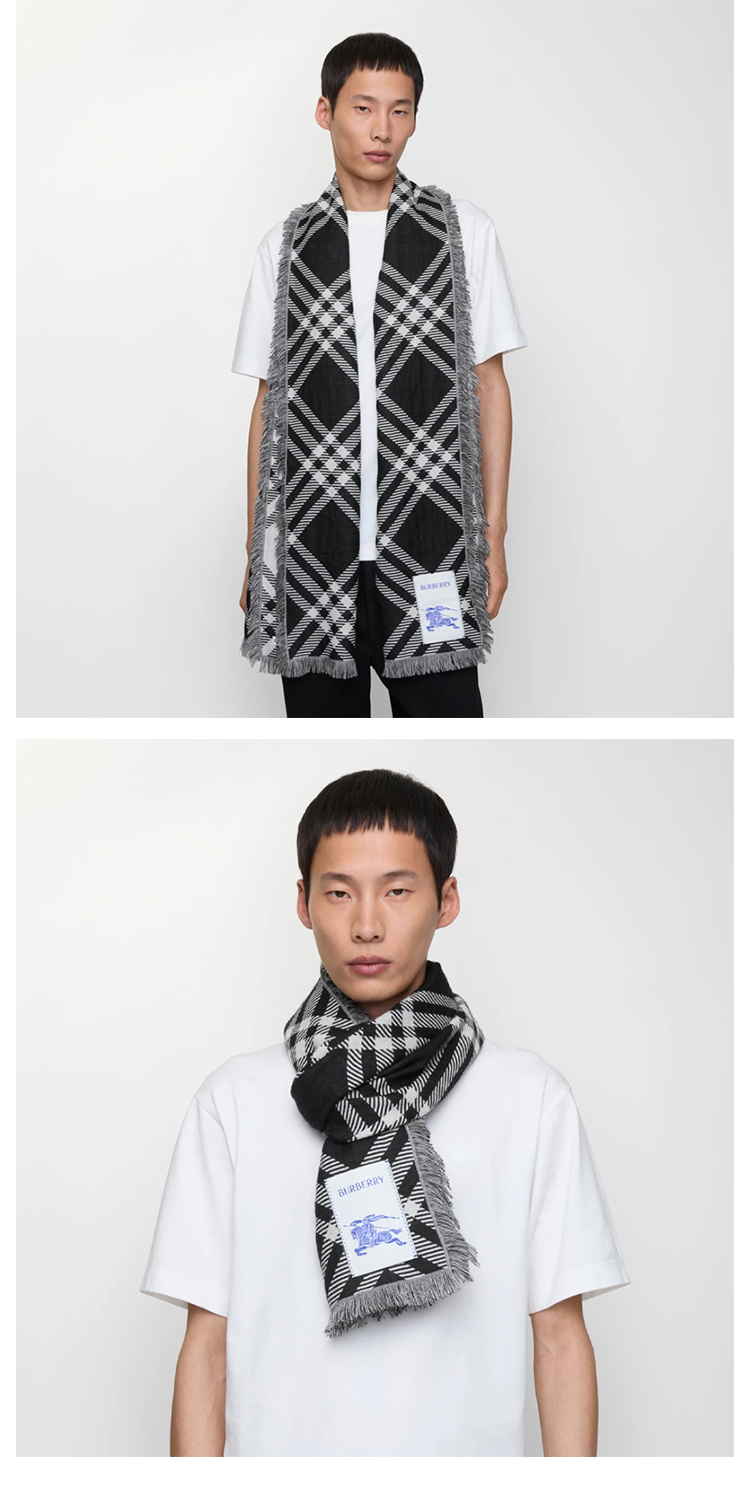 BURBERRY 巴宝莉 中性马术骑士标签宽格纹羊毛真丝围巾 格子 8110162 C1343