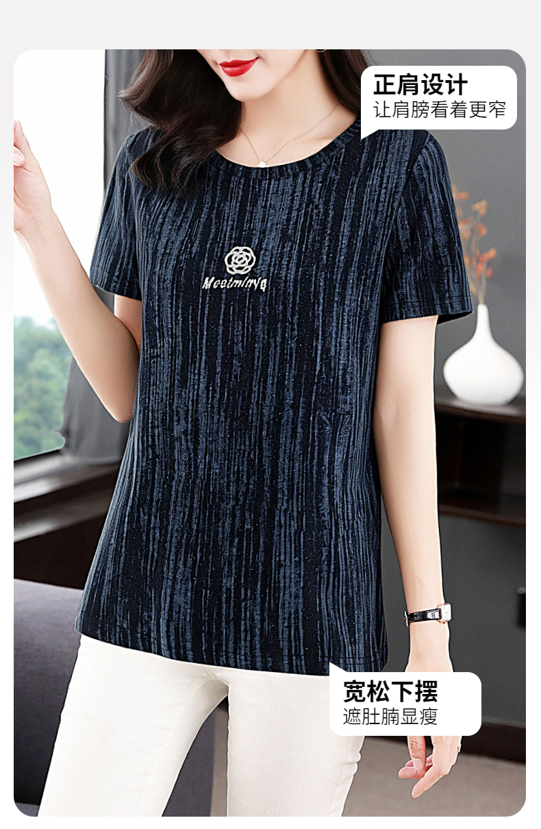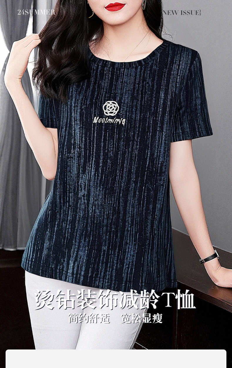 芳妮诗正肩短袖T恤女2026年夏季新款大码休闲体恤衫洋气亮丝上衣