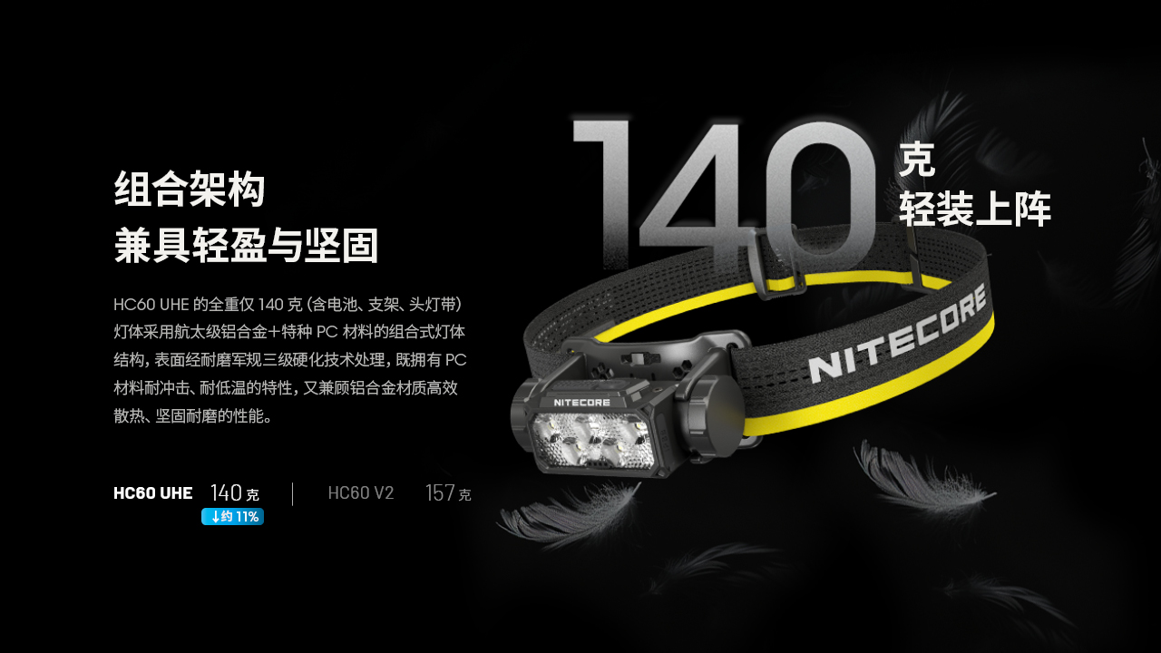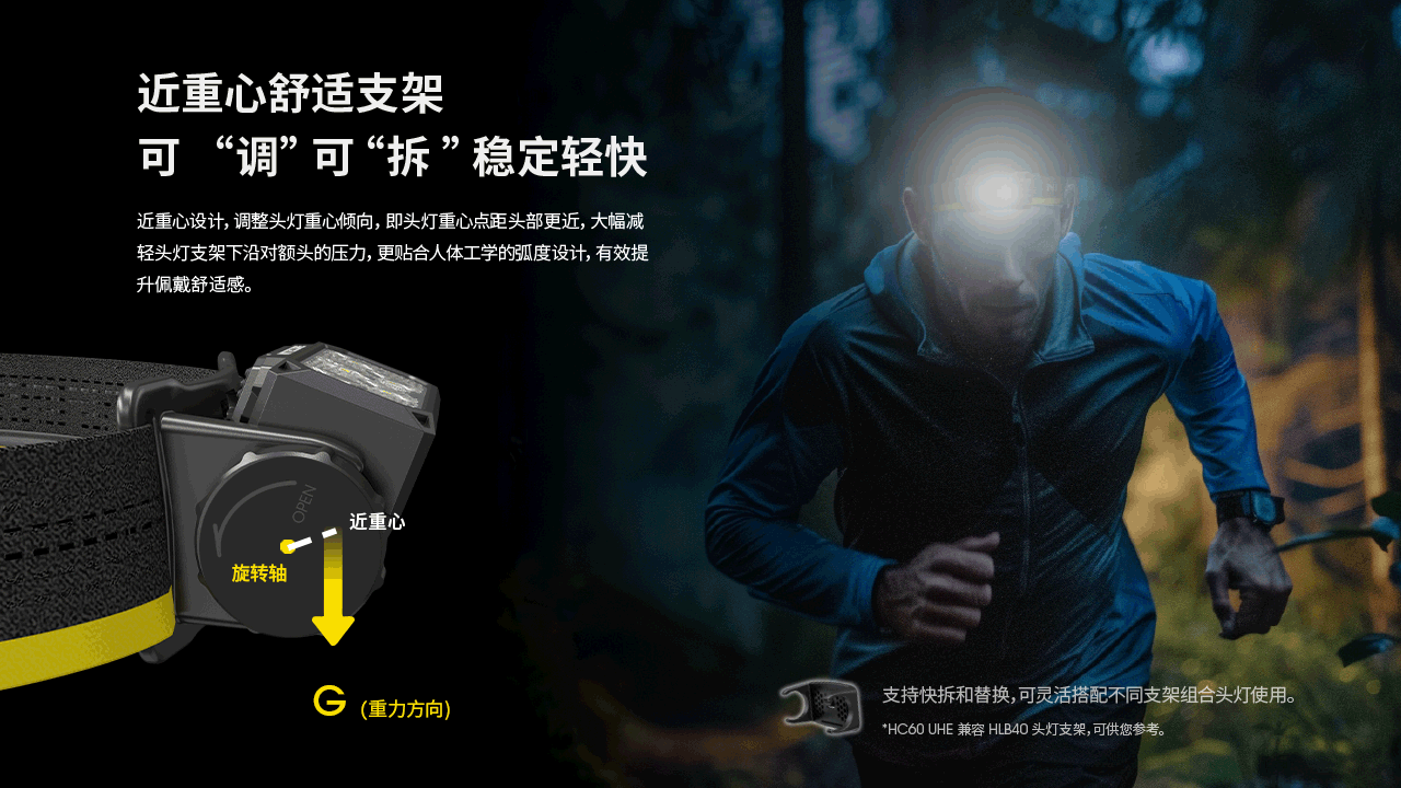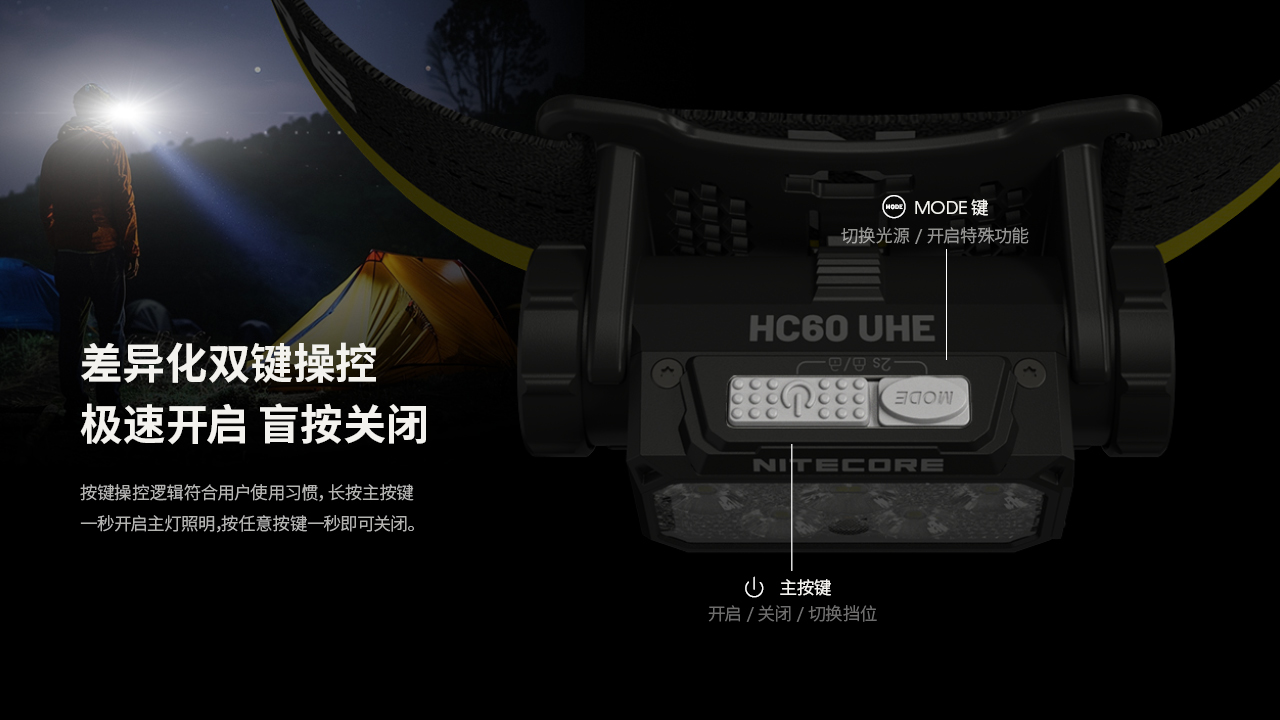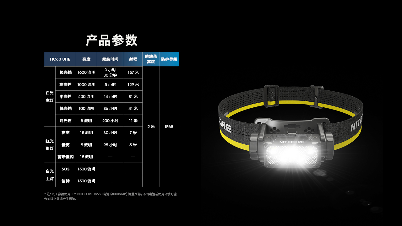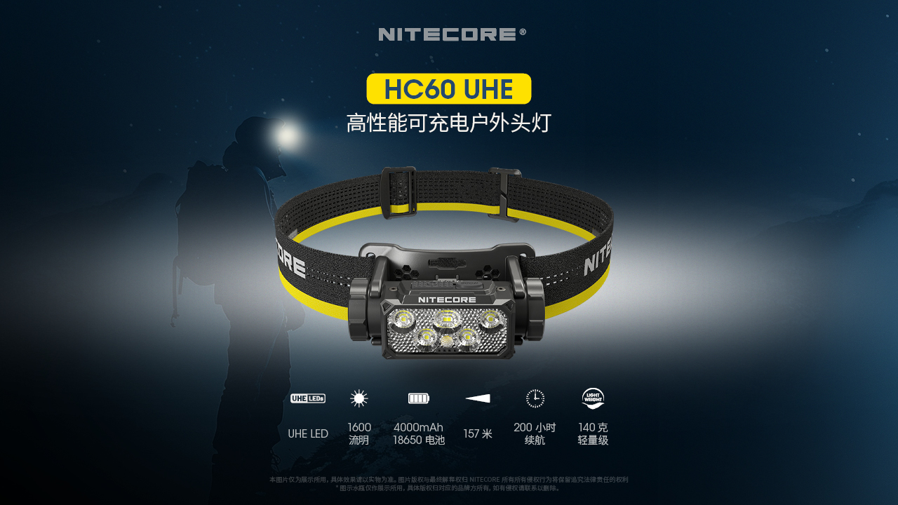 NITECORE奈特科尔HC60 UHE金属可充电双光源18650锂电池头灯
