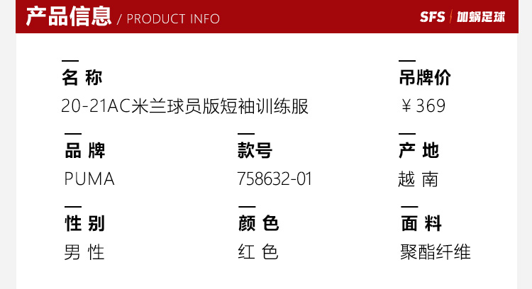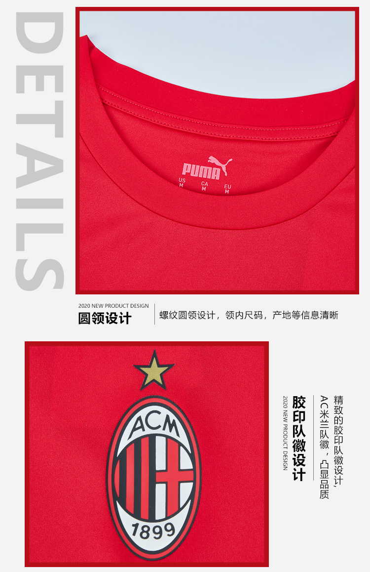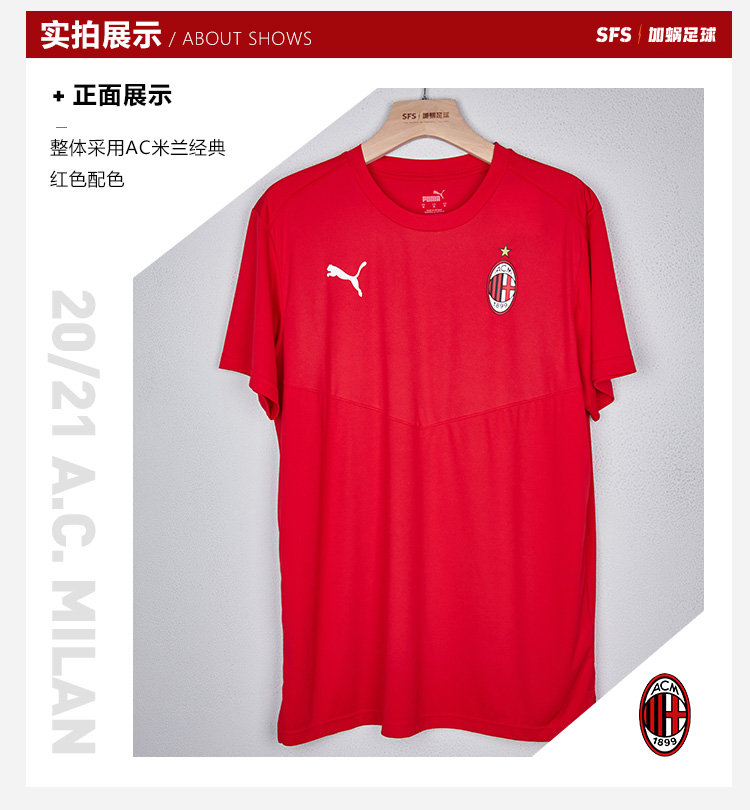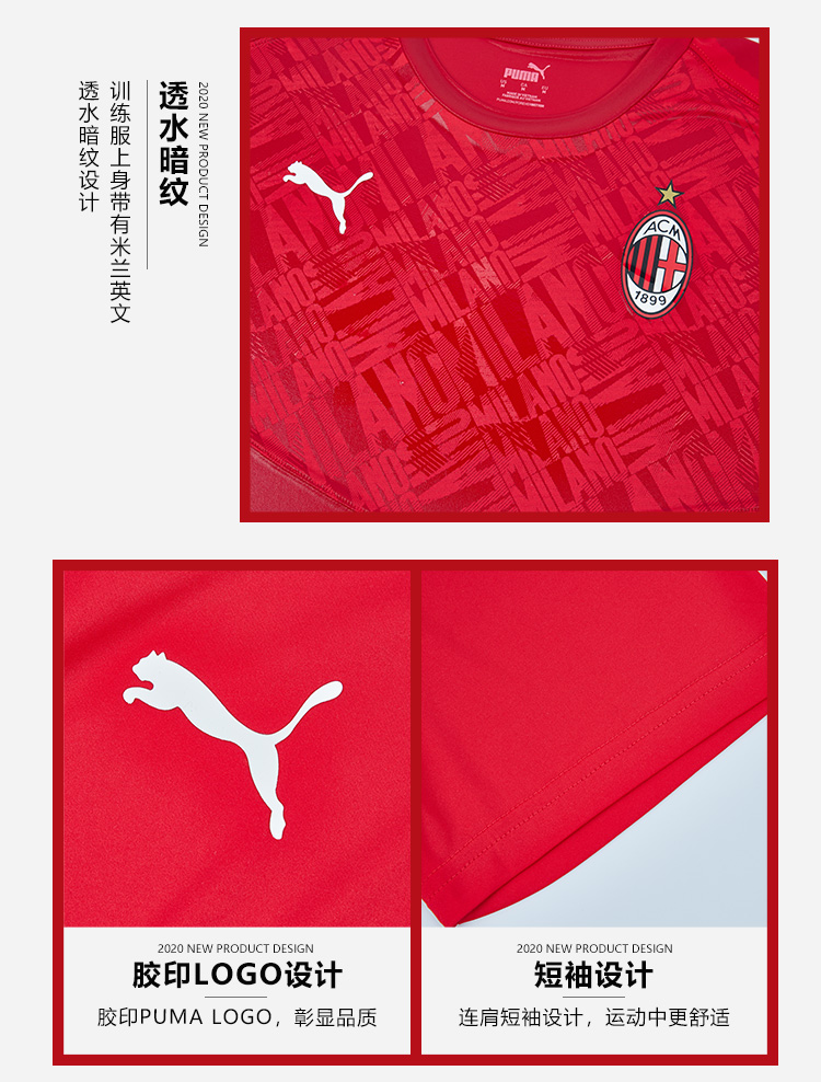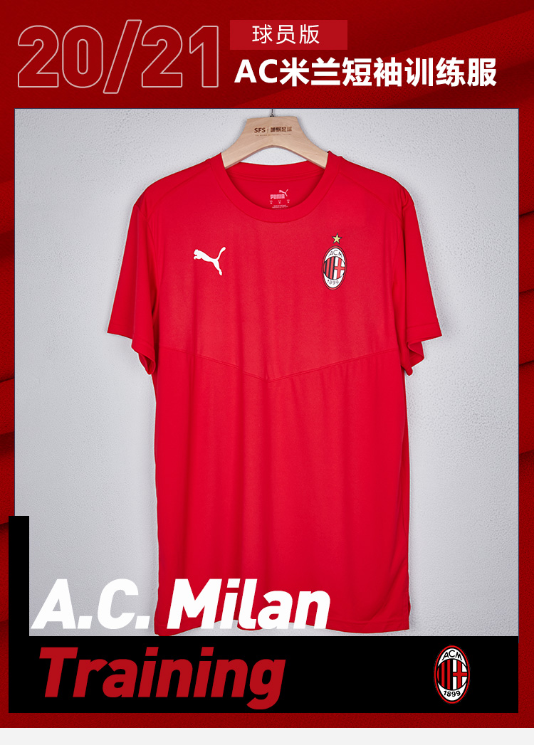 SFS彪马正品20-21AC米兰球员版短袖训练服带透水暗纹758632-01