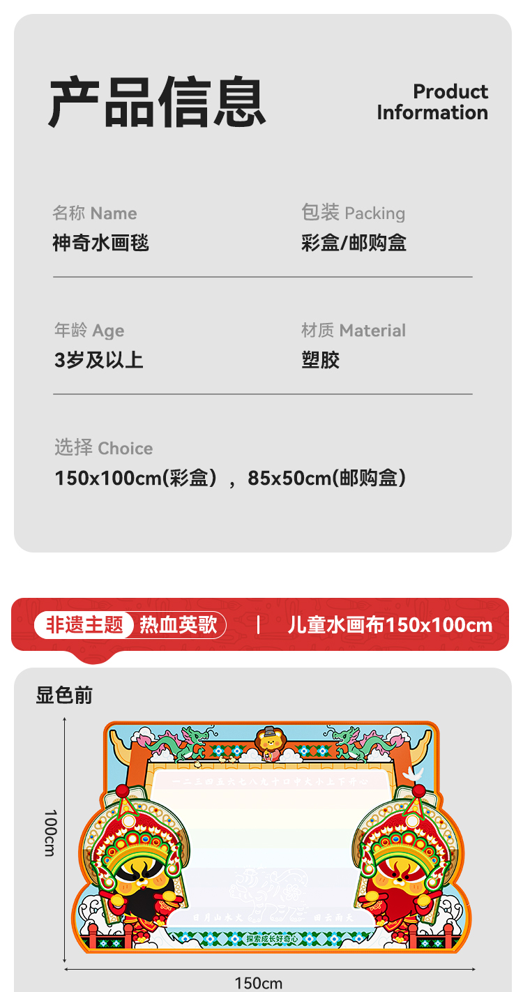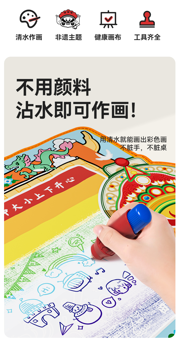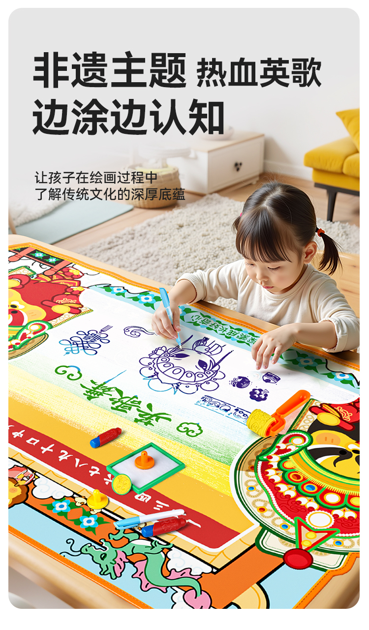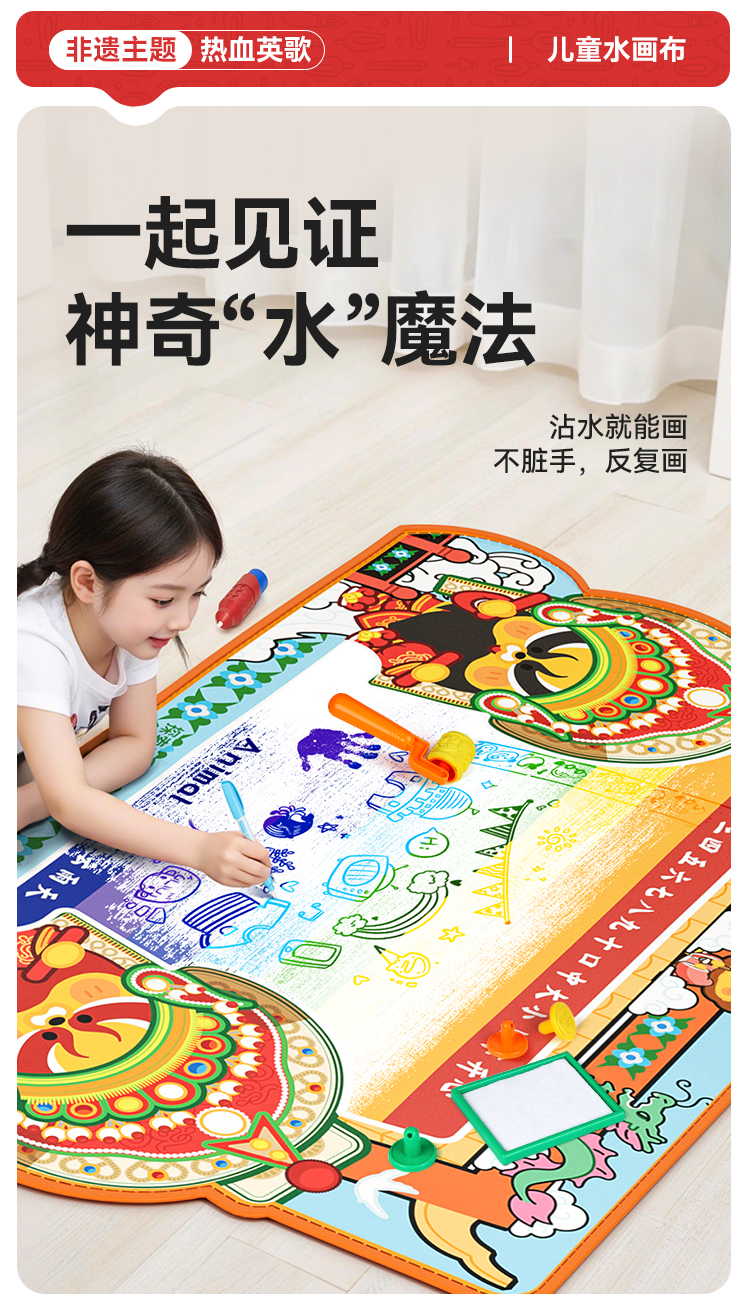 【双十一秒 超大水画布】纽奇正品!1.5米的超大号水画布,春晚演出的非遗英歌舞主题,可印可画可涂鸦,一张满足孩子天马行空的创作~