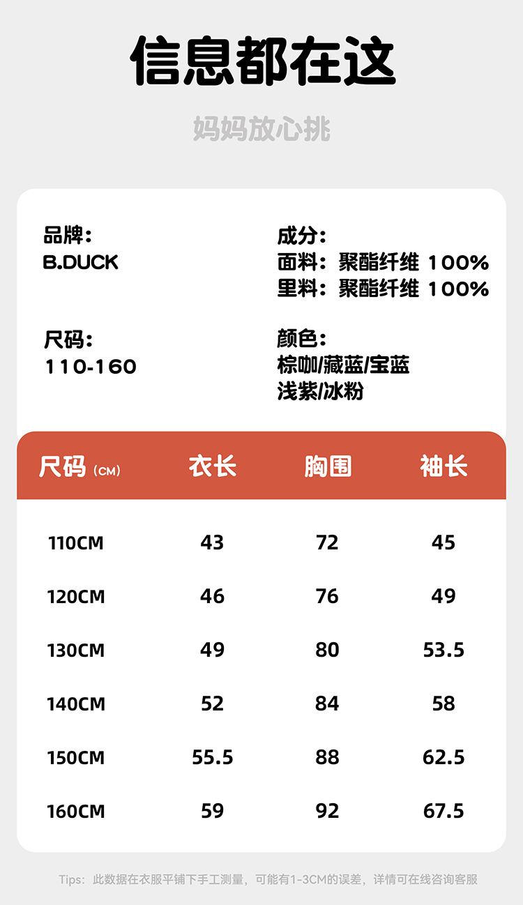 B.Duck小黄鸭童装外套90-140 BF1711082