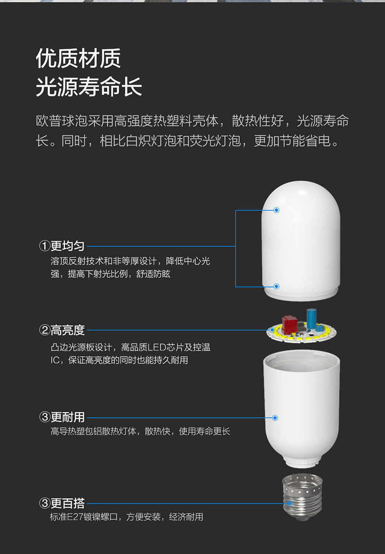 欧普(OPPLE)无影灯泡高显色节能家用大功率超亮E27螺口光源