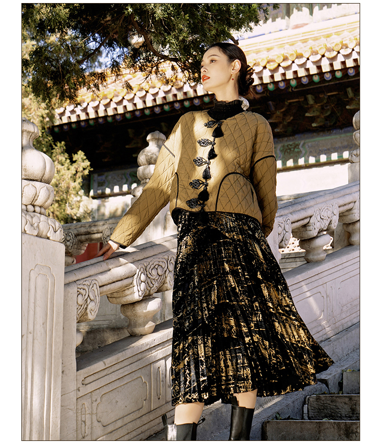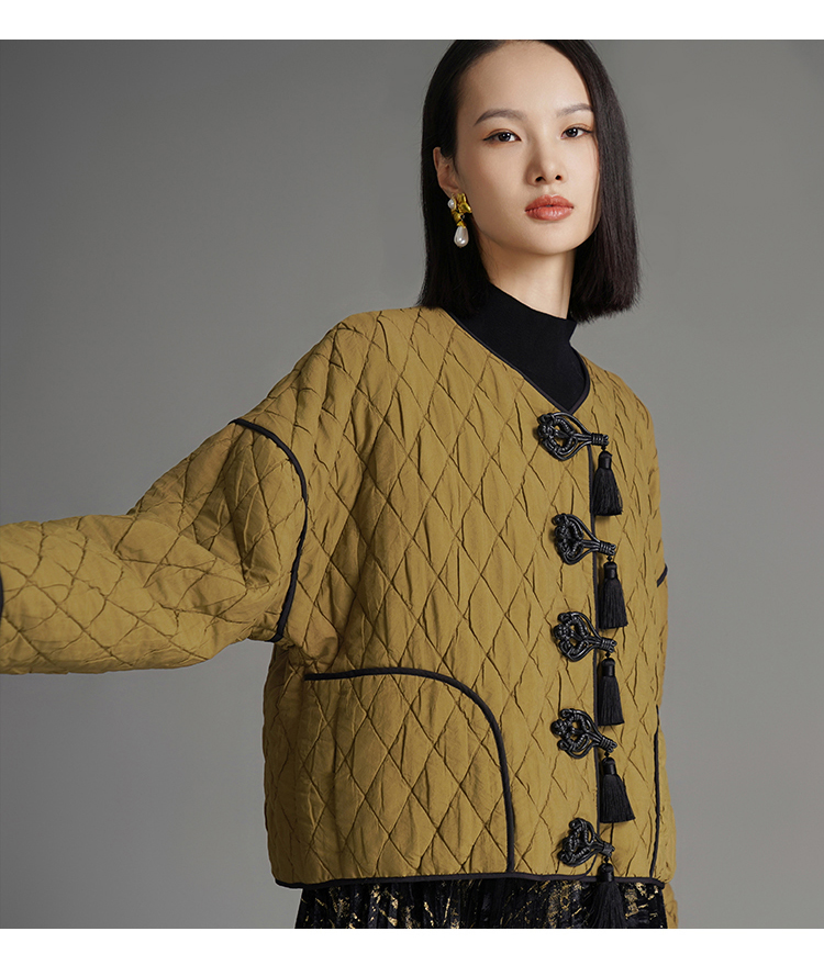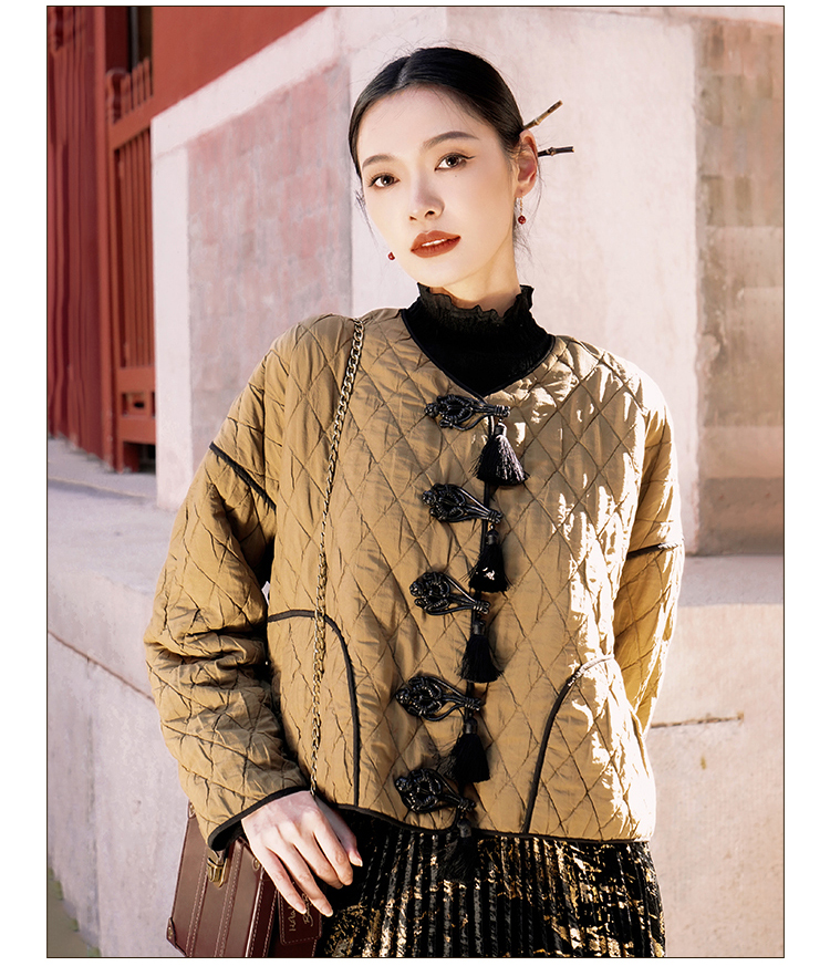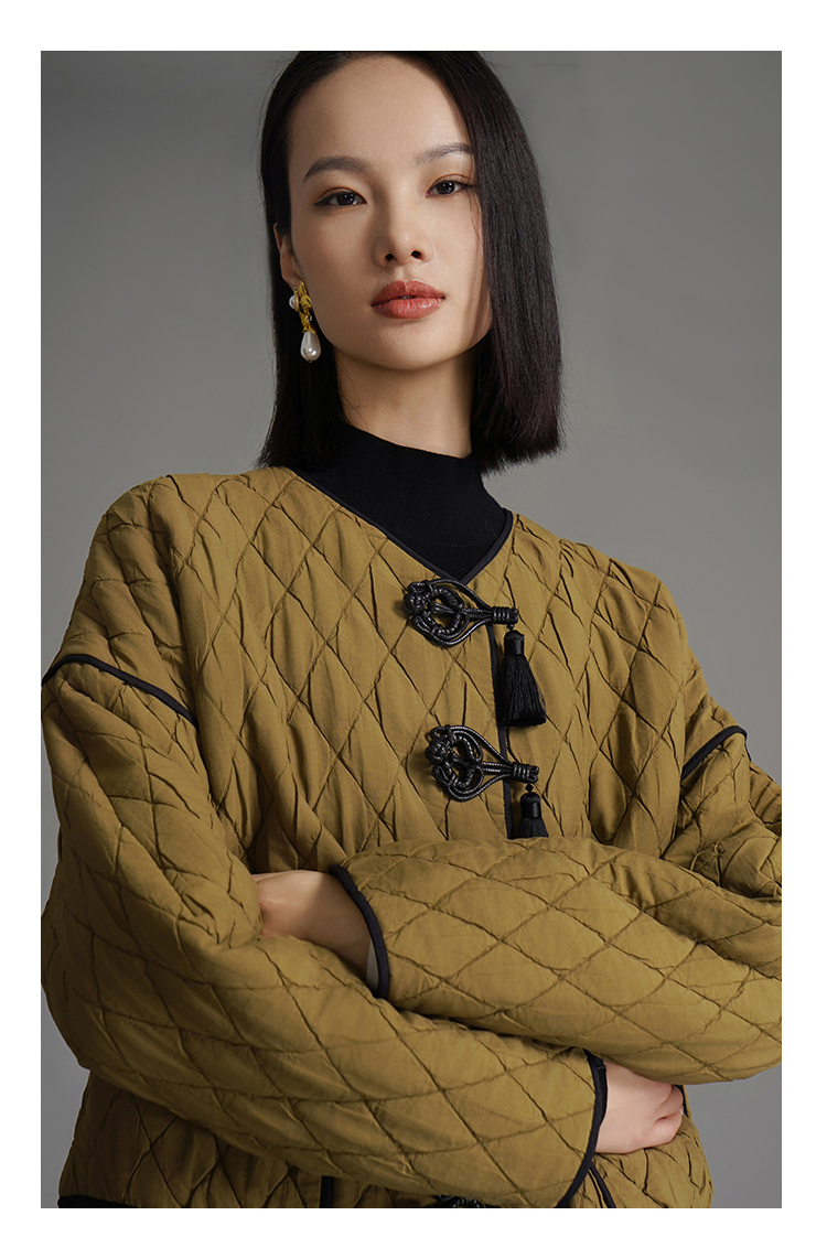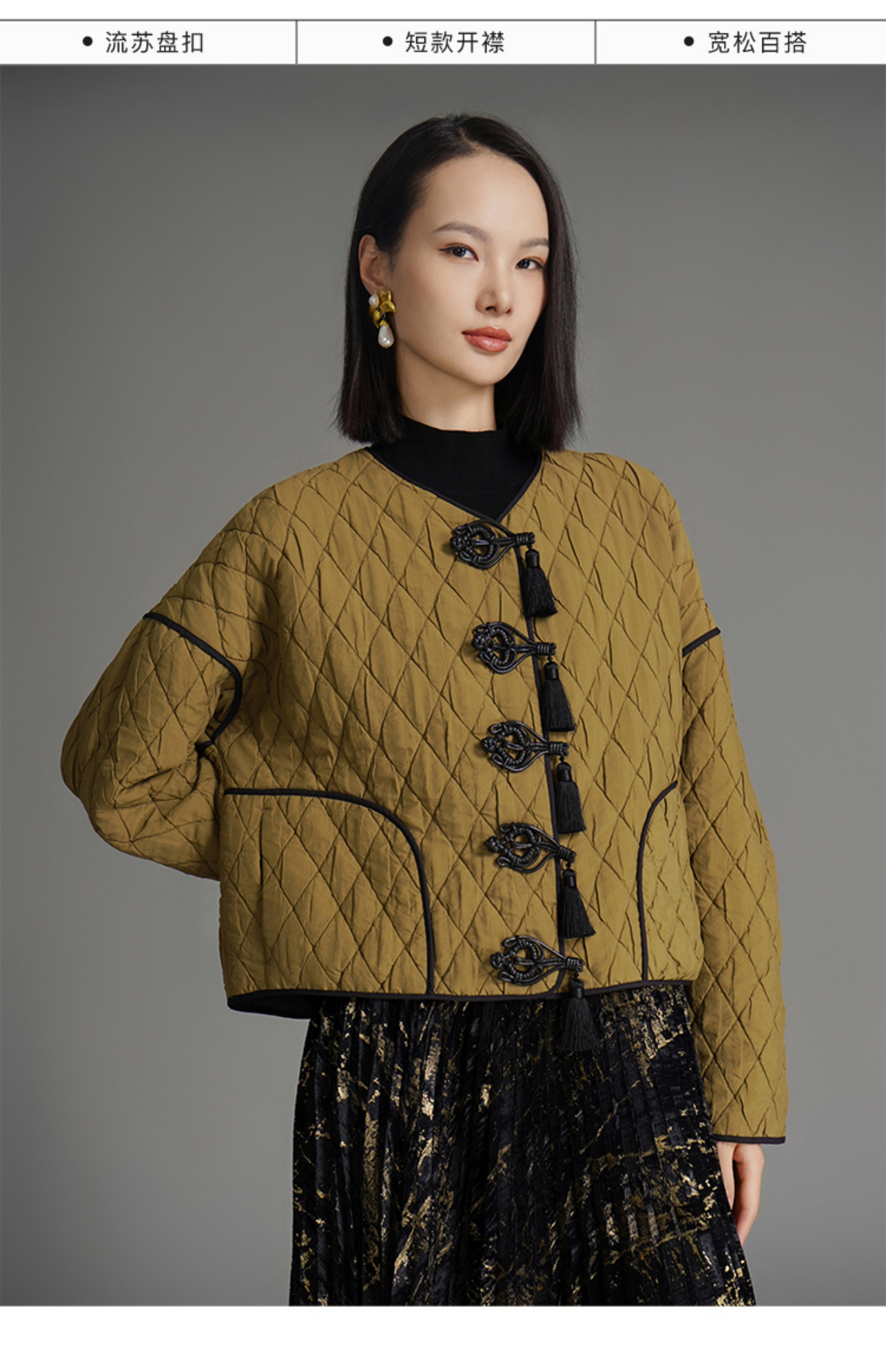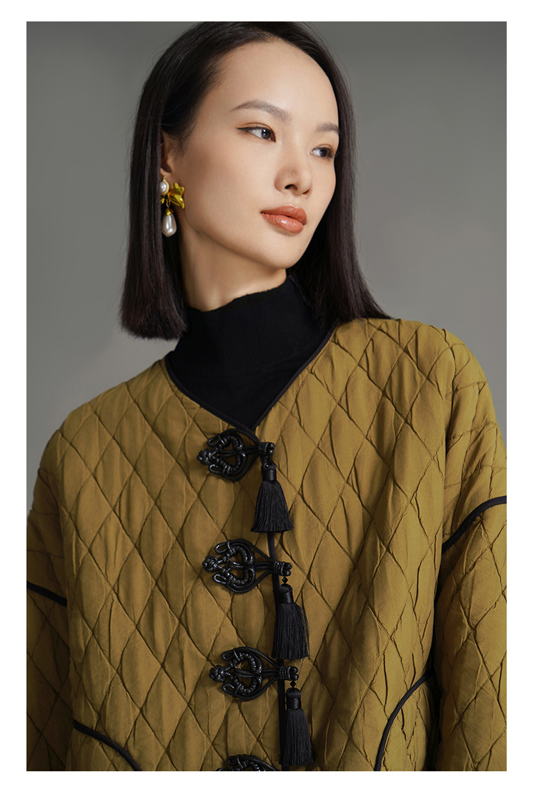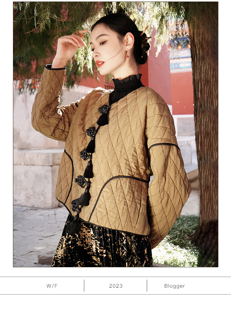 RSG郭培线上成衣国风盘扣流苏绗缝冬季薄棉服新中式美拉德外套