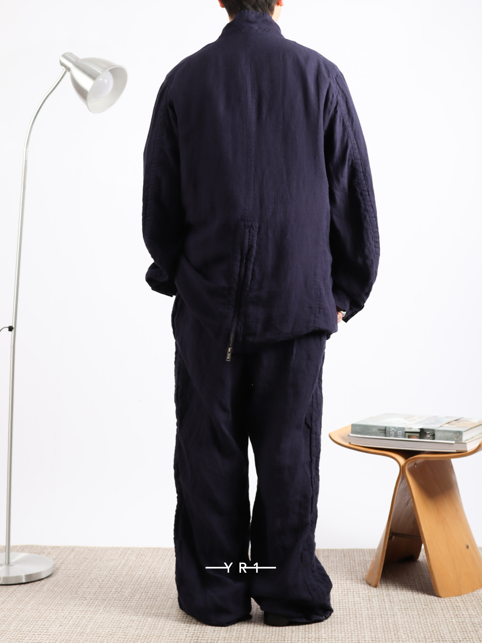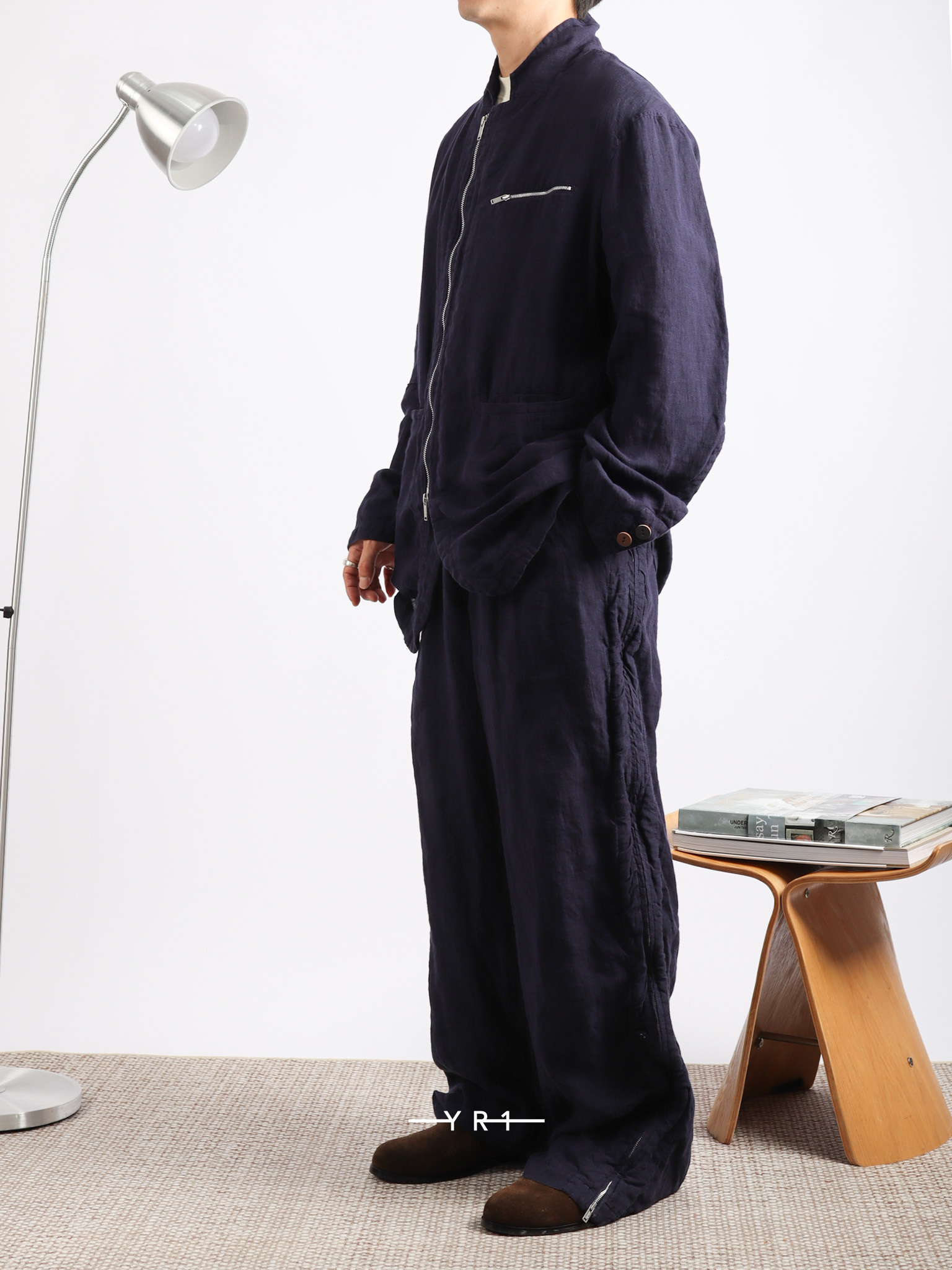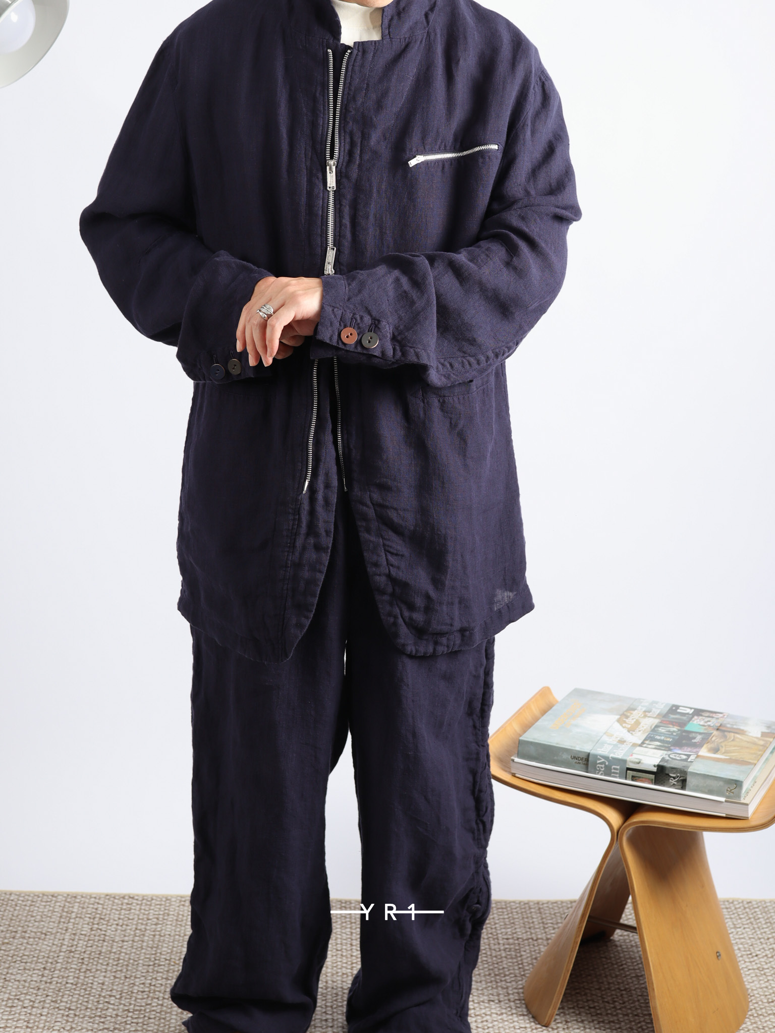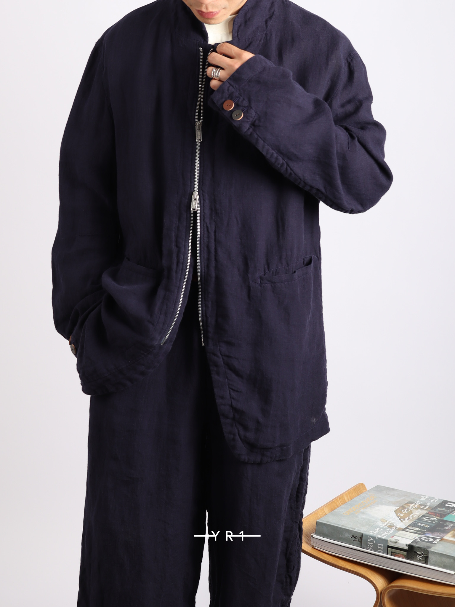 深蓝色自然纹理拉链夹克