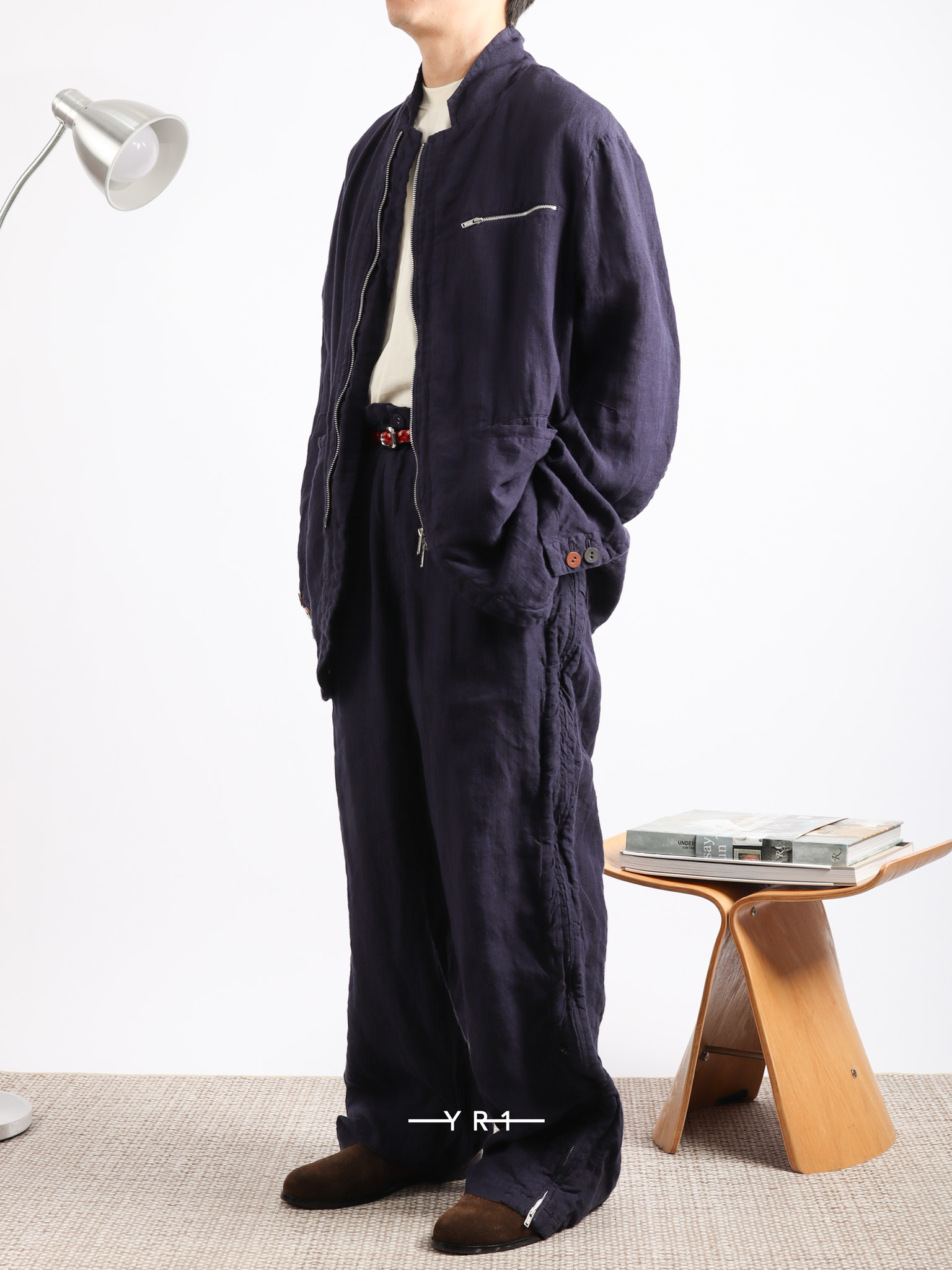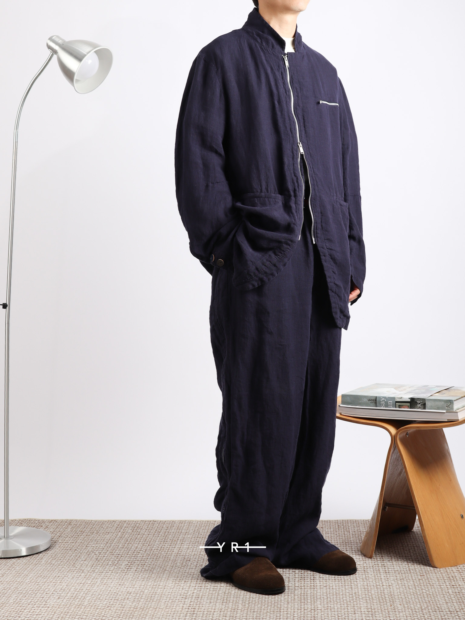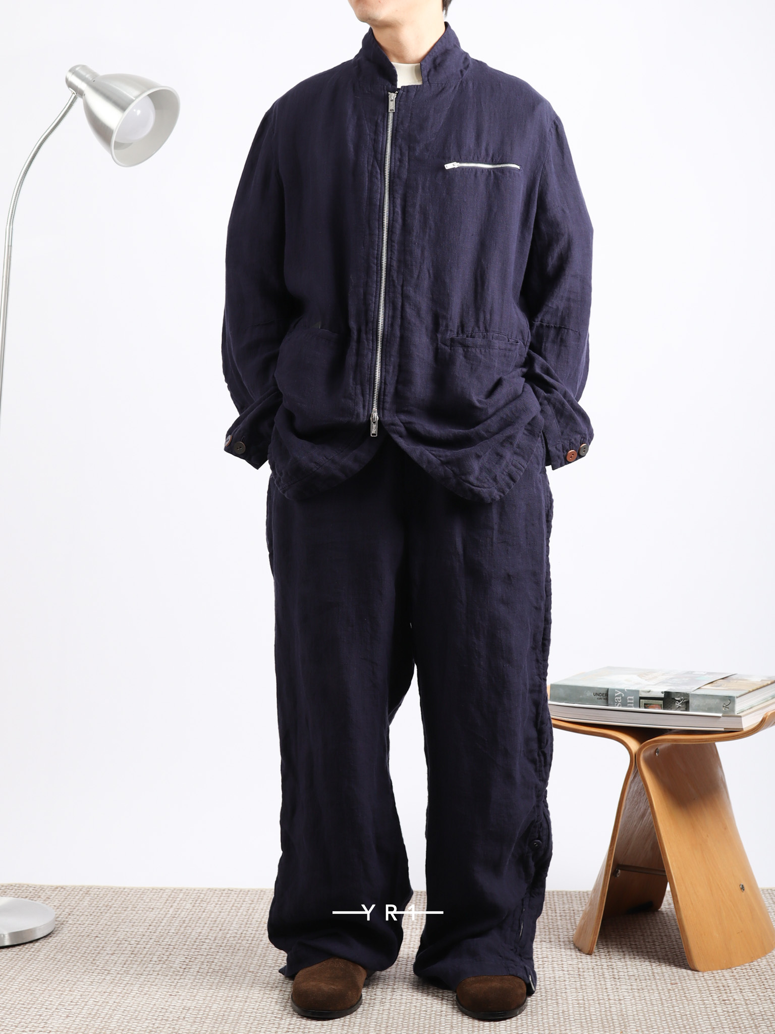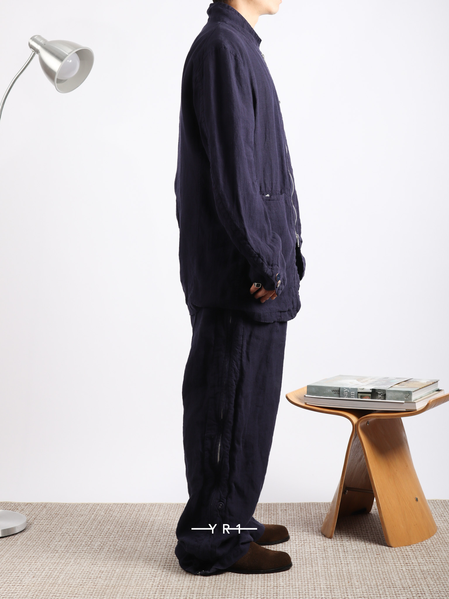 深蓝色自然纹理拉链夹克