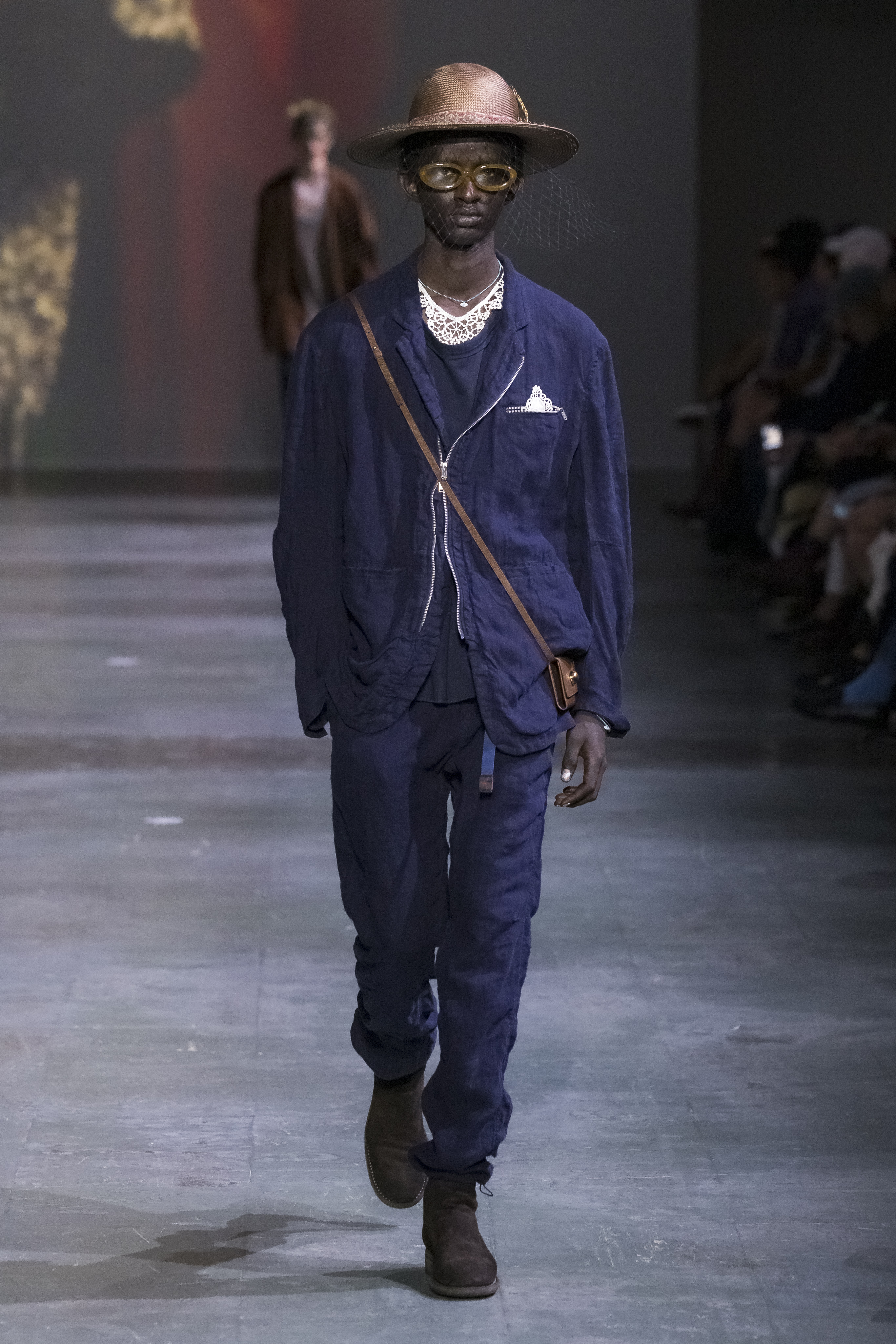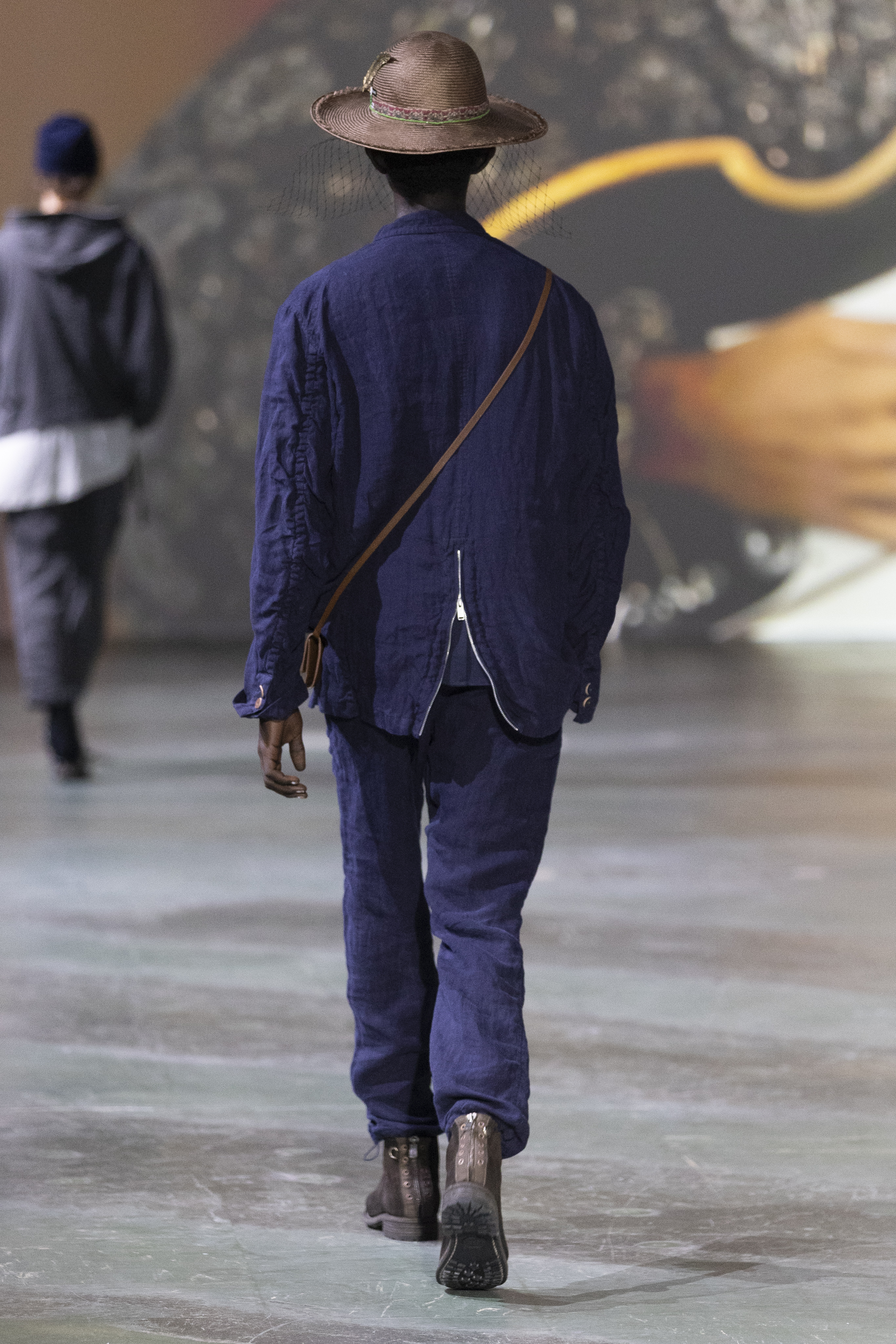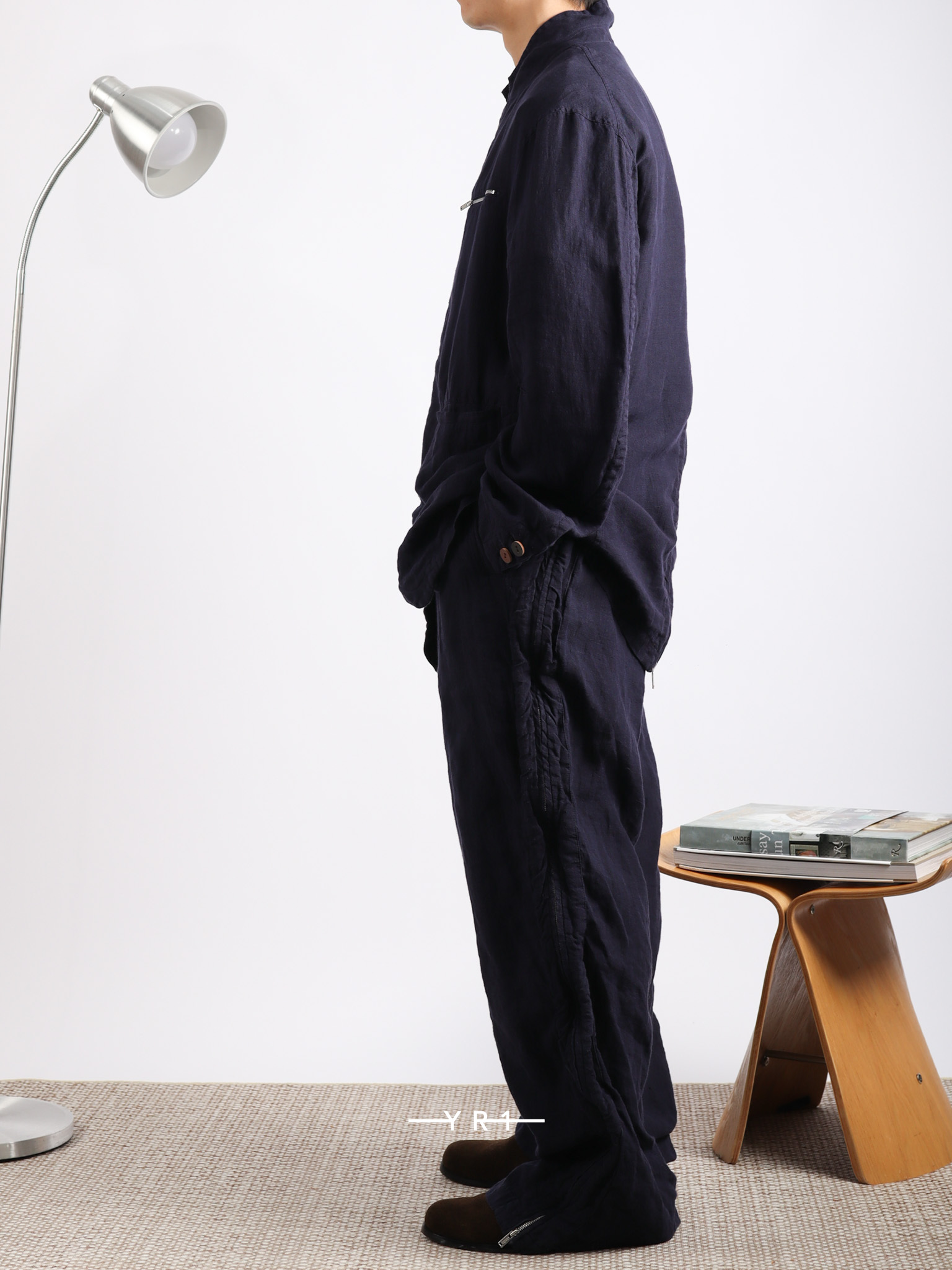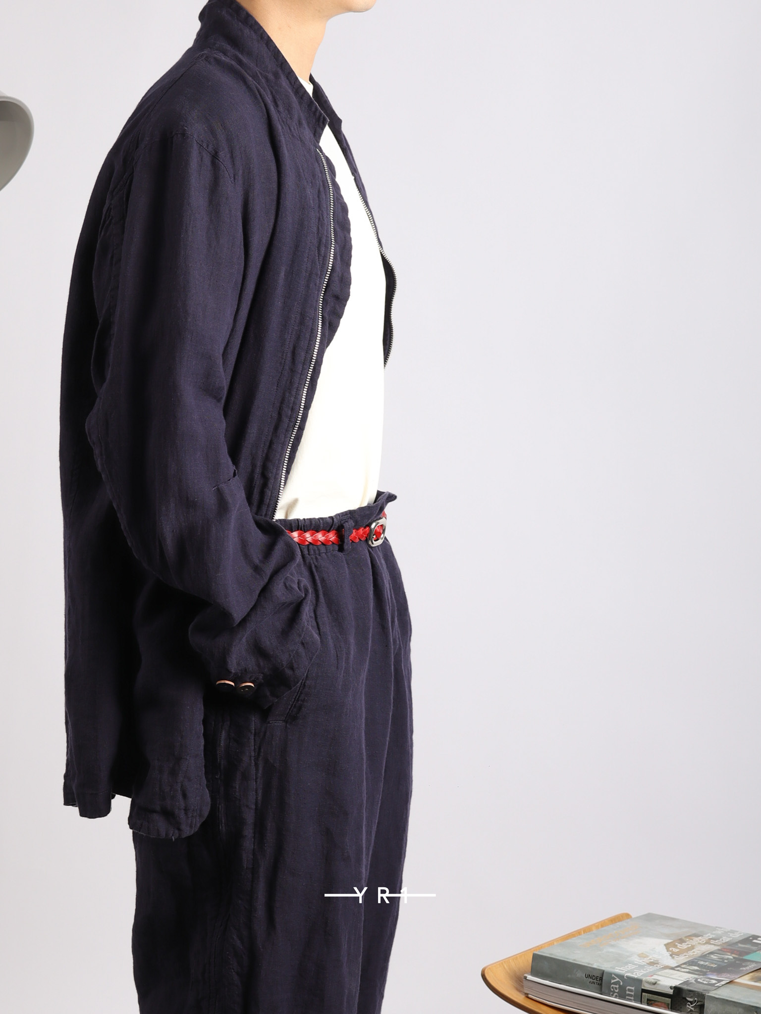 深蓝色自然纹理拉链夹克
