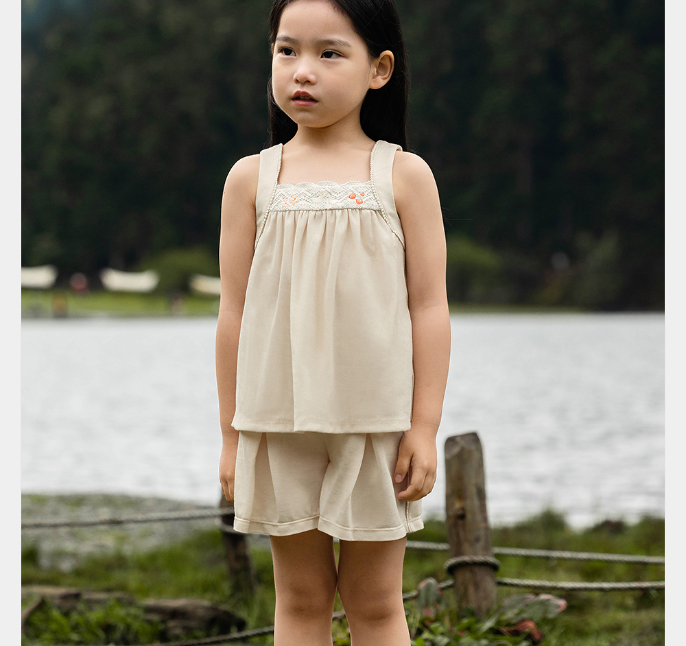 英氏童装夏季背心可爱女童套装透气夏季驱蚊上衣裤子YRABJ2R005A