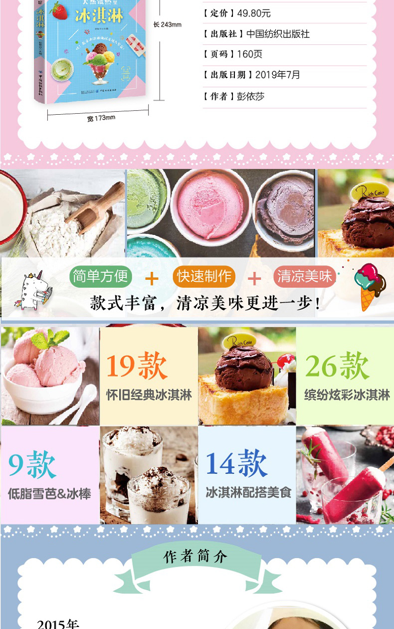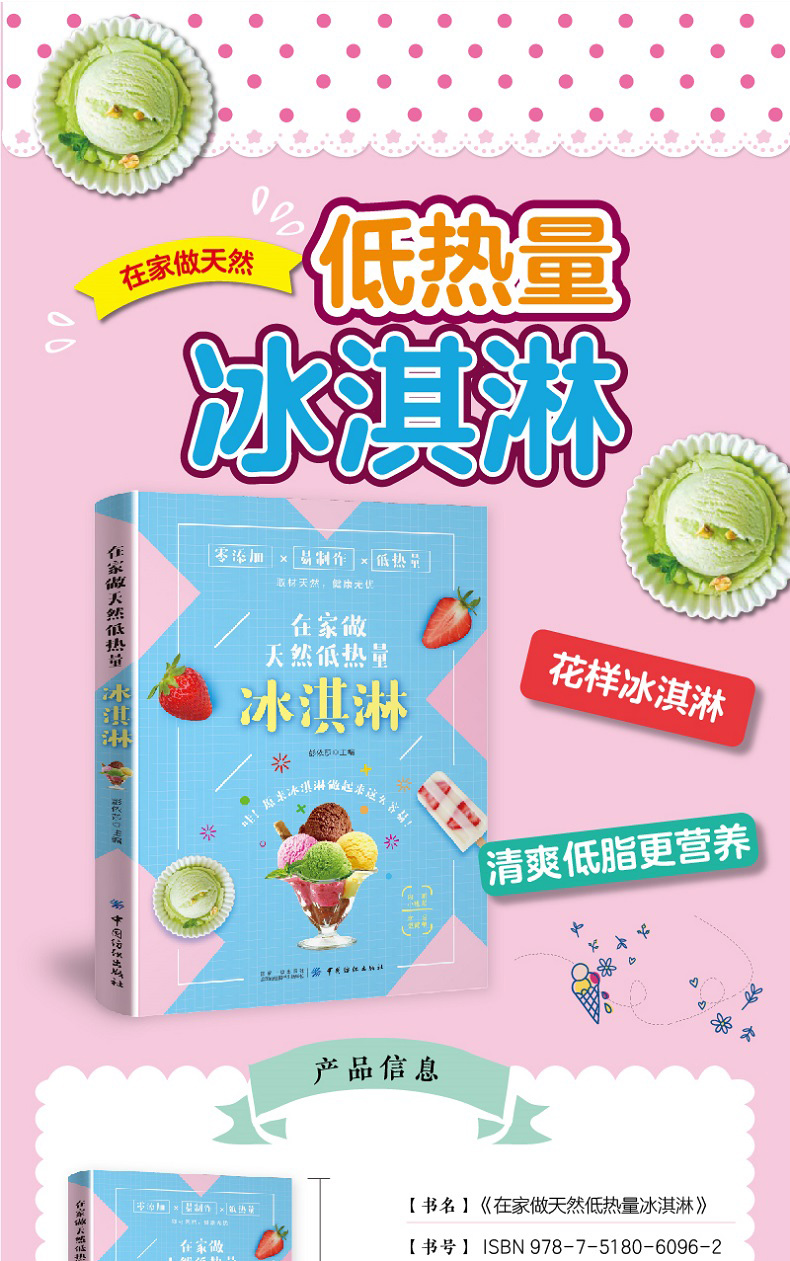 【正版新书】在家做天然低热量冰淇淋 夏季冷饮冰激凌雪糕制作大全书籍 水果巧克力低热量冷饮冰棒diy自制步骤详解工具书 纺织出版