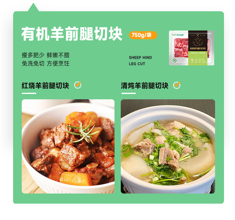 【骨小肉多 怎么做都好吃】牧北鲜锡盟草原散养苏尼特羔羊肉有机前腿切块750g
