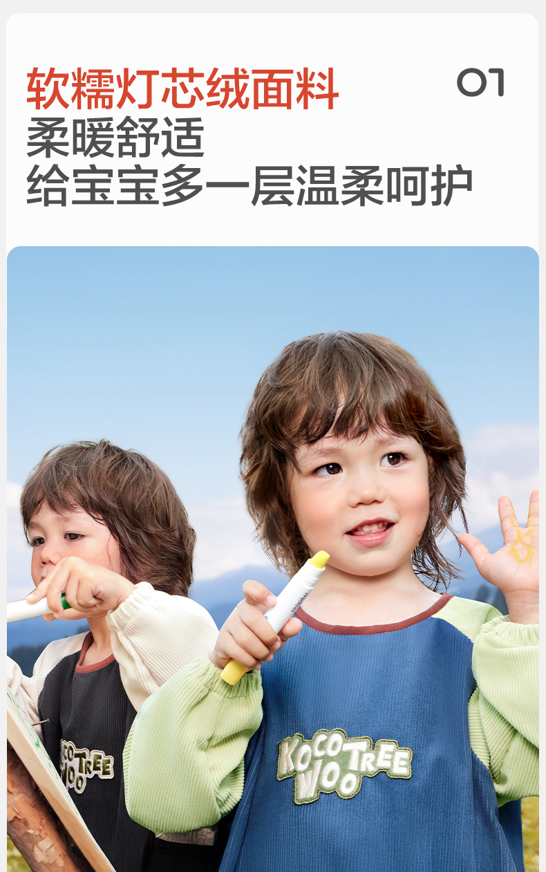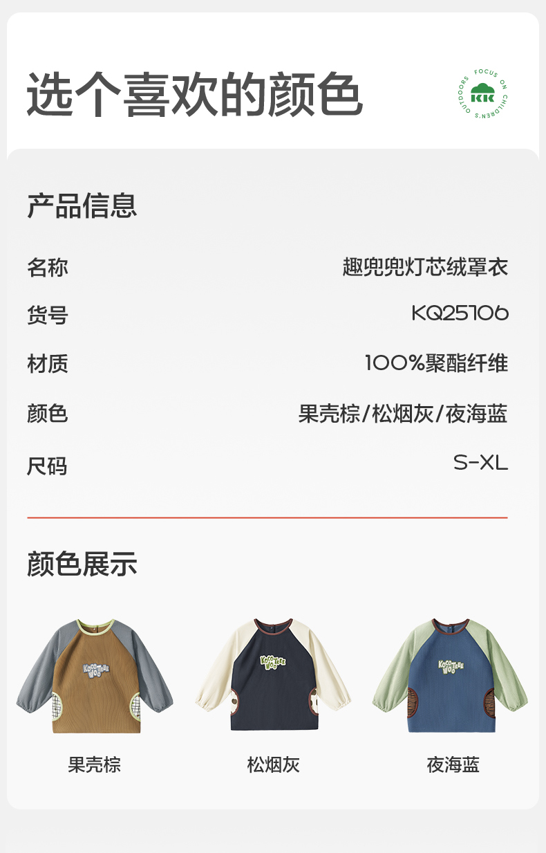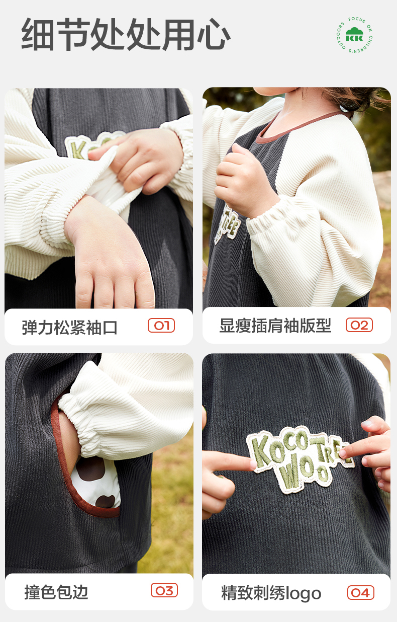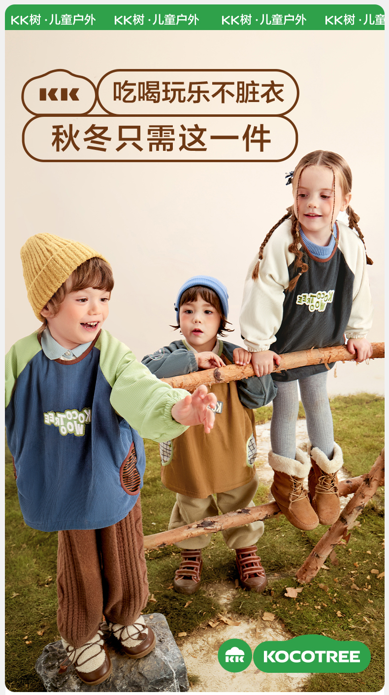【云优选】KK树秋冬宝宝罩衣儿童外穿男女童防水防脏幼儿围裙灯芯绒反穿衣趣兜兜灯芯绒罩衣