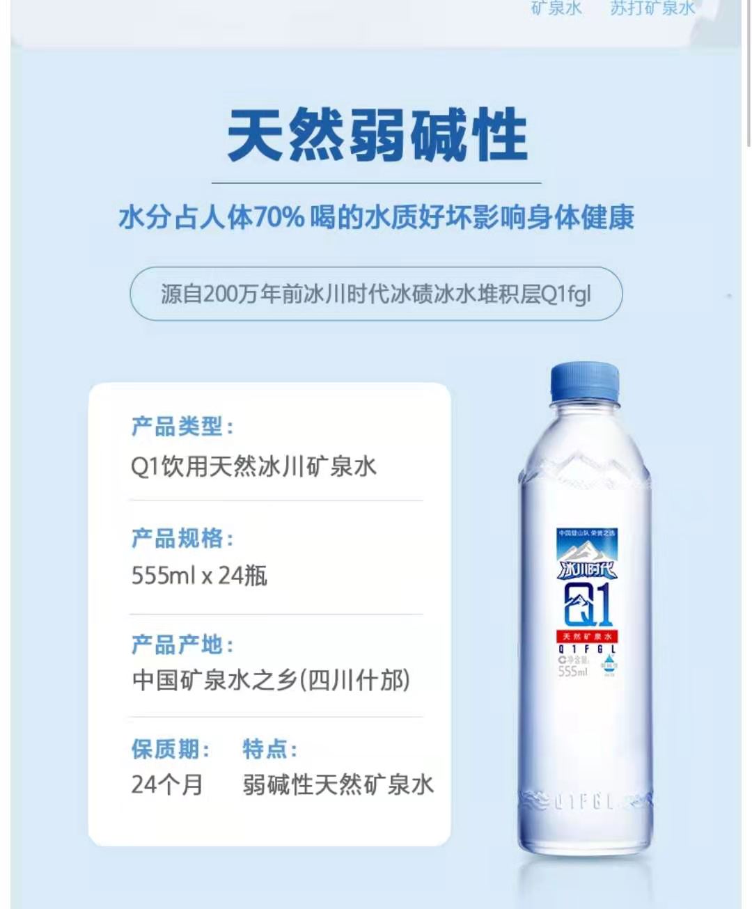 【冰川时代 Q1矿泉水-555ml/瓶】24瓶*555ml 买5件送1件