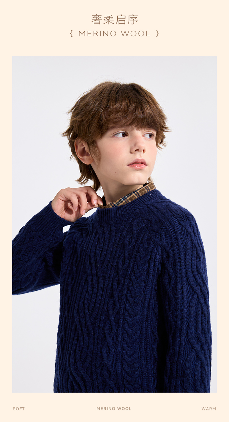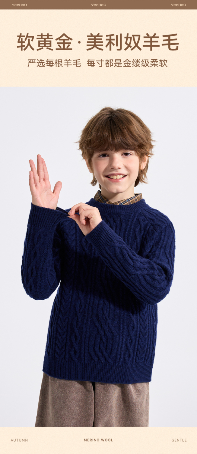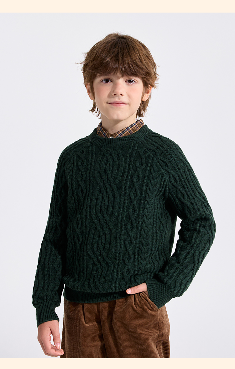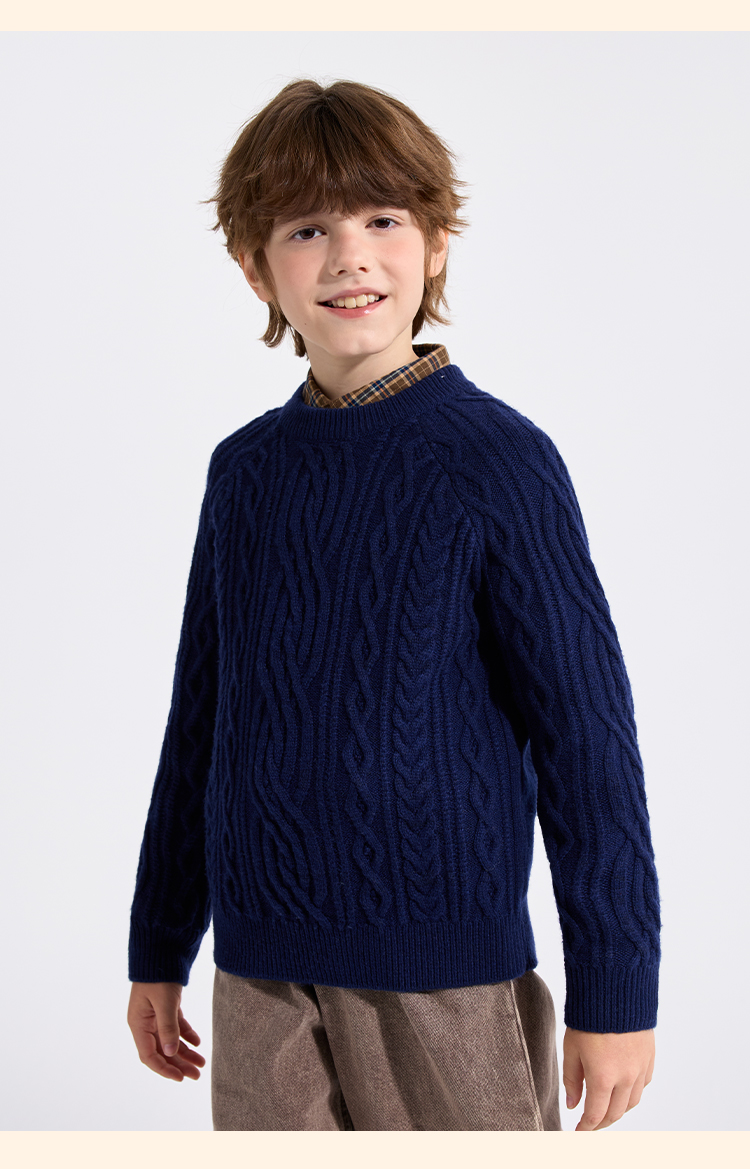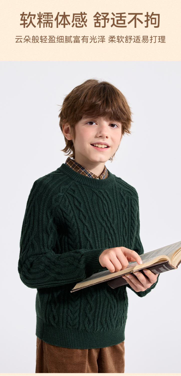 【英氏】【复古绞花羊毛衫】【110-175】男童含羊毛针织衫儿童毛衣