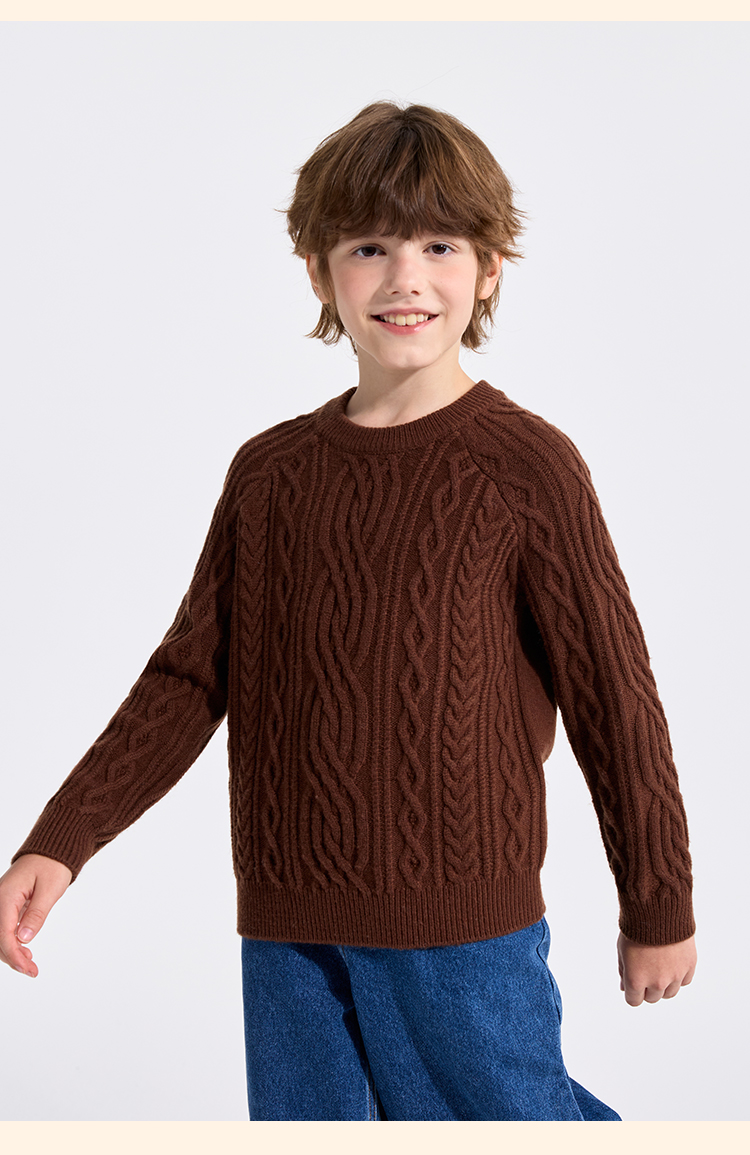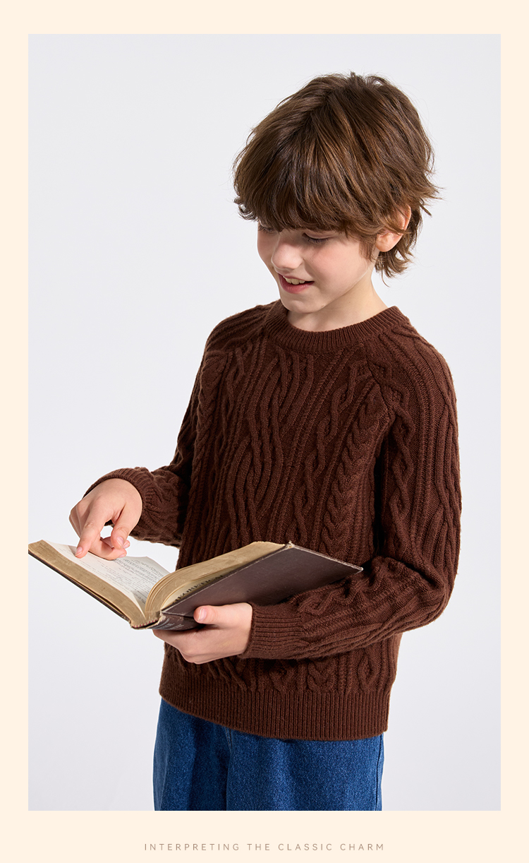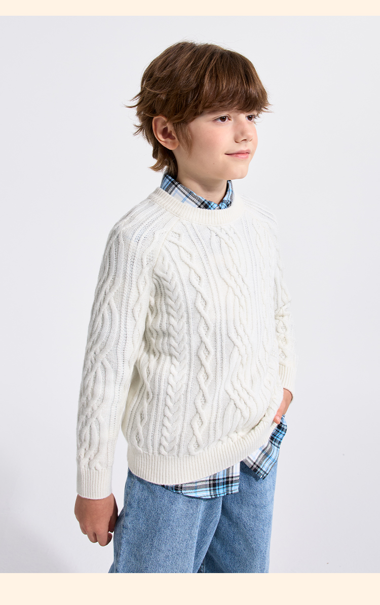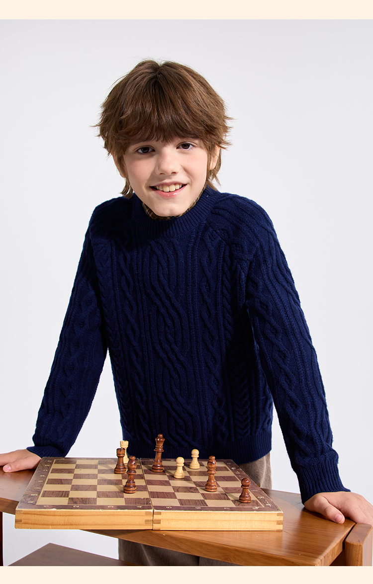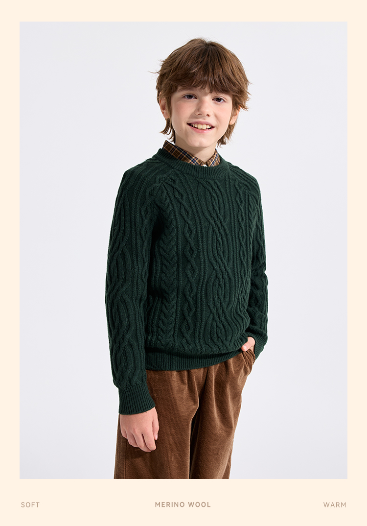 【英氏】【复古绞花羊毛衫】【110-175】男童含羊毛针织衫儿童毛衣