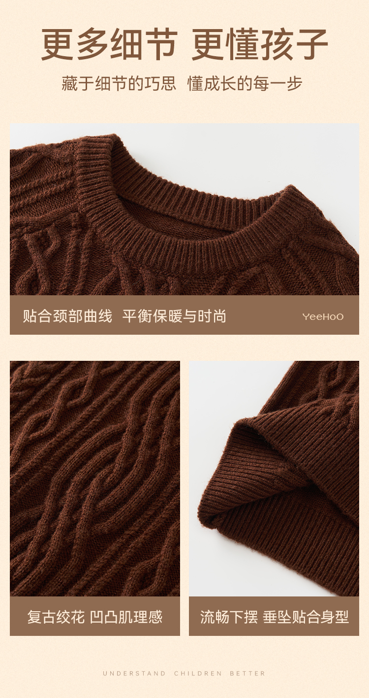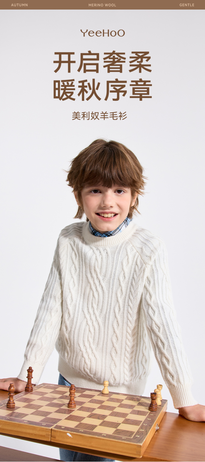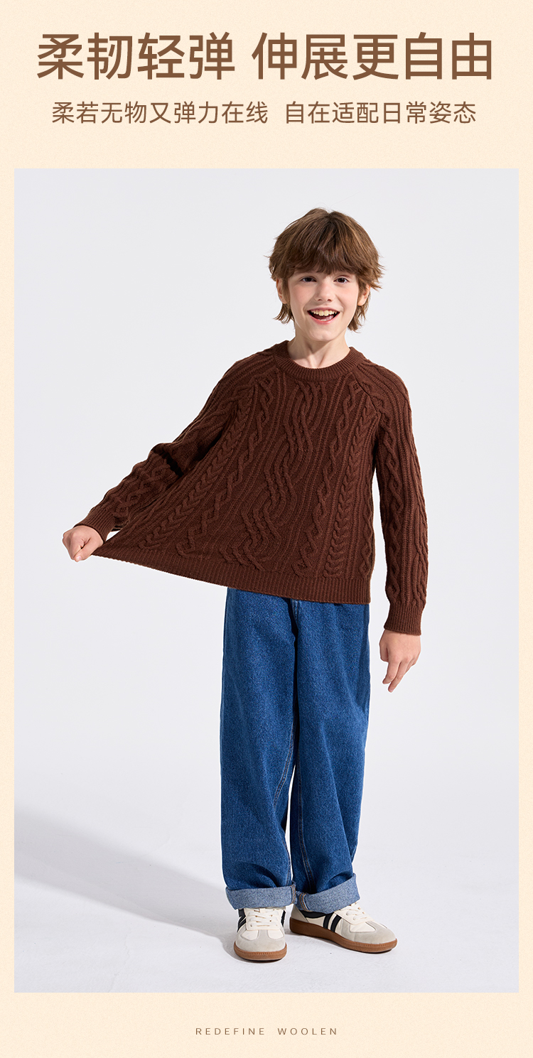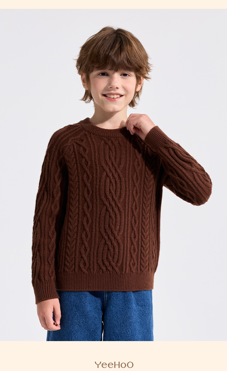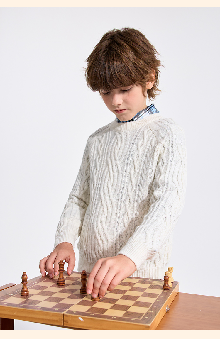 【英氏】【复古绞花羊毛衫】【110-175】男童含羊毛针织衫儿童毛衣