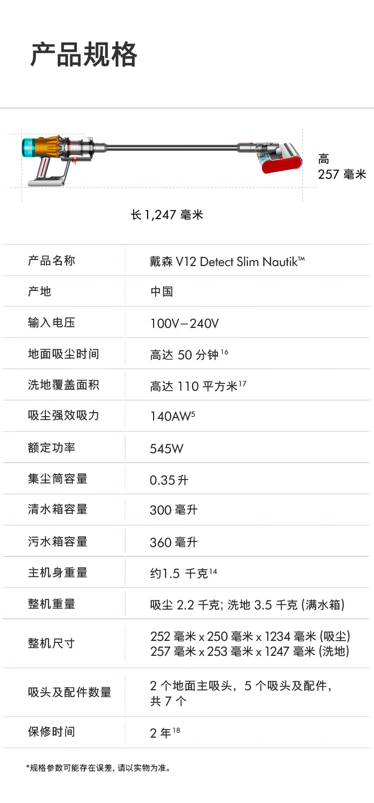 戴森(DYSON)V12 Detect Slim Nautik 轻量吸尘洗地机吸尘器