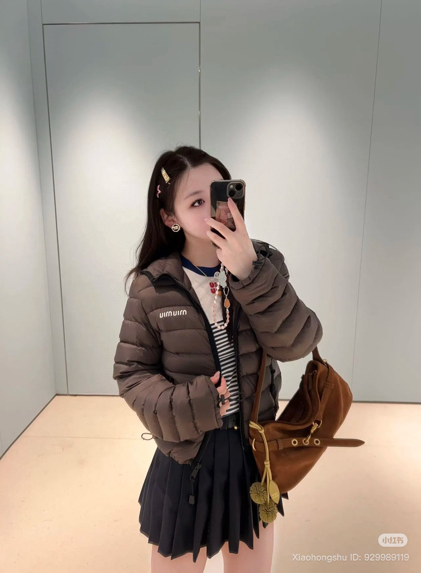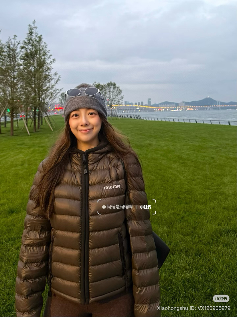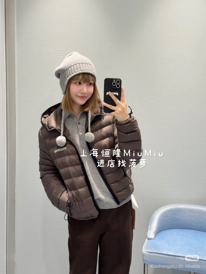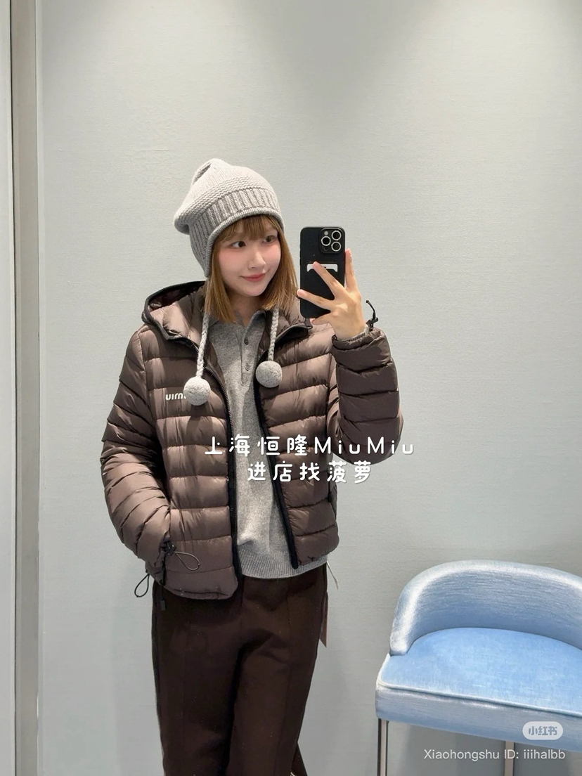 1015-7 独家圆正 miu秋冬 栗子色 微型面包连帽羽绒服 90白鹅绒 轻盈柔嫩细腻保暖 我穿40码