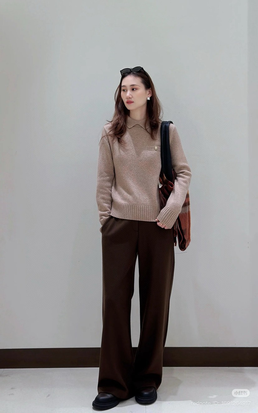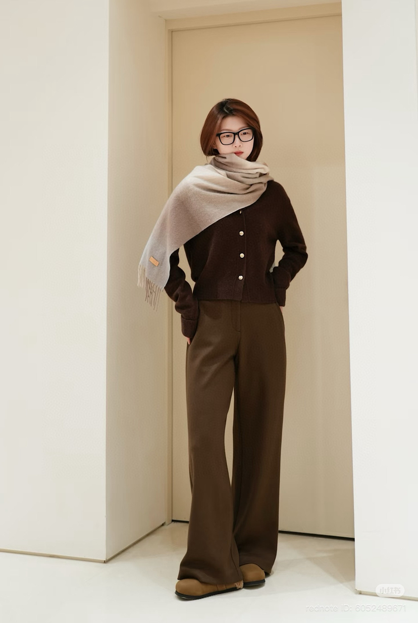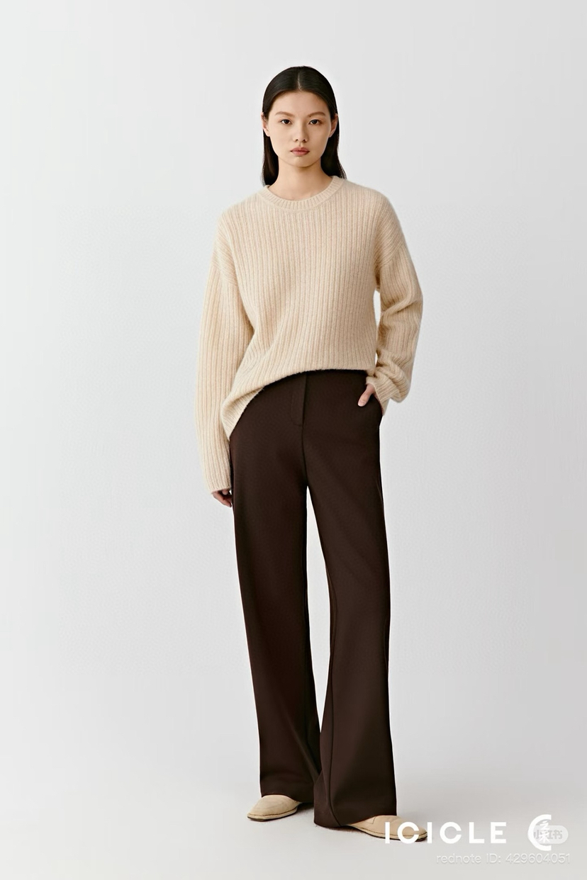 1128-3 独家圆正 重磅 小禾 美拉德色 绵羊毛混纺 针织布 直筒长裤 我穿42码