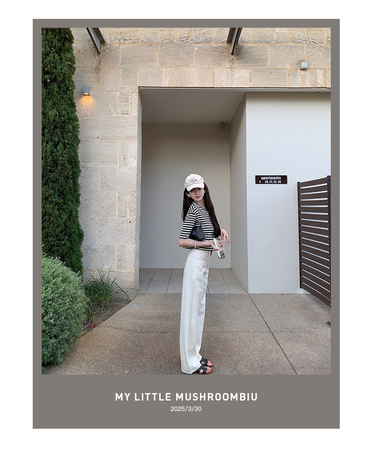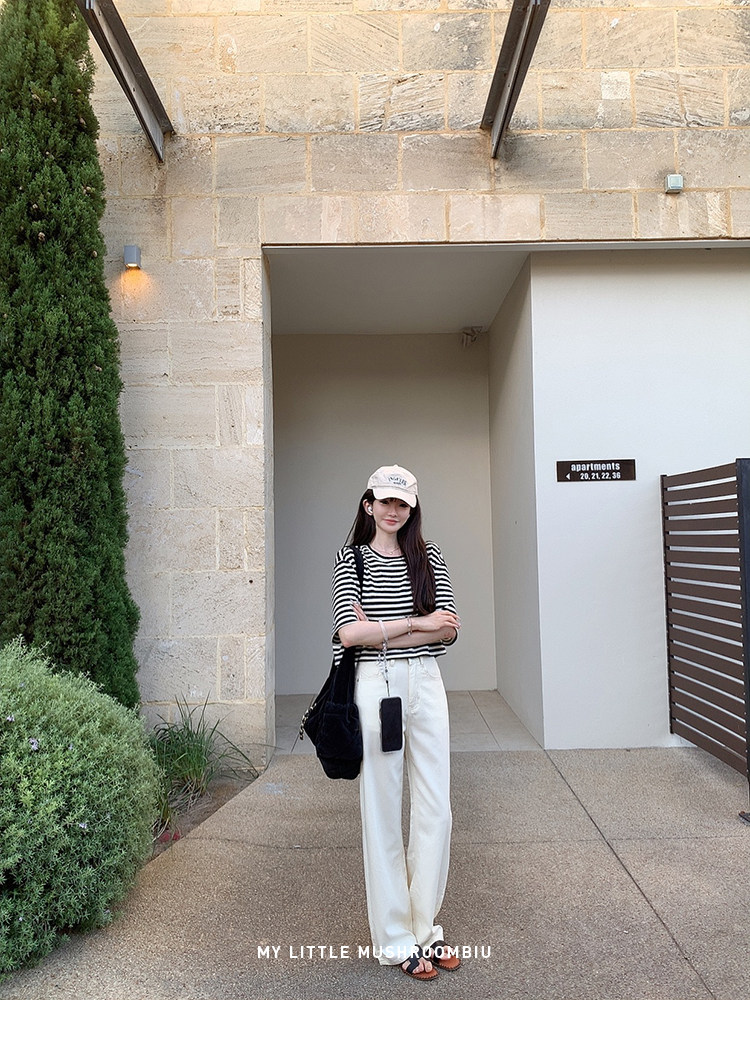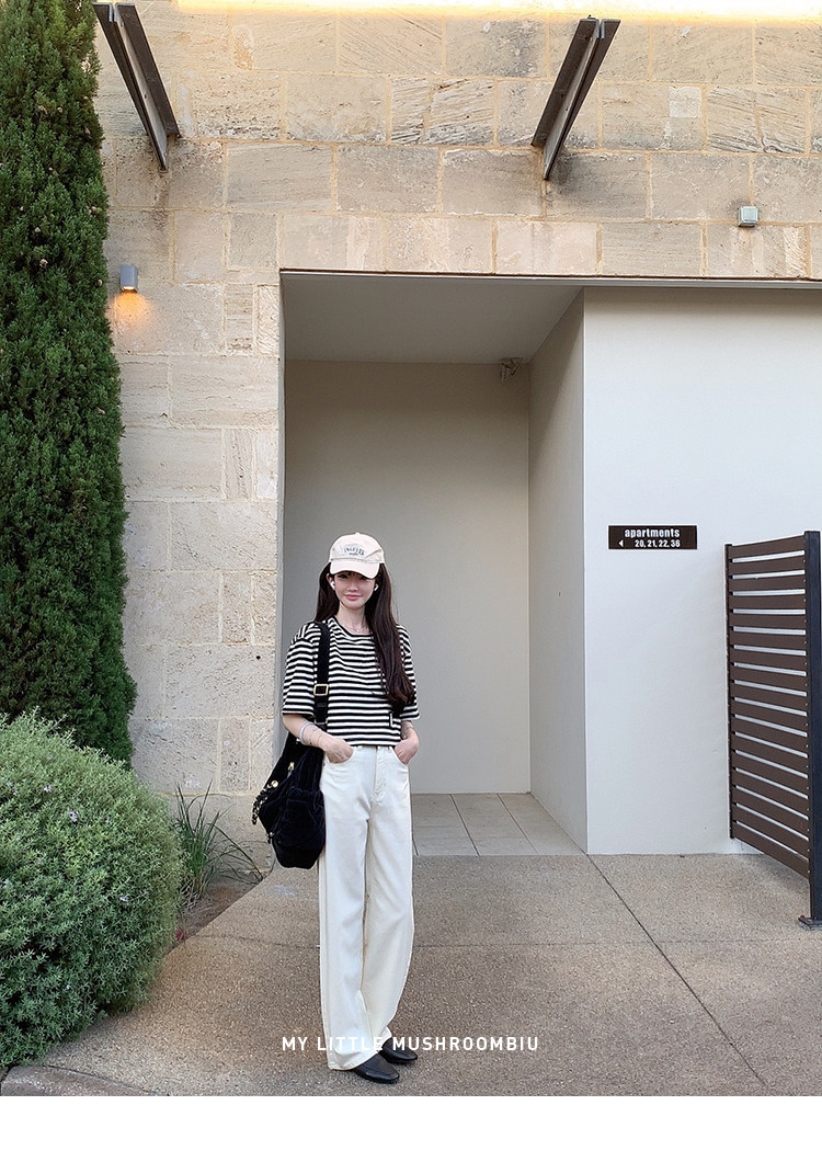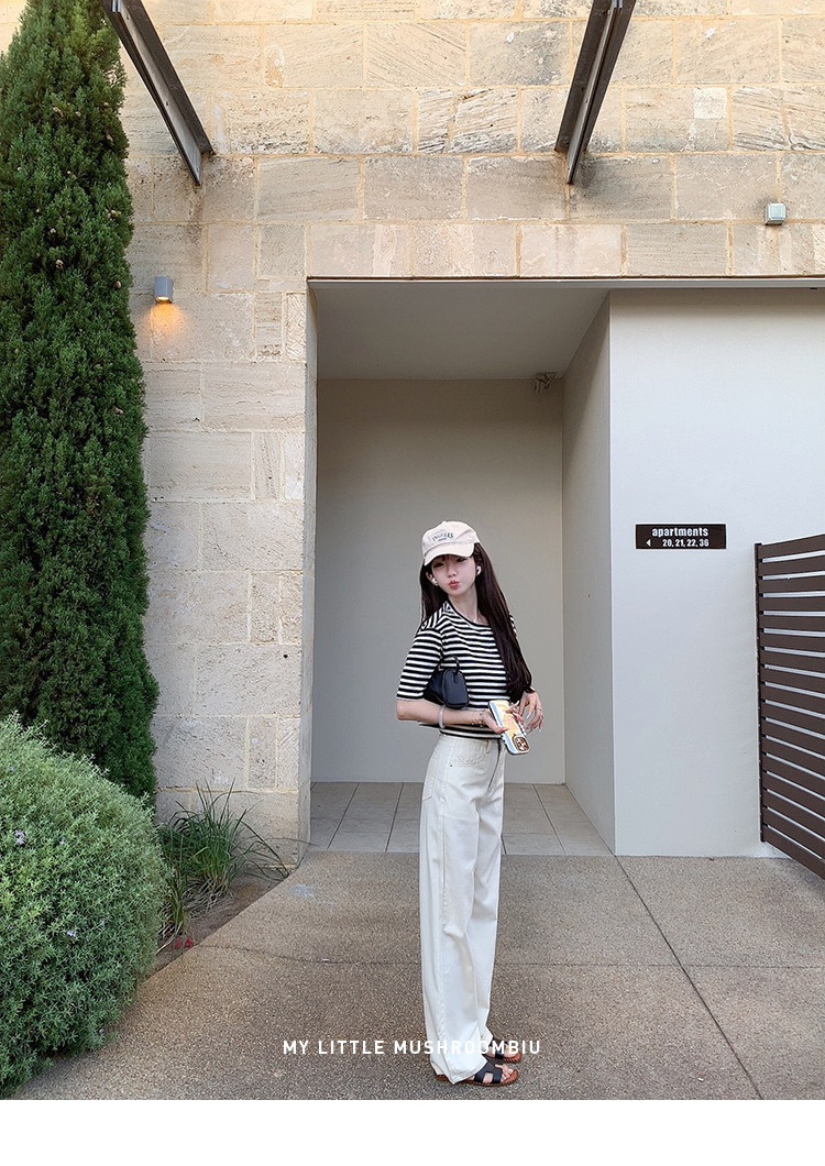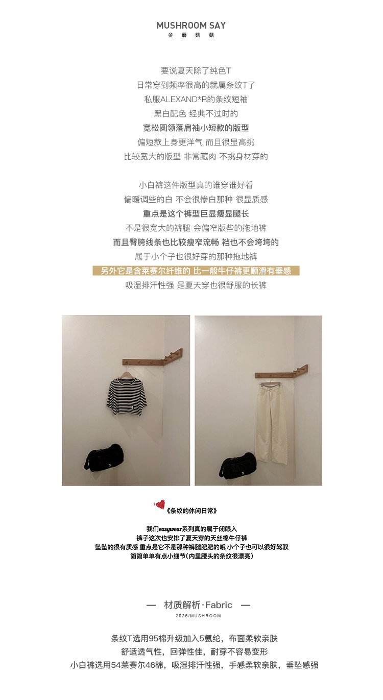 金蘑菇菇 《条纹脑袋的休闲日常》 / 条纹t+小白裤
